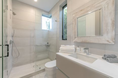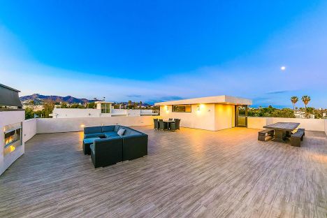 Stunning luxury villa located in the heart of West Hollywood between Melrose & Santa Monica Blvd. The new modern house is a hidden beauty for guests & families who seek absolute privacy while being close to all attractions. High-end finishes & technology including a Smart Home System & security cameras. Spectacular sunset views of LA & Hollywood Hills from the 1,600 sqft roof top deck w/ a fireplace. Gated & hedged for complete privacy in an elegant neighborhood with beautiful tree lines. Offering a modern private salt water heated pool & spa. 5 bedrooms, 6 baths w/ warm walnut floors. Spacious bedrooms w/ balconies, walk-in closets & walk-in showers. Gated entry leads to the open and airy atrium courtyard which opens to spacious living room of sheer elegance & impeccable architectural details. 16 ft ceilings offer great open floor plan w/ a large dining area. Fully-equipped kitchen appointed with stainless steel appliances, a five-burner stove and hood.