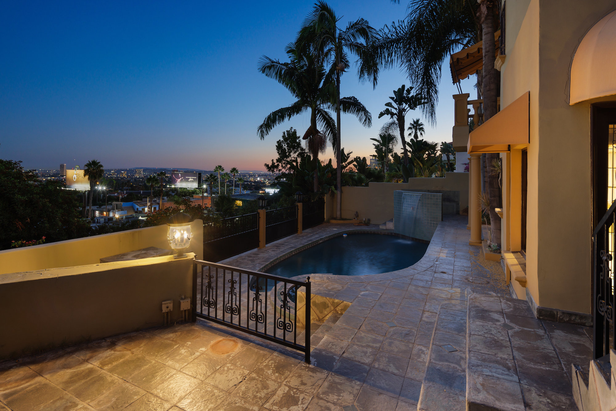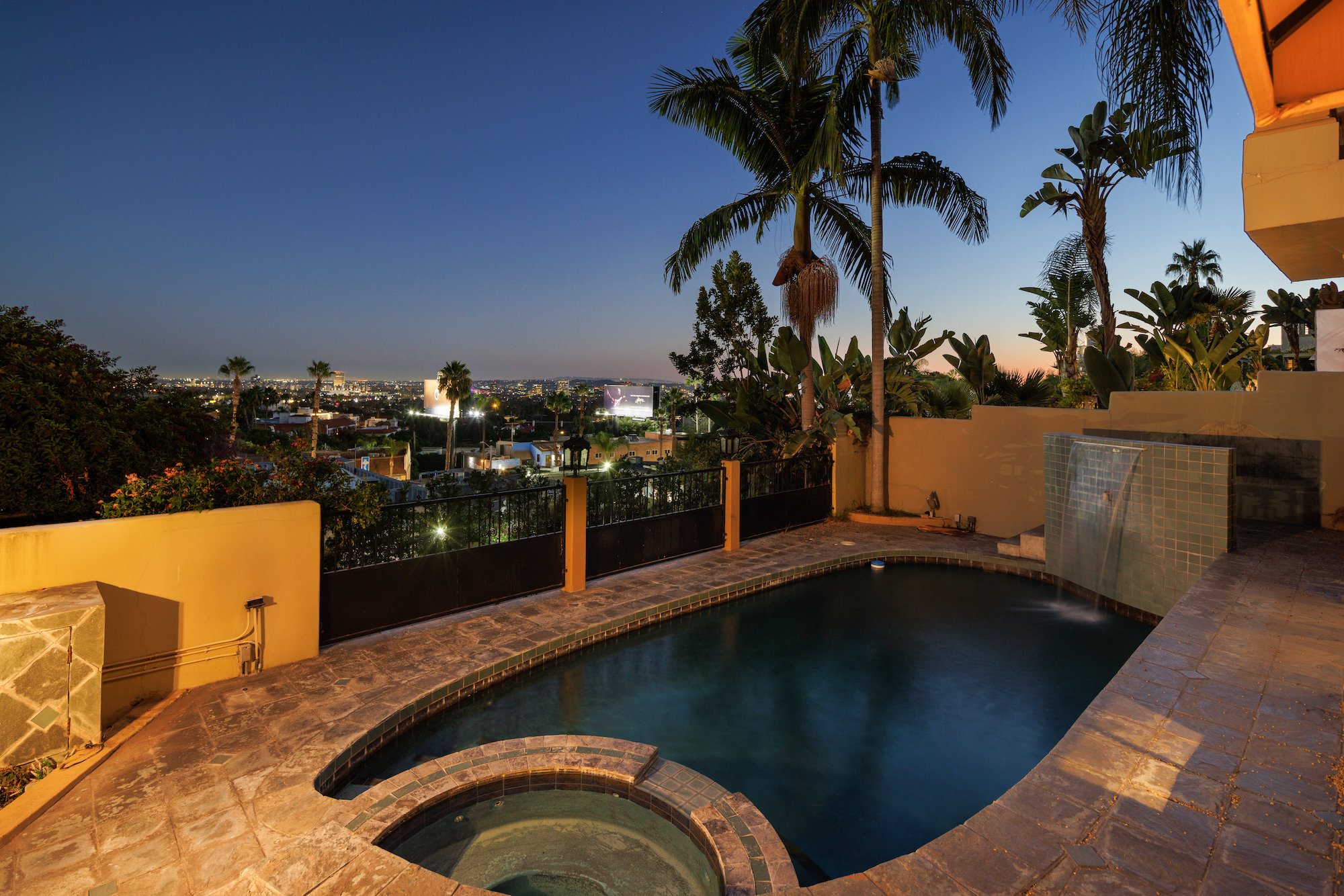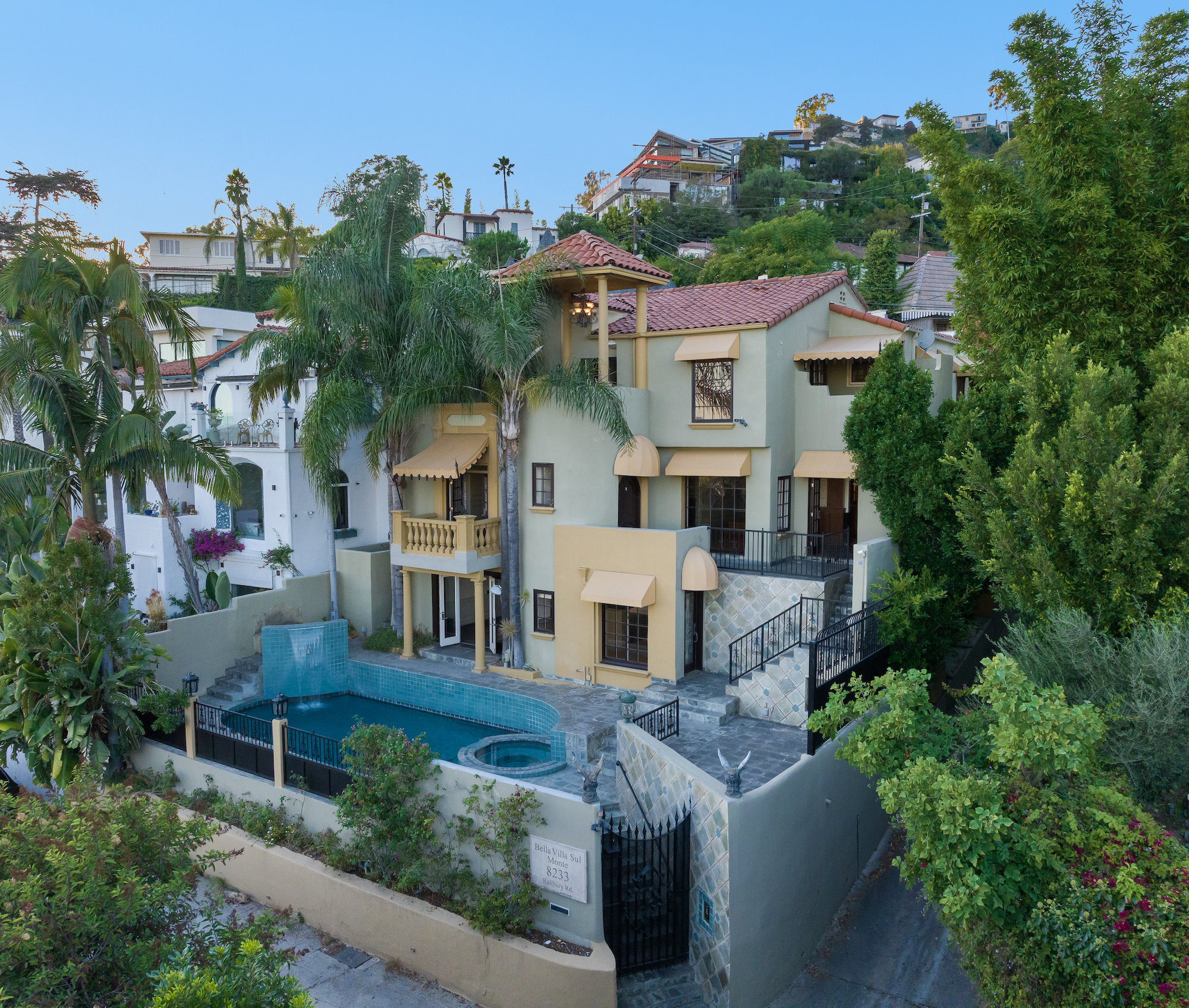 Best fixer on the Sunset Strip, over 5,000 SQFT! Huge upside with cosmetic upgrades and TLC. Steps from the famed Chateau Marmont Hotel, sits this grand Mediterranean villa, that can be updated to be an elegant showstopper. Enjoy front row views of sparkling city lights on your private and secluded two-story exterior patio with impressive pool. European elegance exudes throughout the home with formal living and dining room featuring oversized windows to thoughtfully capture the exquisite views. Stone-clad courtyard to enjoy true al fresco dining - The home boasts a large family room with double doors, a rear guest wing, and a palatial master suite with a private sitting area. Several verandas, a gorgeous pool, spa and exotic waterfall make it the ideal spot for entertaining. Walk steps to the best of Sunset Blvd's restaurants and nightlife. Your private and gated European villa awaits! Priced to sell quickly, reviewing offers as they come in!