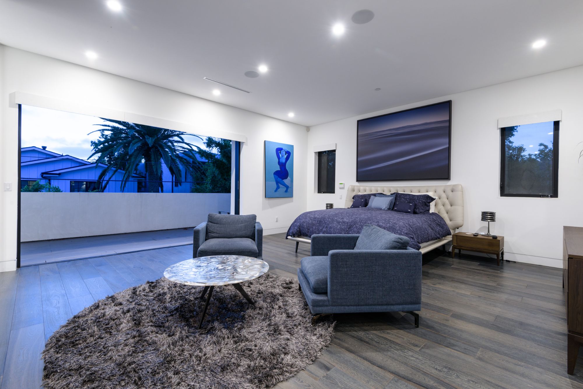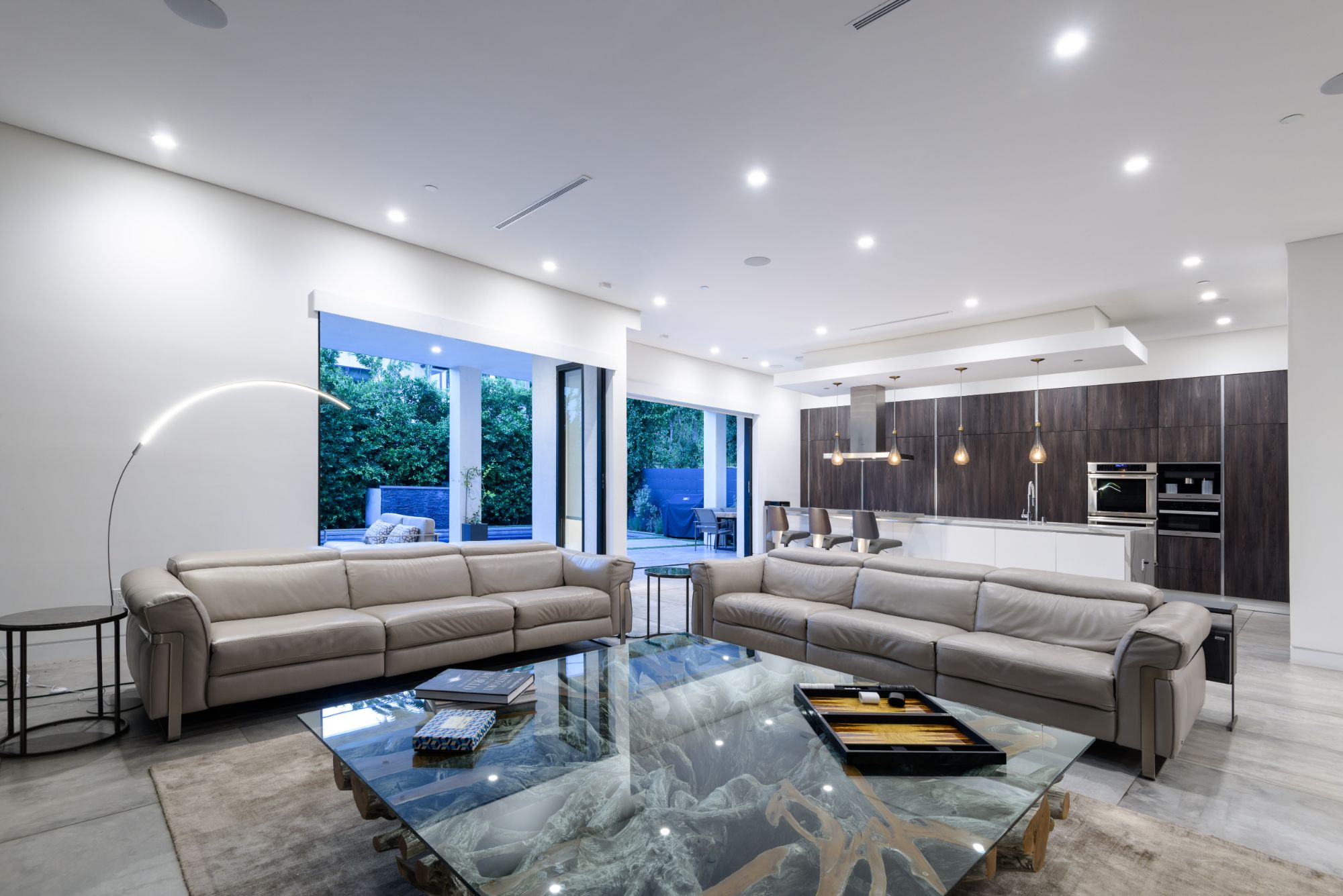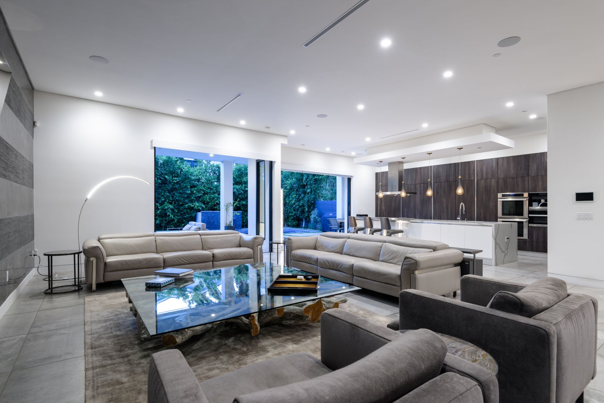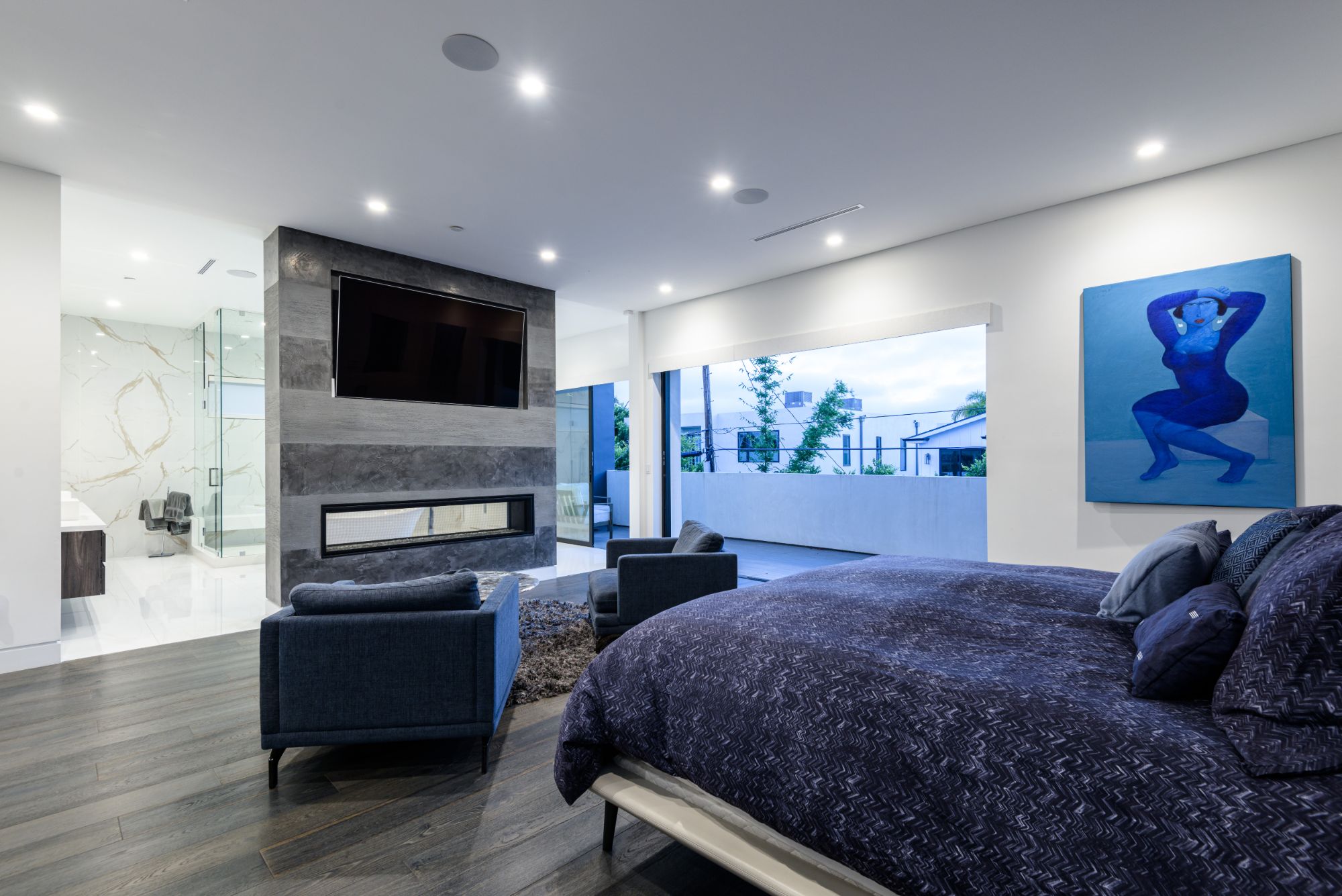 Located in the heart of Melrose Village, this modern home encompasses the epitome of an open floor plan for the perfect entertainer's lifestyle. Step into a continuous entry, dining, and living area that opens up to the high-end Italian kitchen with Cesar stone counter-tops and Thermador appliances. Large bay windows and dark engineered wood flooring create the perfect light reflectivity throughout the house. Boasting just over 5,200 sf, the 5 bedrooms all are equipped with large walk-in closets and custom bathrooms in-suite. Grand master bedroom and bathroom opens up to a private balcony overlooking lavish backyard landscape, pool and waterfall feature, and outdoor fireplace. Continue upstairs to your private rooftop deck to enjoy spectacular views of Hollywood Hills, Downtown LA, and Century City. Incomparable West Hollywood location, just a walk away from the best restaurants and shopping in LA!