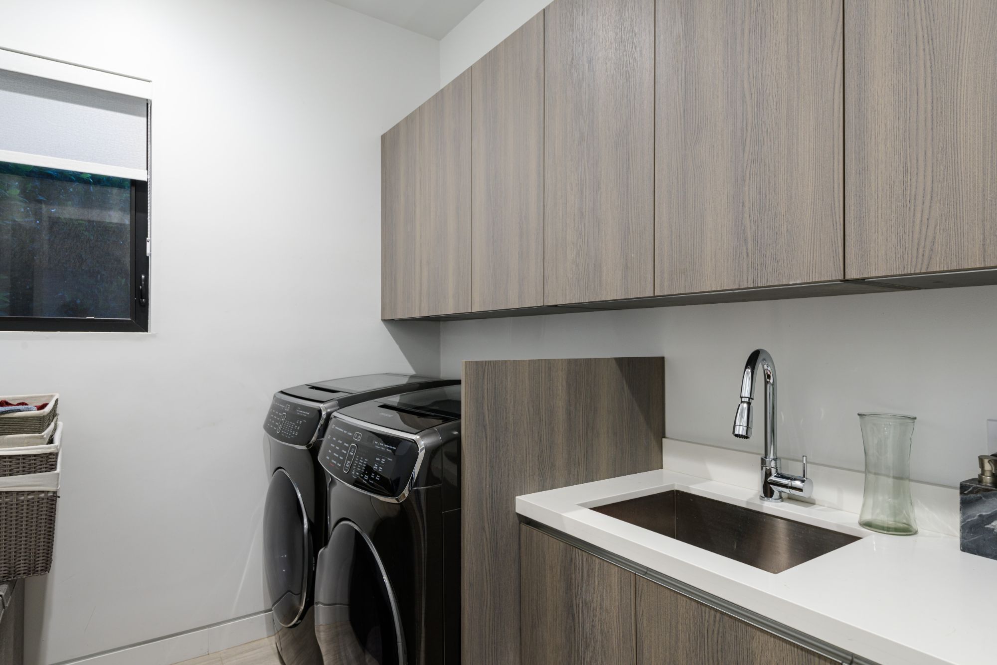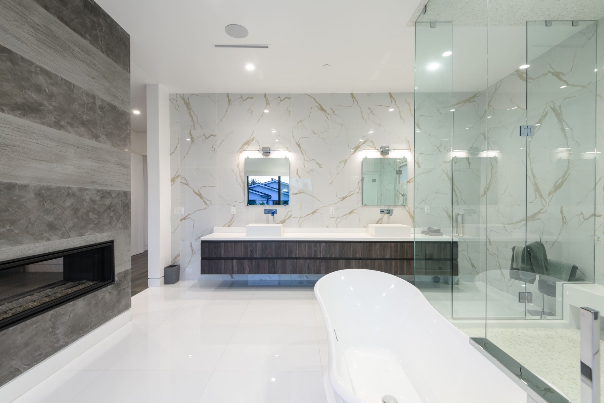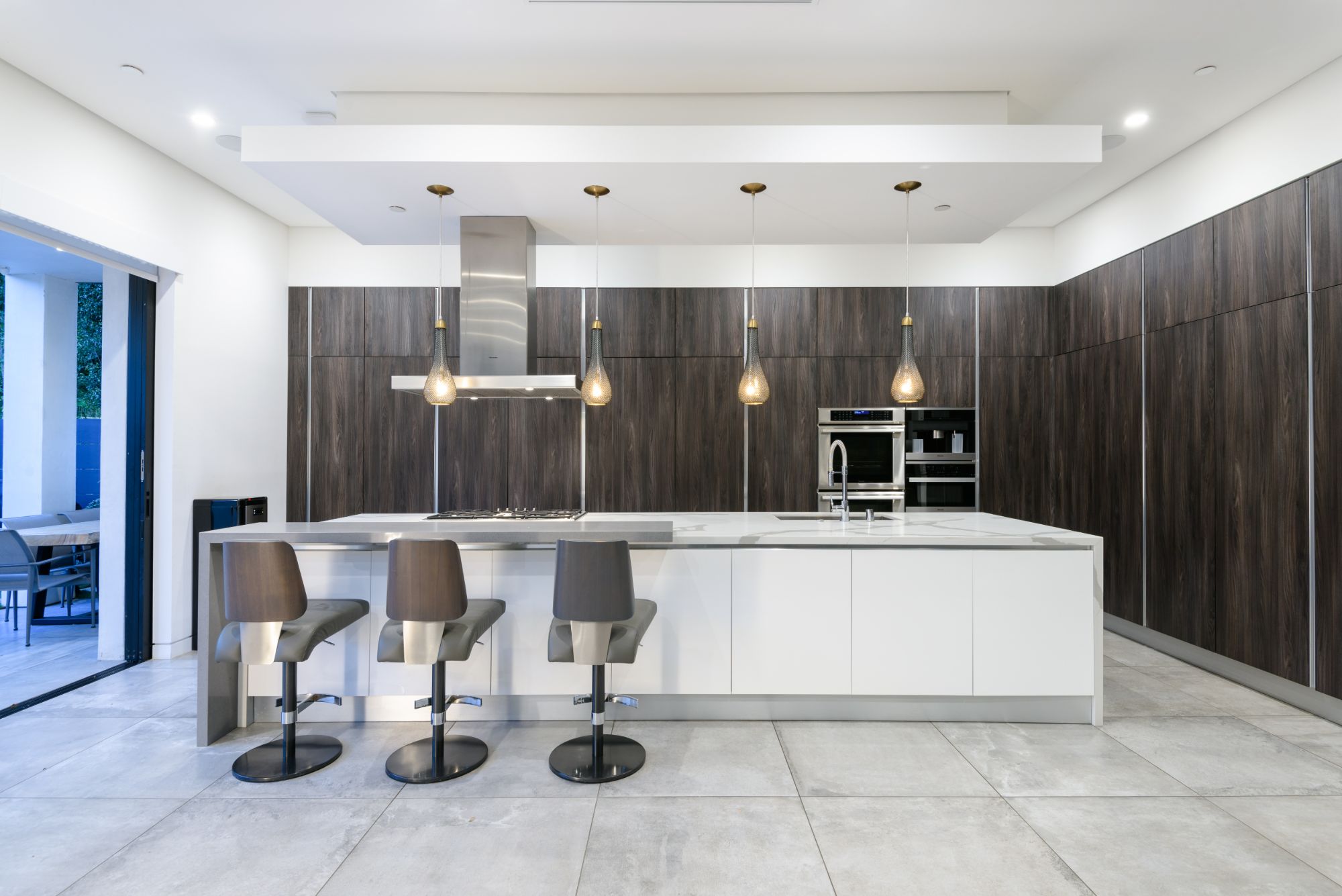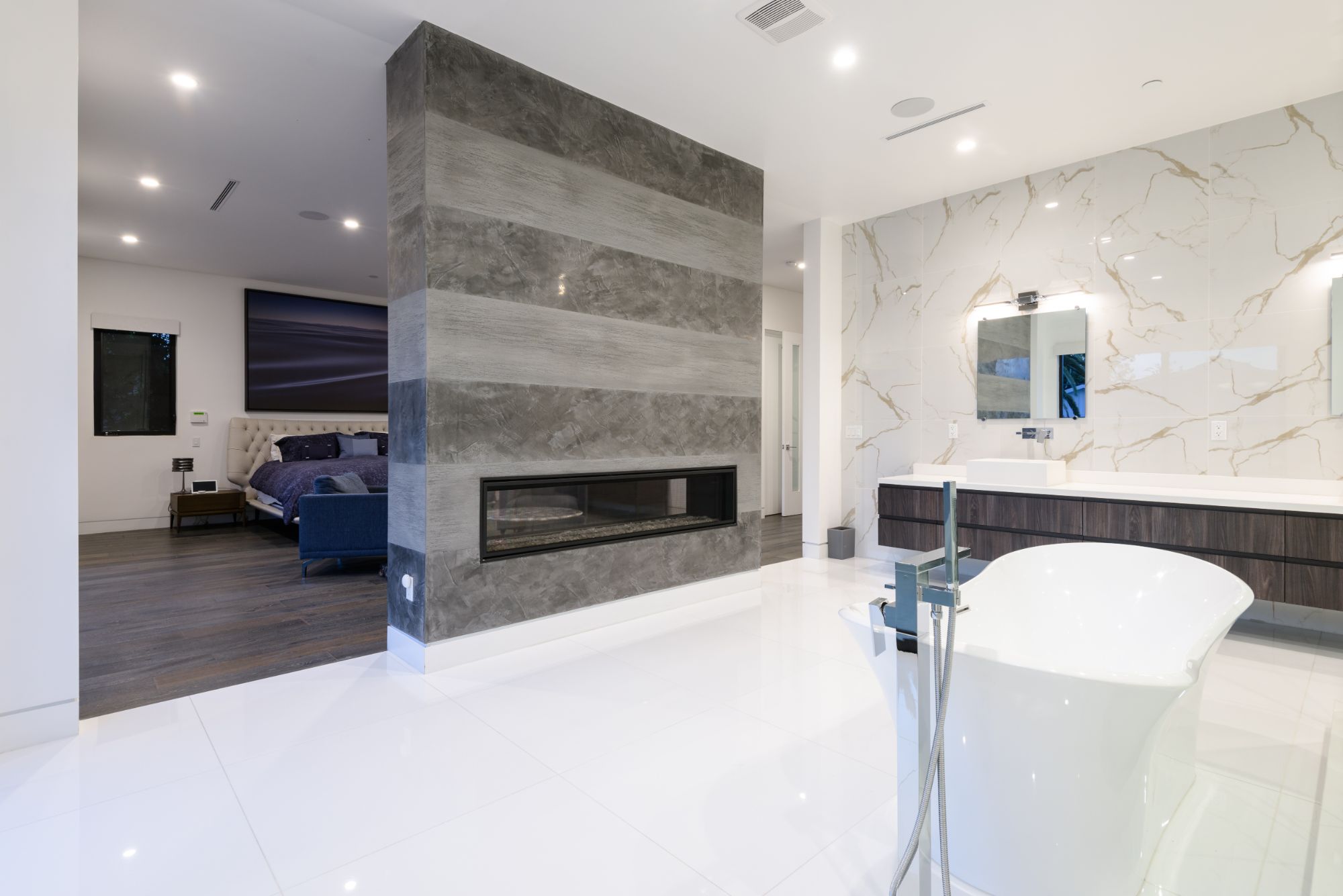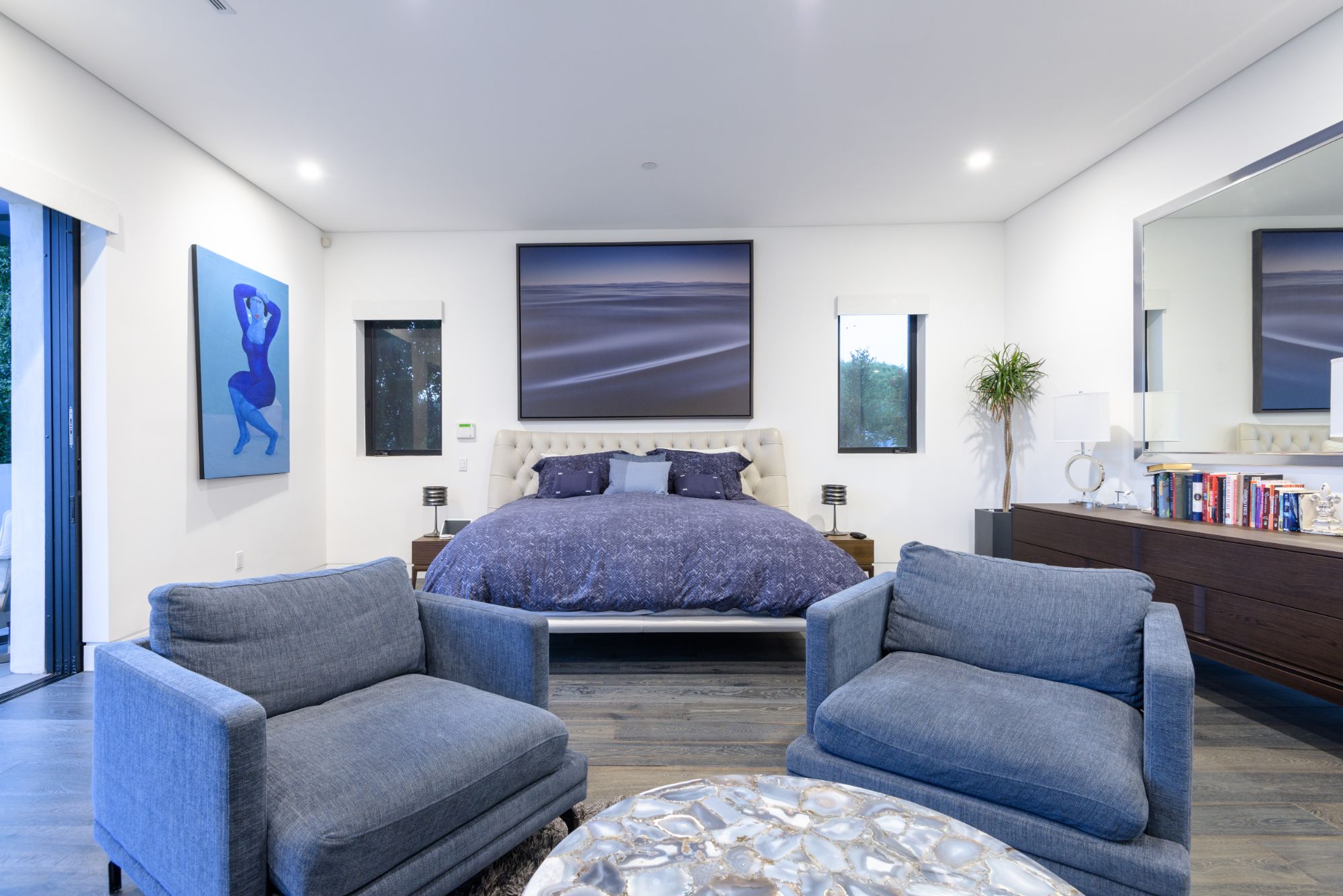 Located in the heart of Melrose Village, this modern home encompasses the epitome of an open floor plan for the perfect entertainer's lifestyle. Step into a continuous entry, dining, and living area that opens up to the high-end Italian kitchen with Cesar stone counter-tops and Thermador appliances. Large bay windows and dark engineered wood flooring create the perfect light reflectivity throughout the house. Boasting just over 5,200 sf, the 5 bedrooms all are equipped with large walk-in closets and custom bathrooms in-suite. Grand master bedroom and bathroom opens up to a private balcony overlooking lavish backyard landscape, pool and waterfall feature, and outdoor fireplace. Continue upstairs to your private rooftop deck to enjoy spectacular views of Hollywood Hills, Downtown LA, and Century City. Incomparable West Hollywood location, just a walk away from the best restaurants and shopping in LA!