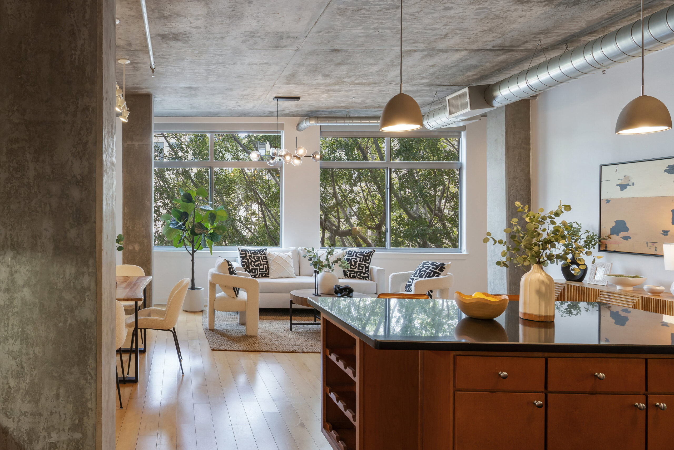 Discover refined urban living at 840 E Green Street #307, a spacious and beautifully appointed 1-bedroom + den residence located in the coveted Prado community. With 1,051 square feet of open-concept living space, this street-facing unit blends modern design with everyday functionality in one of Pasadena's most desirable neighborhoods. The interior features a flowing layout that connects the living, dining, and kitchen areas with seamless ease. Expansive windows bring in an abundance of natural light and frame views of Pasadena's charming tree-lined streets, creating a serene and inviting atmosphere. The well-designed den provides an ideal flex space for a home office or reading nook. Additional conveniences include in-unit laundry, and two covered subterranean parking spaces with private storage. At The Prado, residents enjoy a host of premium amenities designed to enhance both comfort and lifestyle. From the resort-style pool to the state-of-the-art fitness center and private theater, every detail is crafted for relaxation and convenience. The community also offers a spacious lounge with exposed concrete walls and a gourmet kitchen, a business center and meeting rooms, BBQ area, coffee and tea bar, and 24/7 concierge and building management services. Security is top-tier with controlled access and gated entry.