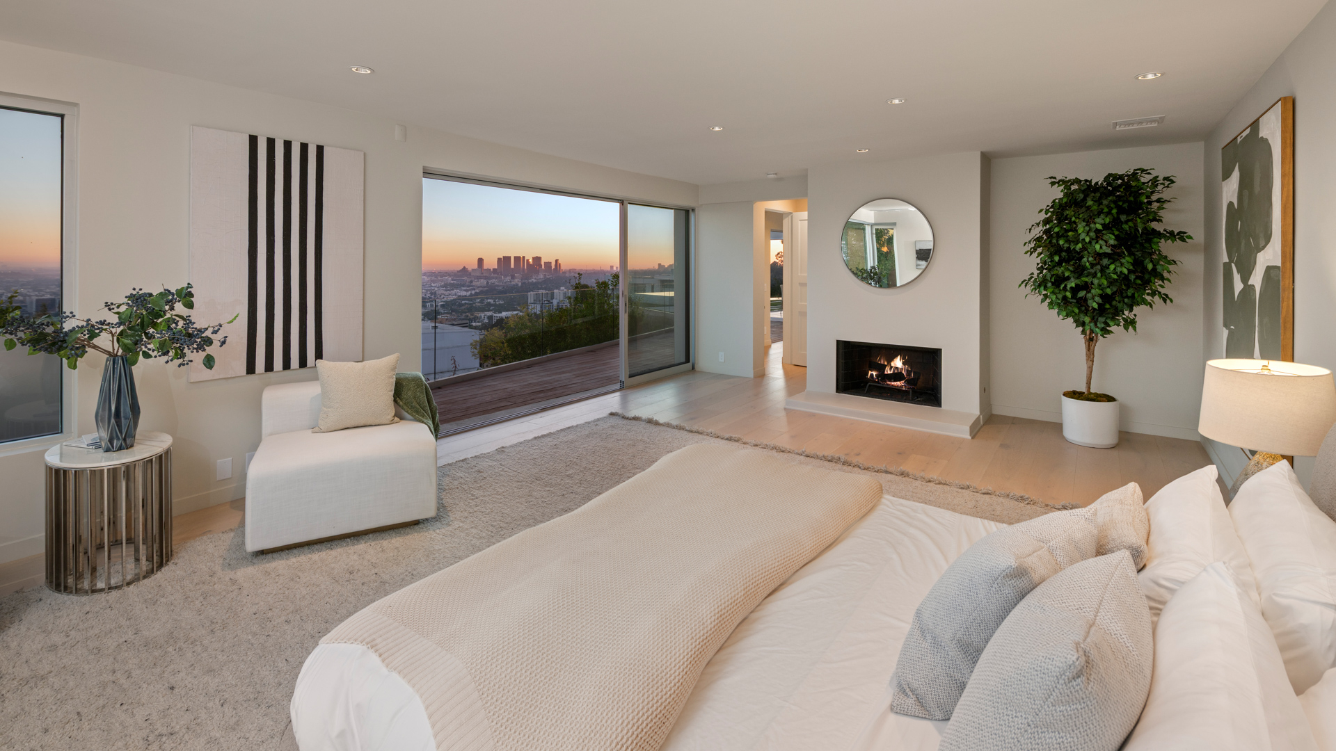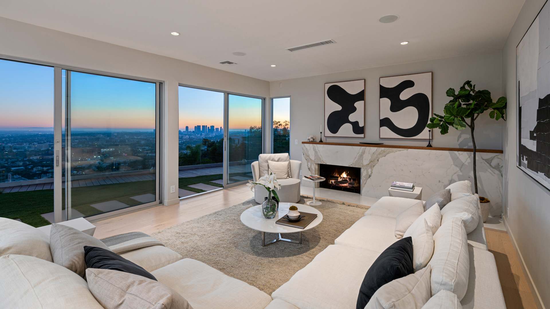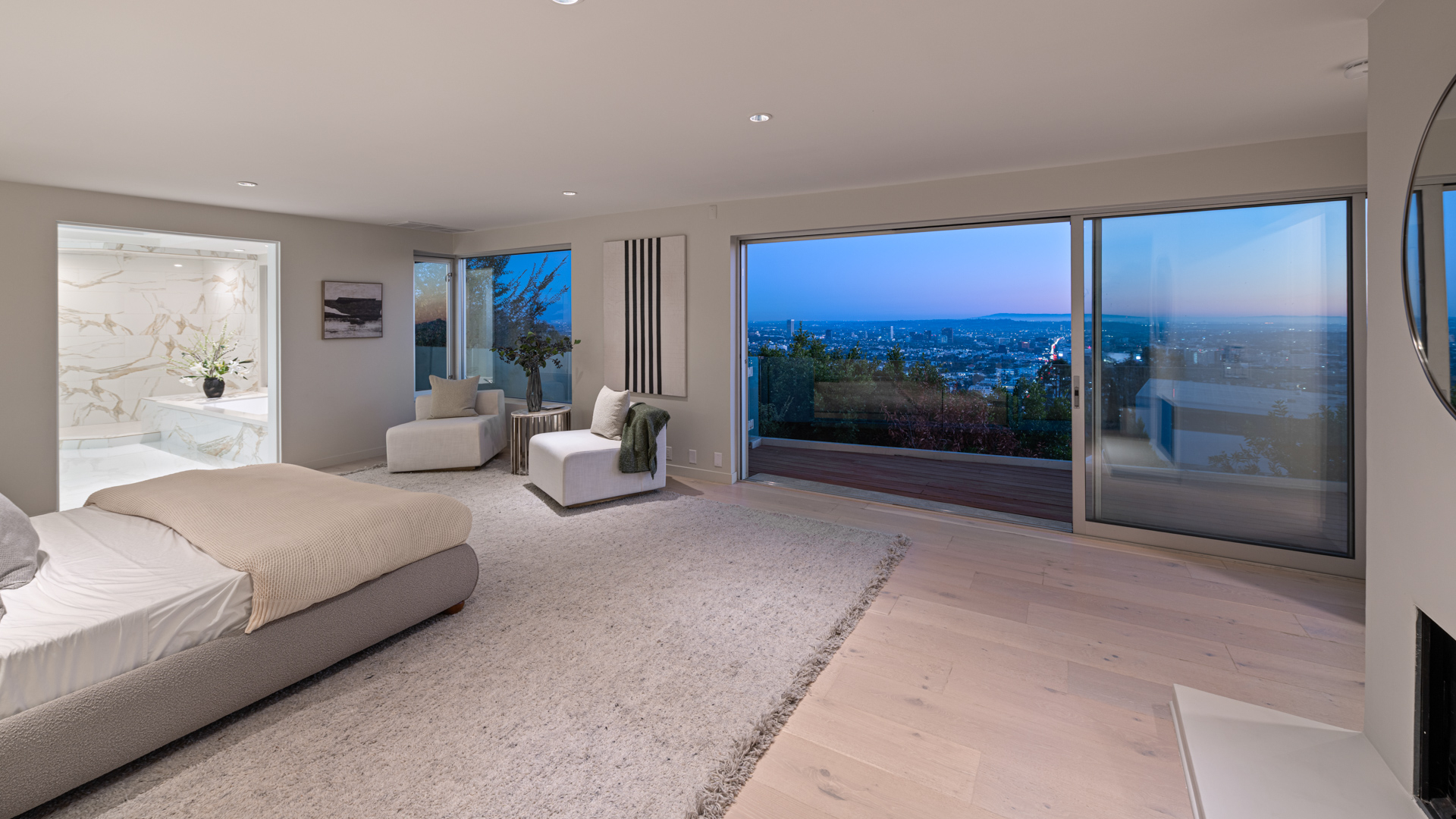 Sited in the iconic Hollywood Hills, this one-of-a-kind modern masterpiece offers jaw-dropping panoramic views that stretch from Downtown LA to Century City and out to the Pacific Ocean. With a cool, sophisticated vibe and seamless one-level design, this 3-bedroom, 3.5-bathroom home is the ultimate luxe retreat for anyone who craves elevated living. Step inside to an open-concept floor plan that blends indoor and outdoor living with dramatic effect. Walls of glass frame the skyline and flood the space with natural light, while minimalist design, clean lines, and high-end finishes create a stylish and effortless atmosphere. The sleek chef's kitchen flows into the spacious living and dining areas ideal for entertaining. The primary suite is a private sanctuary with a spa-like bath, walk-in closet, and stunning views to wake up to. Two additional en-suite bedrooms offer comfort and privacy for guests or a home office setup. Outdoors, enjoy expansive patios perfect for lounging, dining, or watching the sunset over the city and ocean beyond. This is more than a home, it's a statement. Don't miss your chance to own a true view property in one of LA's most iconic neighborhoods.
