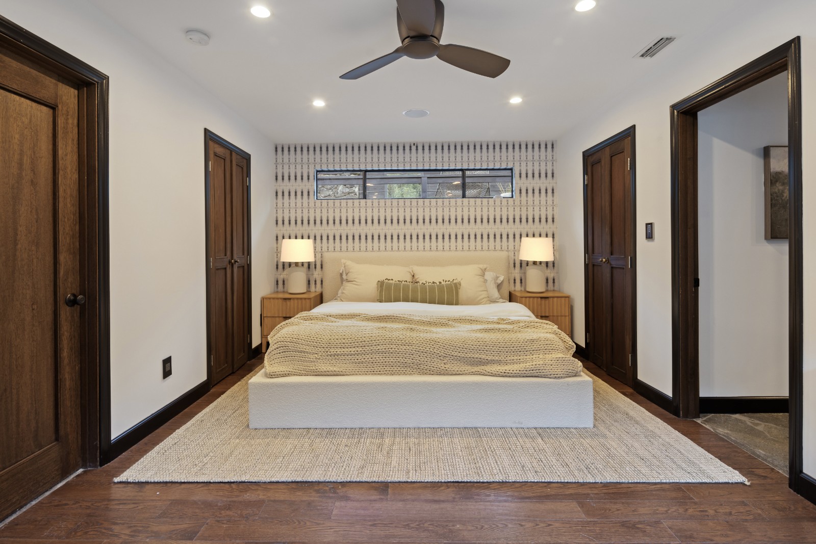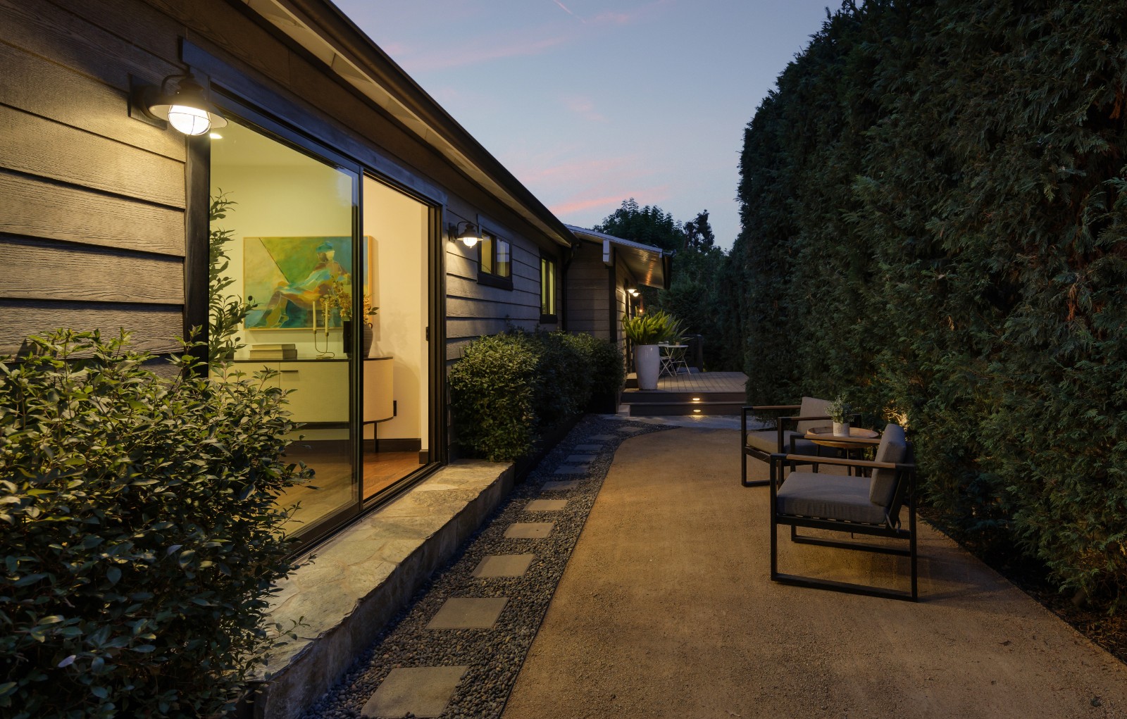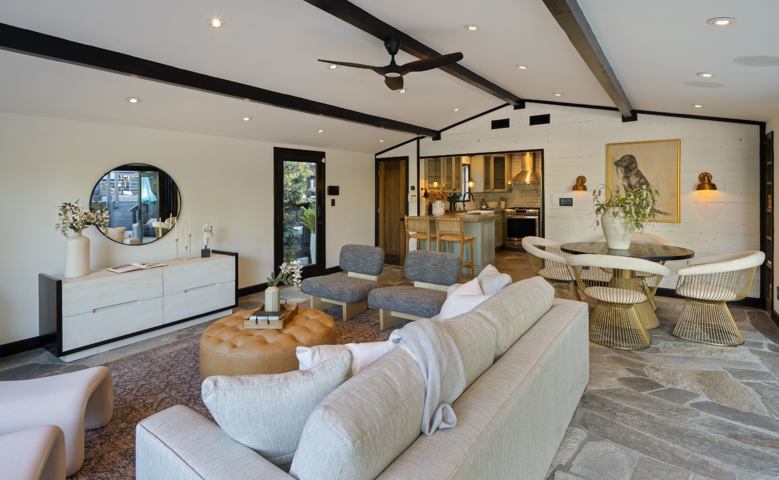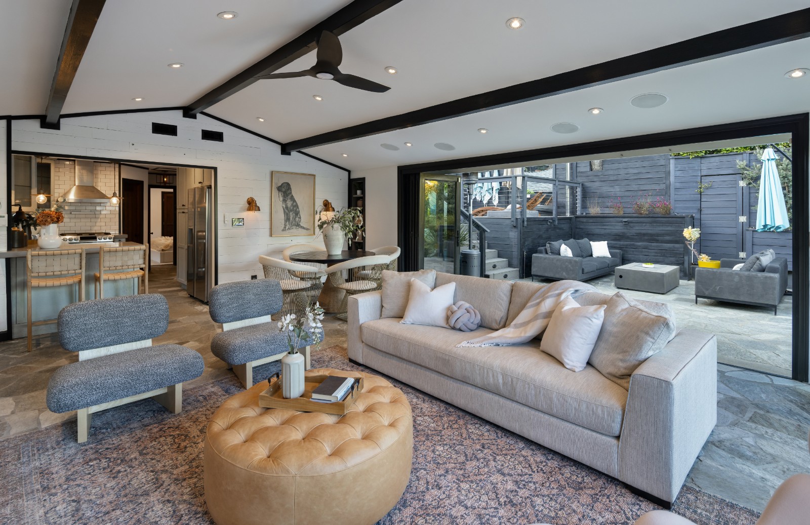 Nestled within the heart of Laurel Canyon, this custom-renovated contemporary home is an incredible retreat within the Canyons. With no expense spared and meticulous attention to detail, this residence is a pinnacle of modern design. Equipped with the cutting-edge Vantage home automation system, it stands as a smart home, offering the utmost convenience and efficiency. Located on a peaceful cul-de-sac in the prestigious Wonderland School District, the house exudes tranquility and privacy, surrounded by mature hedges and secured by gates. The property provides an array of entertaining spaces, from the outdoor dining area adorned with enchanting string lights to the cozy lounge area featuring a fire pit and the inviting deck with a pristine pool and bubbling jacuzzi. Inside, the living room boasts soaring wooden-beamed ceilings and walls of glass that frame a picturesque tree-lined vista, evoking a mid-century ambiance. The main house comprises two bedrooms and two bathrooms, with the primary suite offering a generously spacious closets including one large walk-in and direct access to a private patio. In addition to its impeccable features, this home includes a garage and a detached flex room, perfect for at-home office, gym, media room, or a potential third bedroom. The home also features high-end appliances and a dining area that seamlessly connect to the expansive outdoor entertaining areas, facilitating the coveted indoor/outdoor LA lifestyle. Whether you seek quiet evenings of solitude or vibrant gatherings, this residence caters to all desires, making it an unparalleled retreat in one of the most beautiful canyon neighborhoods in Laurel Canyon.