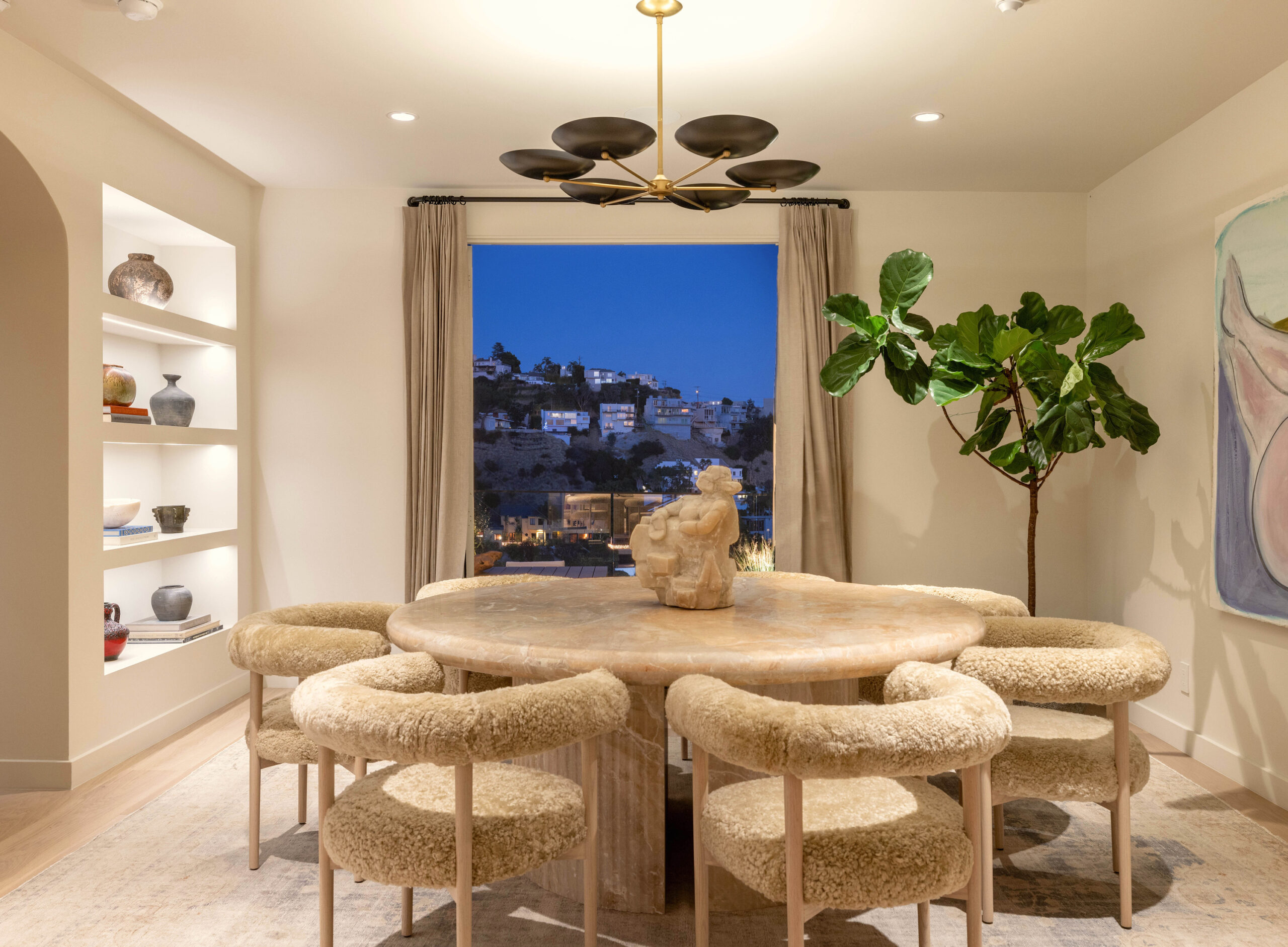 string(883) "Turnkey estate of impeccable style and quality by OSKLO offered at incredible value. Located in the prime enclave just above Sunset Strip between Sunset Plaza and Queens Road with jaw dropping views from Santa Monica to Downtown LA and Griffith Observatory. Originally designed by renowned architect Steven Ehrlich, AIA. A true compound situated behind gates and 5-car motor court on a flat parcel for total privacy and security. Stunning interiors are warm and filled with natural daylight throughout and views from every room. The carefully executed floor plan accommodates both entertaining and family living, flowing effortlessly to the outside for perfect indoor-outdoor living. The primary suite is a dream retreat and a world unto itself with private office, spa bathroom and terrace removed from all. An incredible value on a world class estate valued at close to $9 Million."