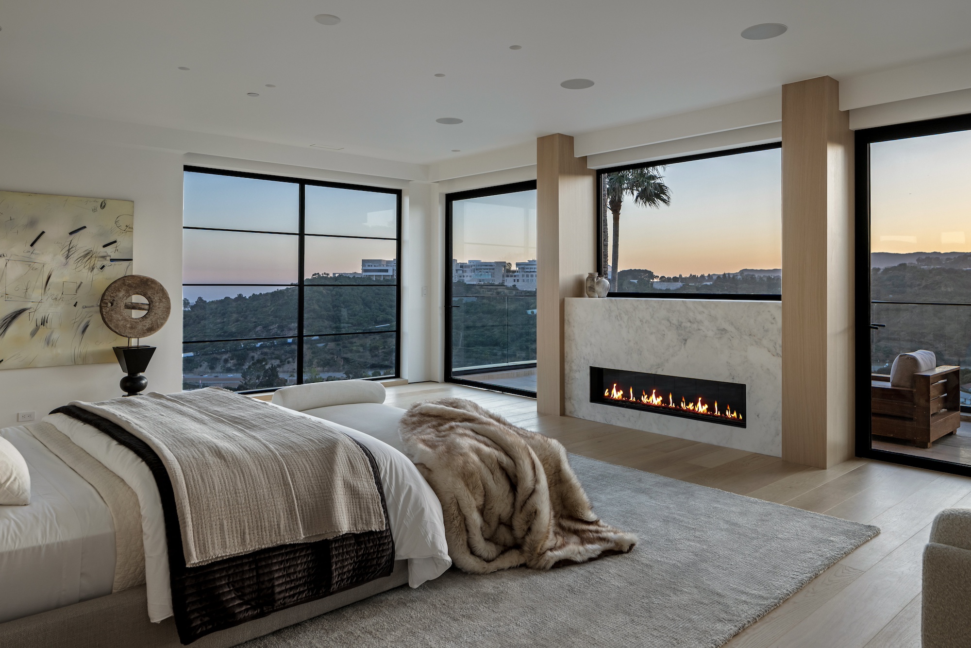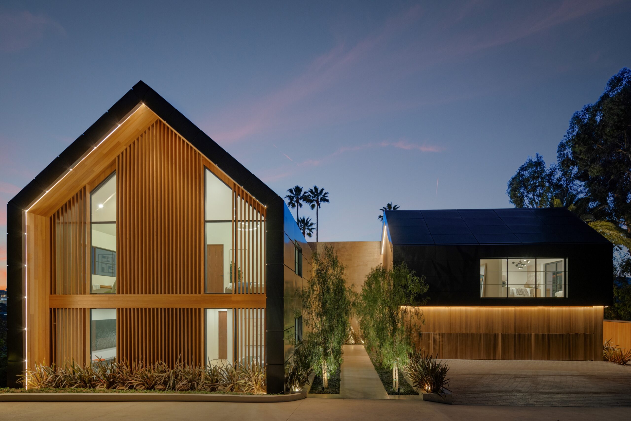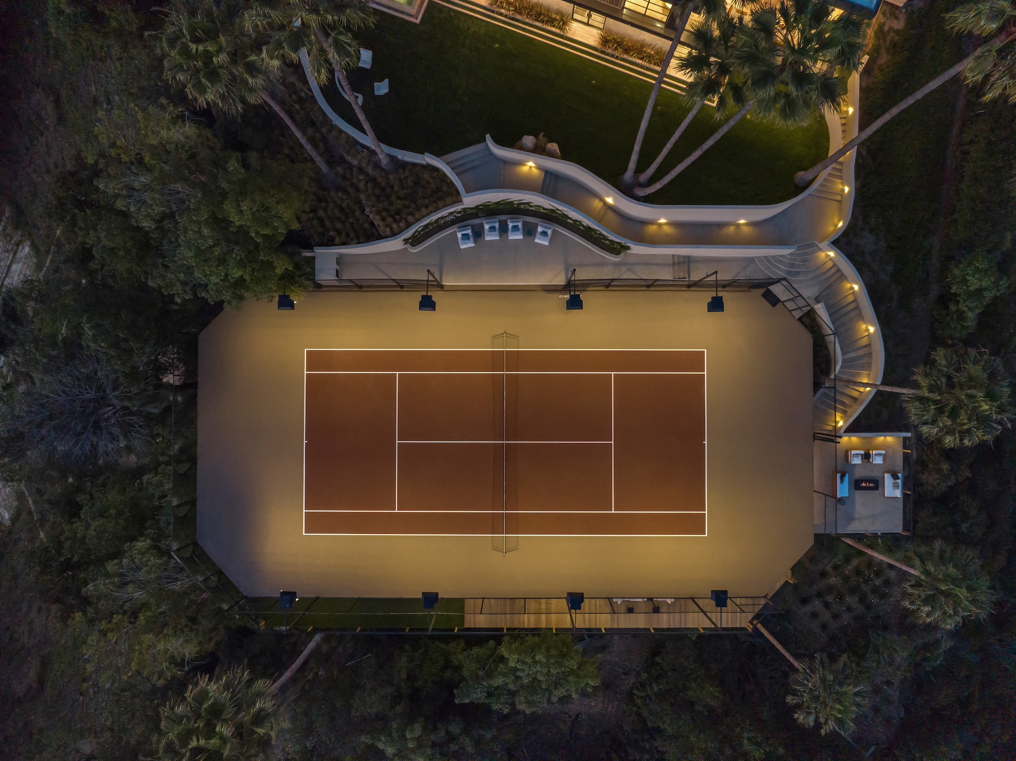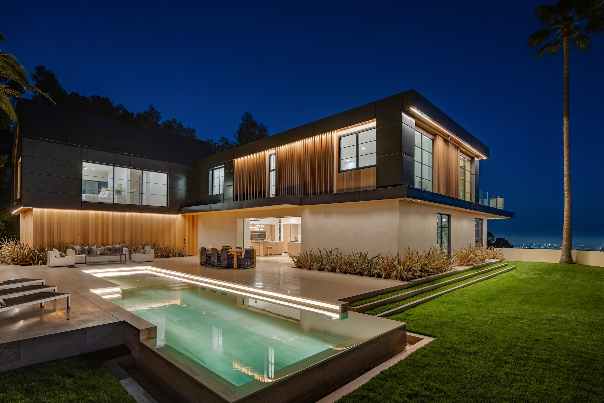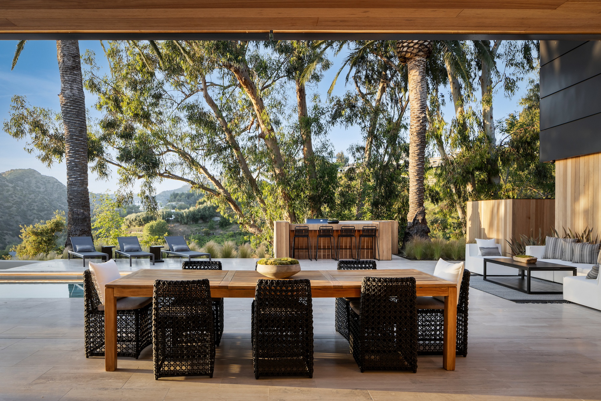 string(2378) "Nestled in the tranquil hills of Bel Air, this architectural masterpiece sits on over 3.5 acres surrounded by majestic mature trees, offering breathtaking panoramic views of the mountains, ocean, and the world-famous Getty Museum. Designed by AADS, the home's design is in a league of its own, combining its distinct Scandinavian-inspired roofline with a palette of natural and organic finishes, drawing inspiration from the Getty Museum itself. This compound boasts an extremely private homesite at the bottom of a 250-foot gated driveway. The masculine exterior is tastefully contrasted with a warm and inviting interior palette that is artfully pared back to travertine stone, white oak, and walnut throughout the entire home. Setting eyes on the front facade, it's hard to decipher where the garage is. Using structural steel engineering, the door is seamlessly camouflaged behind mahogany siding, concealing an airplane hangar door that allows for a large 40-ft single opening. This creates a new level of functionality and design compared to traditional garage spaces. The expansive main house is appointed with 5 en-suite bedrooms upstairs and a downstairs guest suite across over 8,300 sq. ft. of living space. With multiple vistas, the primary suite is second-to-none, featuring huge clear-view center-pivot windows leading to a private balcony, two separate bathrooms with floor-to-ceiling travertine slab walls, and two walk-in Italian-made closets. On the main level, the ultra-luxurious kitchen is appointed with Italian-made cabinets by Molteni&C Dada and book-matched Calacatta marble countertops. Behind the main kitchen is a fully appointed pantry kitchen that is perfect for private-chef dinners and event caterers. Additionally, an over 3,400 sq. ft. detached guest house offers 2 en-suite bedrooms and a separate wellness area, complete with a gym, sauna, steam room, and massage room. The gym boasts views of a neighboring vineyard reminiscent of the hillsides of Tuscany. Marrying the main house and guest house is the ultimate outdoor oasis, equipped with a private pool and spa, large flat grass pad, private tennis court, and ample patio space for hosting gatherings. This is the home that keeps on giving. Perched amidst the lush hillside, this property effortlessly blends luxury living with the best lifestyle and views that Los Angeles has to offer."
