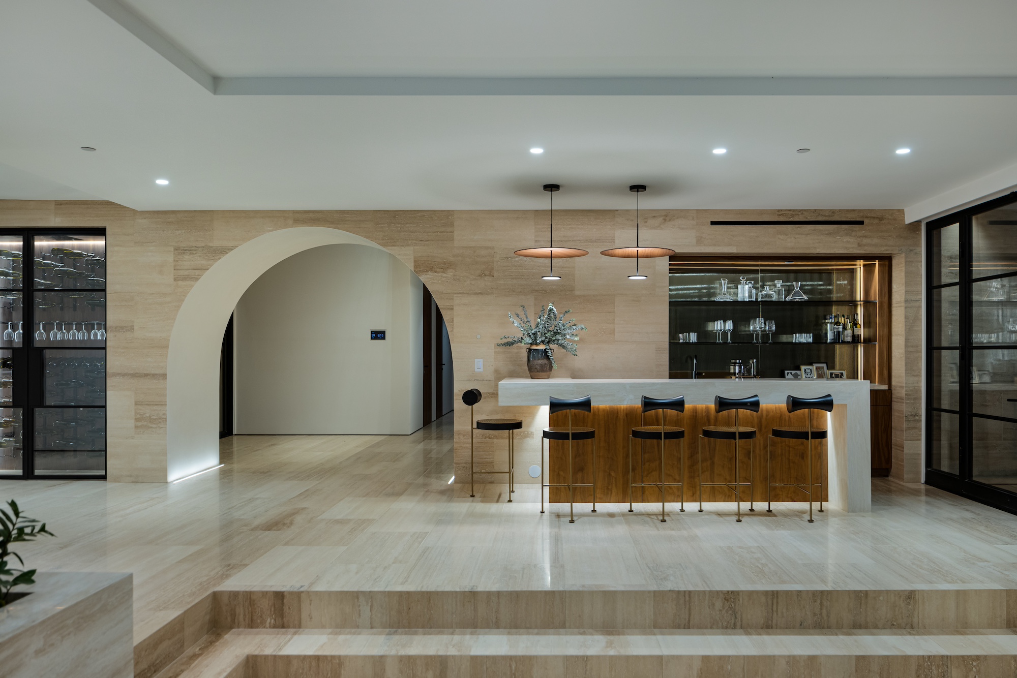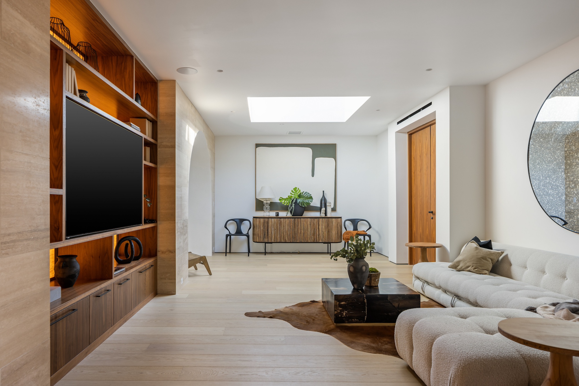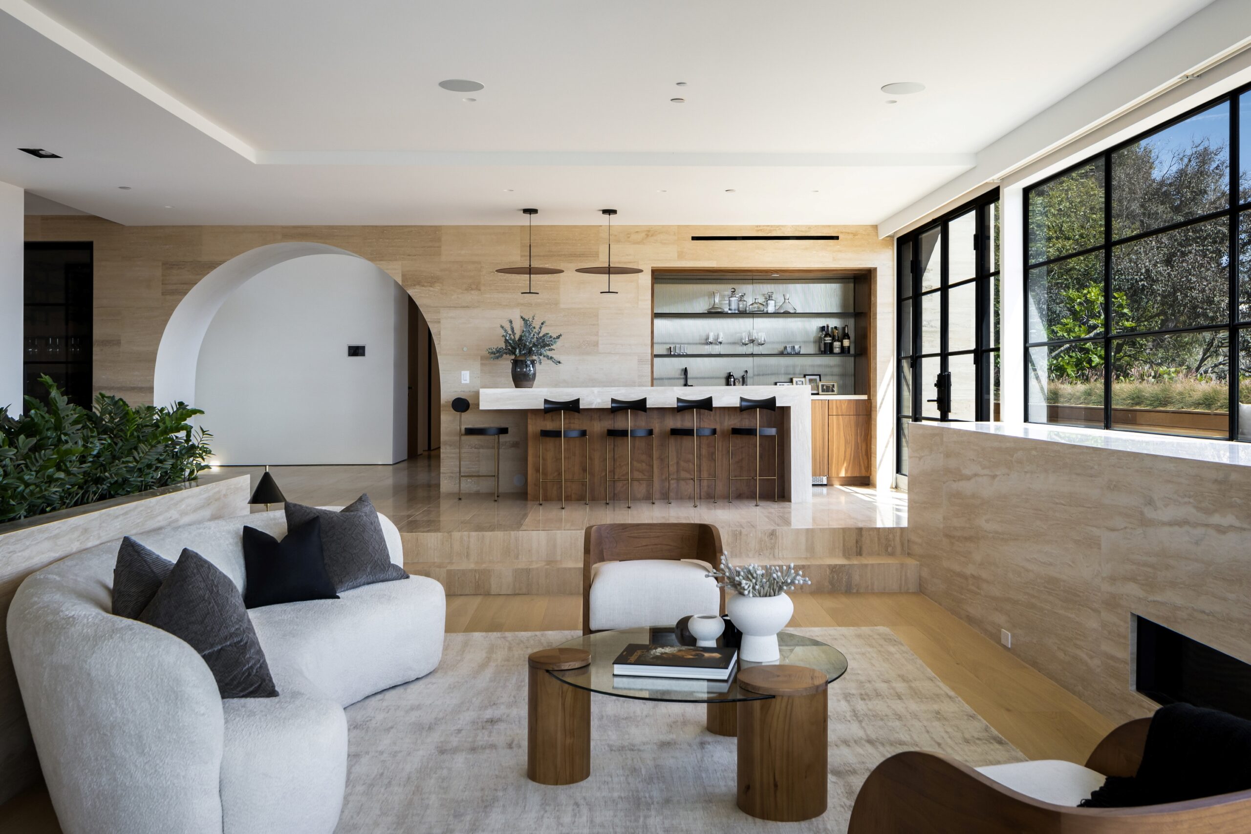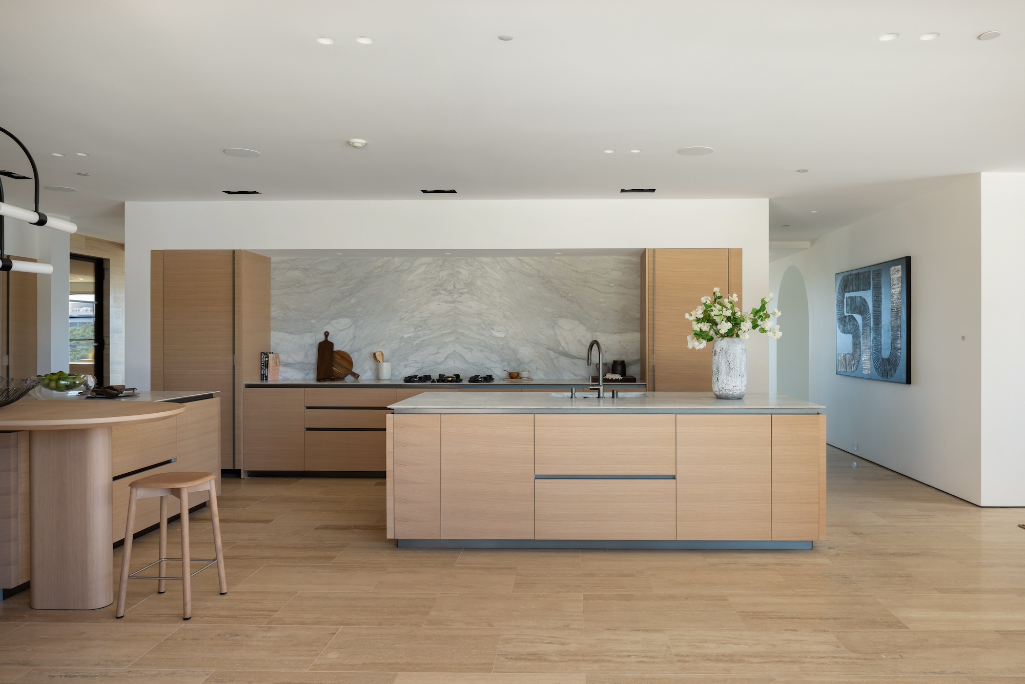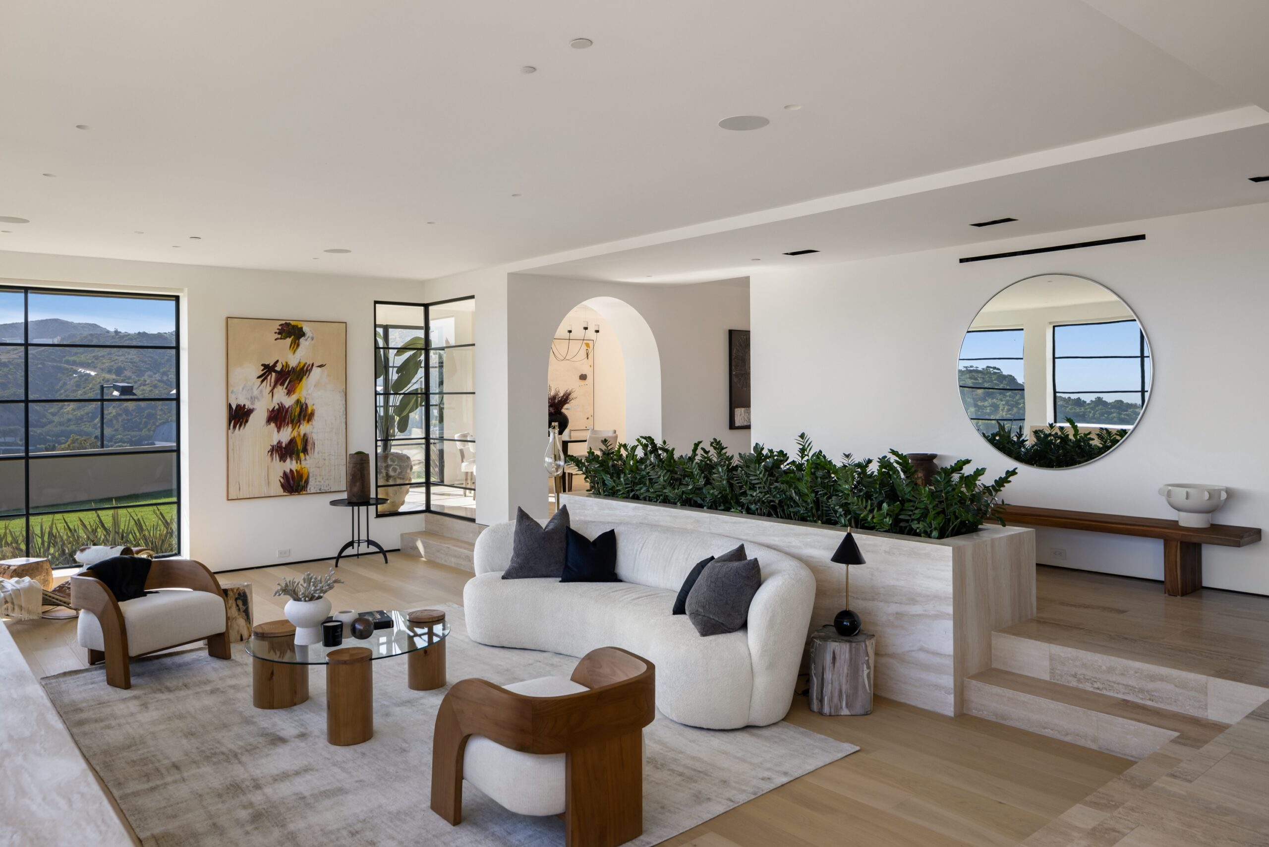 string(2378) "Nestled in the tranquil hills of Bel Air, this architectural masterpiece sits on over 3.5 acres surrounded by majestic mature trees, offering breathtaking panoramic views of the mountains, ocean, and the world-famous Getty Museum. Designed by AADS, the home's design is in a league of its own, combining its distinct Scandinavian-inspired roofline with a palette of natural and organic finishes, drawing inspiration from the Getty Museum itself. This compound boasts an extremely private homesite at the bottom of a 250-foot gated driveway. The masculine exterior is tastefully contrasted with a warm and inviting interior palette that is artfully pared back to travertine stone, white oak, and walnut throughout the entire home. Setting eyes on the front facade, it's hard to decipher where the garage is. Using structural steel engineering, the door is seamlessly camouflaged behind mahogany siding, concealing an airplane hangar door that allows for a large 40-ft single opening. This creates a new level of functionality and design compared to traditional garage spaces. The expansive main house is appointed with 5 en-suite bedrooms upstairs and a downstairs guest suite across over 8,300 sq. ft. of living space. With multiple vistas, the primary suite is second-to-none, featuring huge clear-view center-pivot windows leading to a private balcony, two separate bathrooms with floor-to-ceiling travertine slab walls, and two walk-in Italian-made closets. On the main level, the ultra-luxurious kitchen is appointed with Italian-made cabinets by Molteni&C Dada and book-matched Calacatta marble countertops. Behind the main kitchen is a fully appointed pantry kitchen that is perfect for private-chef dinners and event caterers. Additionally, an over 3,400 sq. ft. detached guest house offers 2 en-suite bedrooms and a separate wellness area, complete with a gym, sauna, steam room, and massage room. The gym boasts views of a neighboring vineyard reminiscent of the hillsides of Tuscany. Marrying the main house and guest house is the ultimate outdoor oasis, equipped with a private pool and spa, large flat grass pad, private tennis court, and ample patio space for hosting gatherings. This is the home that keeps on giving. Perched amidst the lush hillside, this property effortlessly blends luxury living with the best lifestyle and views that Los Angeles has to offer."