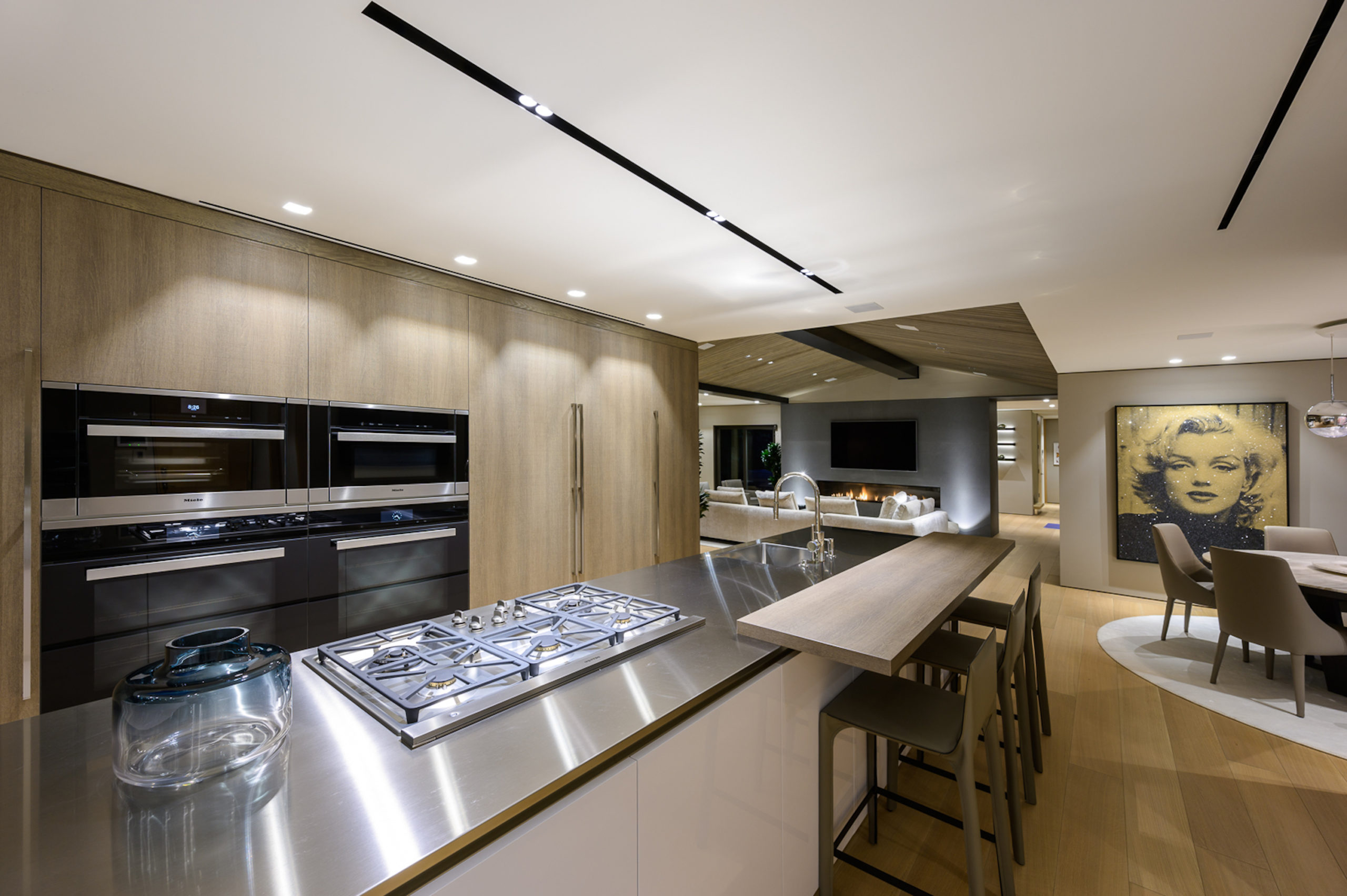 Designed by the famed Michael Palumbo, 8808 Thrasher Avenue exemplifies true elegance and quality. Newly developed and located behind gates in prime Sunset Strip, the home offers unparalleled scale and top of the line finishes throughout. The living room with vaulted cedar ceilings soaring above the oak french floors seamlessly flows into the fully equipped kitchen complete with all Miele appliances and custom Italian cabinetry. With glass doors that open completely to the balcony, the grand master suite has a spacious walk in closet, spa like bathroom and a fireplace. Featuring a pool, spa and BBQ, the backyard is perfect for entertaining as well as a relaxing escape. Cutting edge technology throughout the home functions from a Control4 System that can be accessed from anywhere in the world.