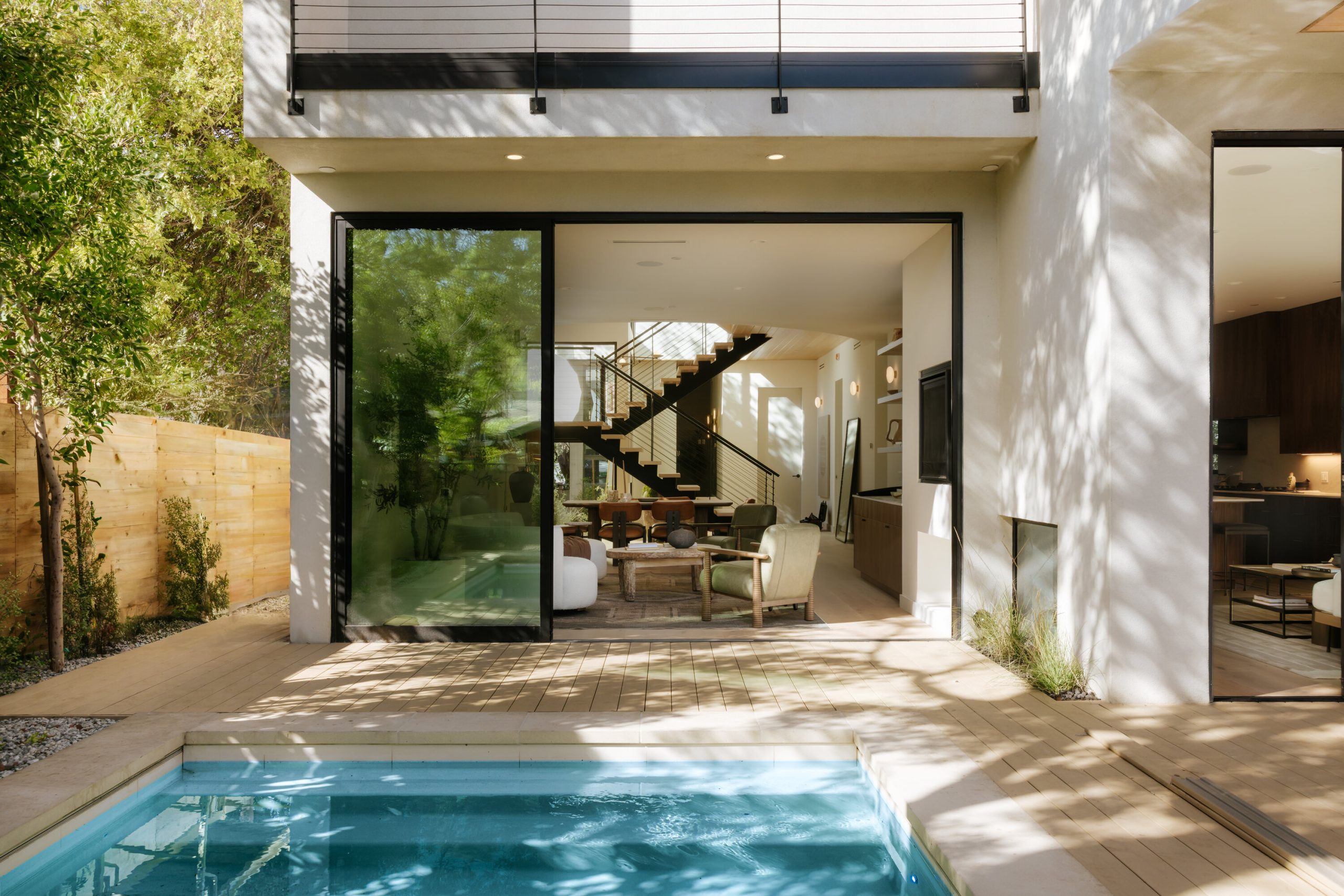 Experience unmatched modern luxury in this brand-new Culver City masterpiece. This home showcases incredible architecture and design inside and out with its curved wood ceiling off the full height entryway leading to the outdoor trellis overlooking the pool. A wall of oversized sliding doors opens to a fully amenitized backyard featuring a 12-foot outdoor kitchen, ceramic oven, outdoor TV with dining lounge, and a sleek pool designed for year-round entertaining. On the third floor is an expansive deck with incredible views and features yet another entertaining zone with an additional outdoor kitchen featuring a pizza oven.Inside, the chef's kitchen highlights integrated PITT burners, premium appliances with double wall ovens, warming drawer, and built-in appliance garage. A see-thru gas fireplace connects the dual living rooms right off the kitchen. The primary suite offers an oversized walk-in closet, a spa-like bath with a custom cedar sauna, and an enormous private deck. The rooftop deck adds yet another entertaining zone with incredible views and additional outdoor living.A detached one-bedroom and full bath ADU provides flexible guest, office, or income potential. Set on a tree-lined street in the coveted Higuera/Lucerne neighborhood, this home is moments from Erewhon, Equinox, Downtown Culver City, Amazon Studios, top dining, parks, and the Metro line. A true best-in-class new construction estate.