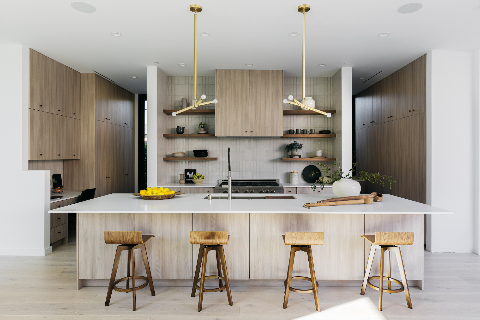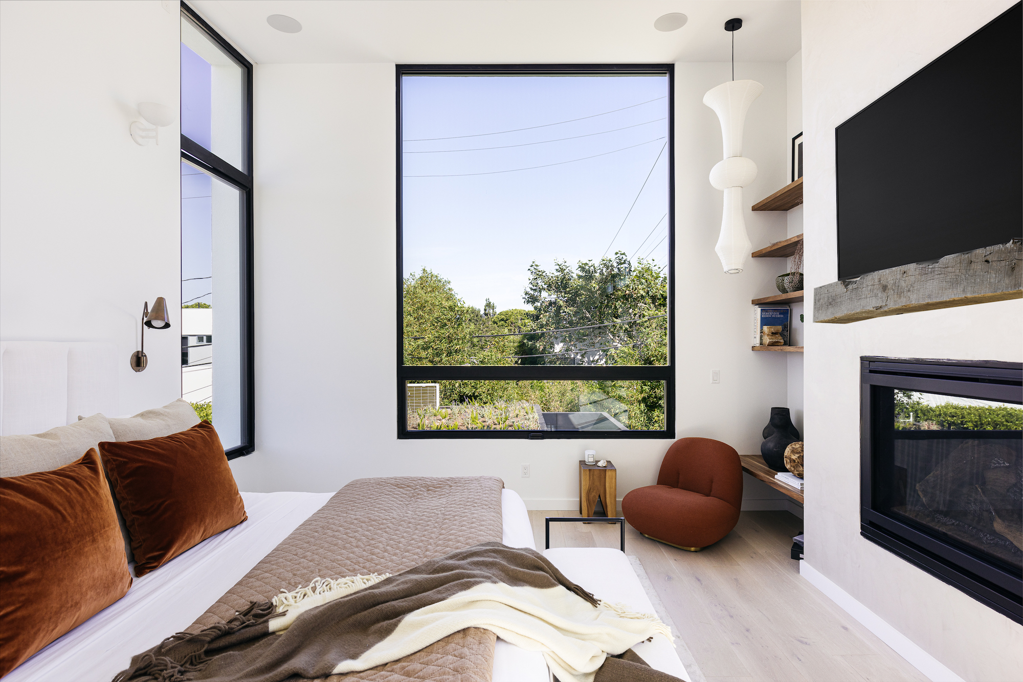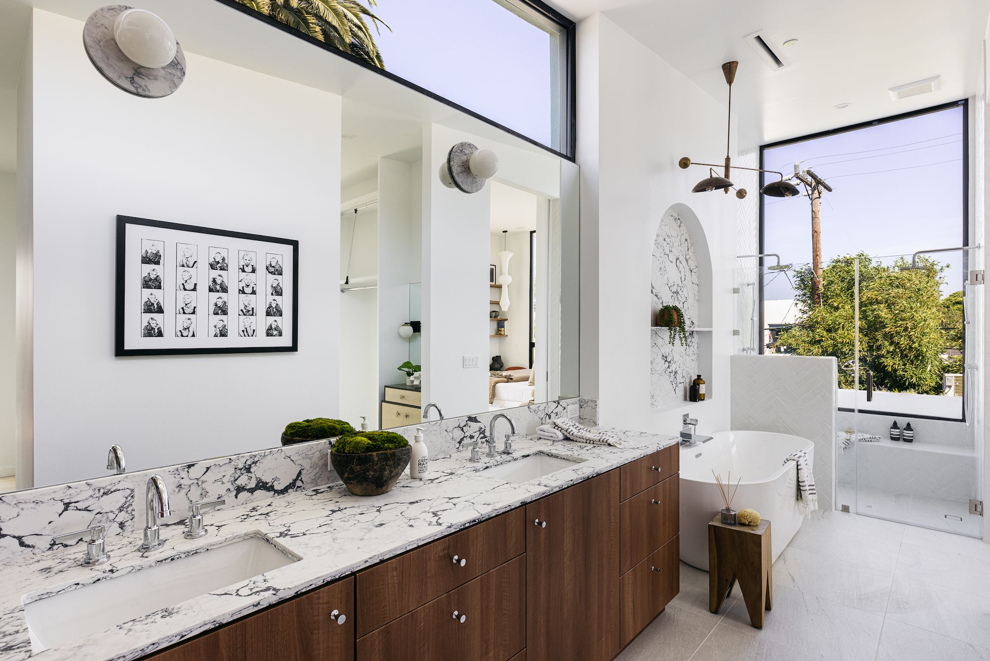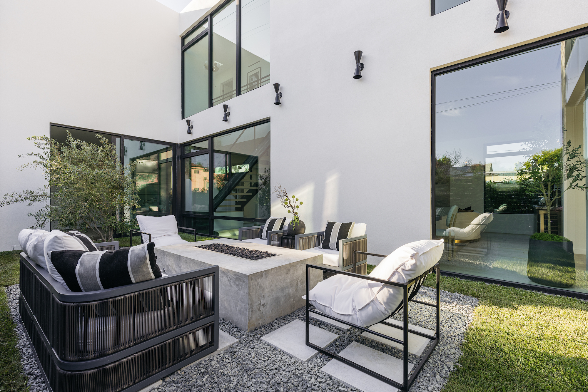 Incredible architectural home within minutes of Downtown Culver City. Entertainer's dream home where you enter right into an elegant living room featuring custom plaster fireplace and built in bar. This gorgeous bar area comes with dramatic porcelain stone wall, ice maker, and wine fridge. HUGE kitchen with Dacor appliance package of 4 ft gas range, 30 inch side by side fridge freezer with custom cabinet panels, 4 ft sink in kitchen island, and butler pantry tucked behind kitchen. Butler pantry contains a second gas range and an enormous amount of additional storage. Kitchen and living space all open to the backyard featuring a stunning new pool and fully outfitted guest house. Outdoor pool deck has covered dining, built in barbeque, and custom stone dining island. Center courtyard, visible from all first floor living areas, has 6 ft long custom built in firepit and beautiful olive tree. Second level primary suite features a built- in fireplace, dual shower head walk in shower, soaking tub, double walk in closets, and extra built in storage. Second level also features game room den with an additional gas fireplace and tree top views. This custom built home is brand new construction and has so many more unique features. Best to see in person and feel the elegance and privacy of this incredible home.
