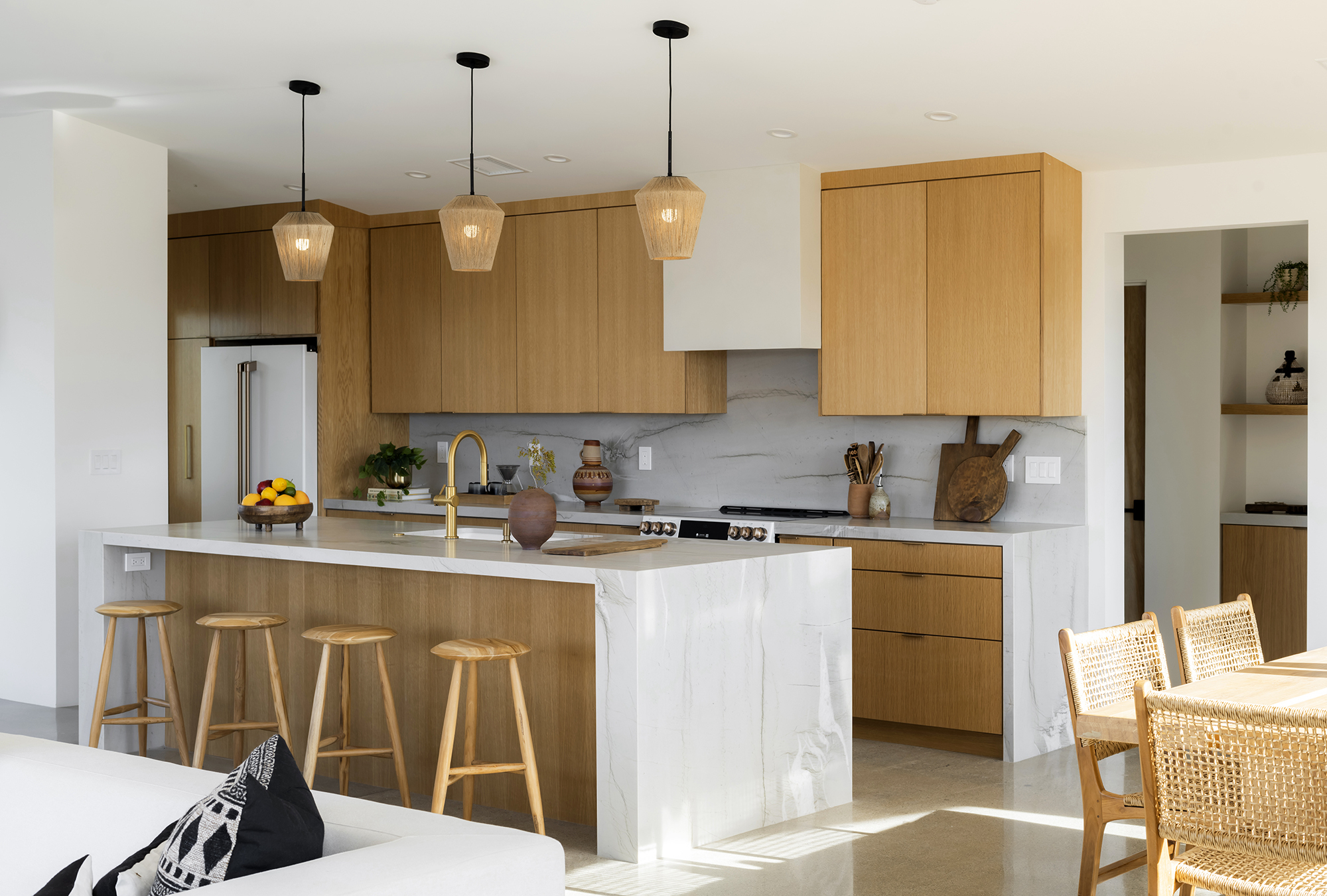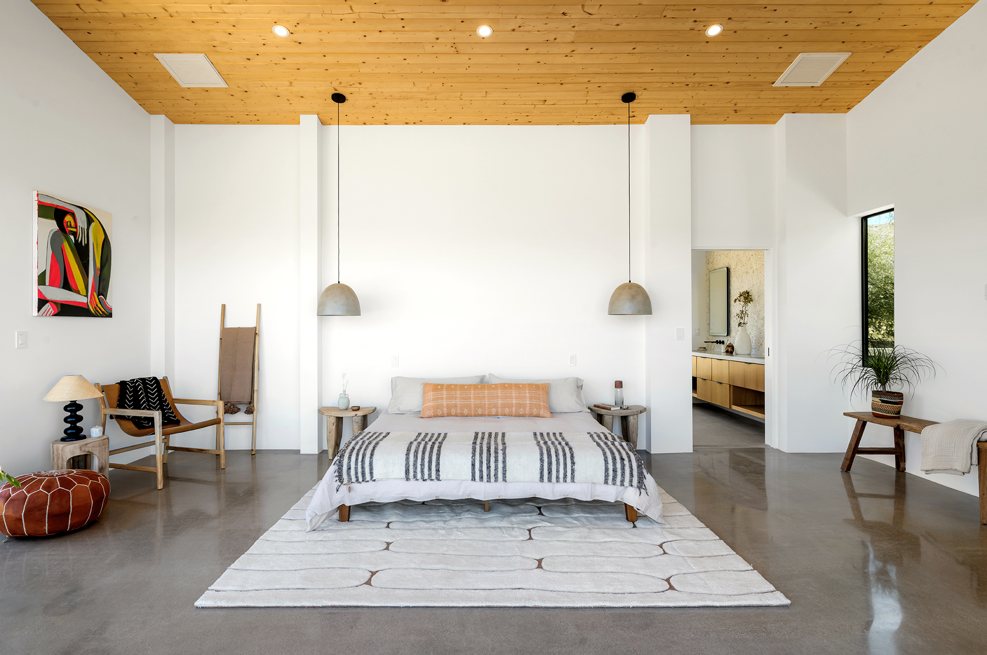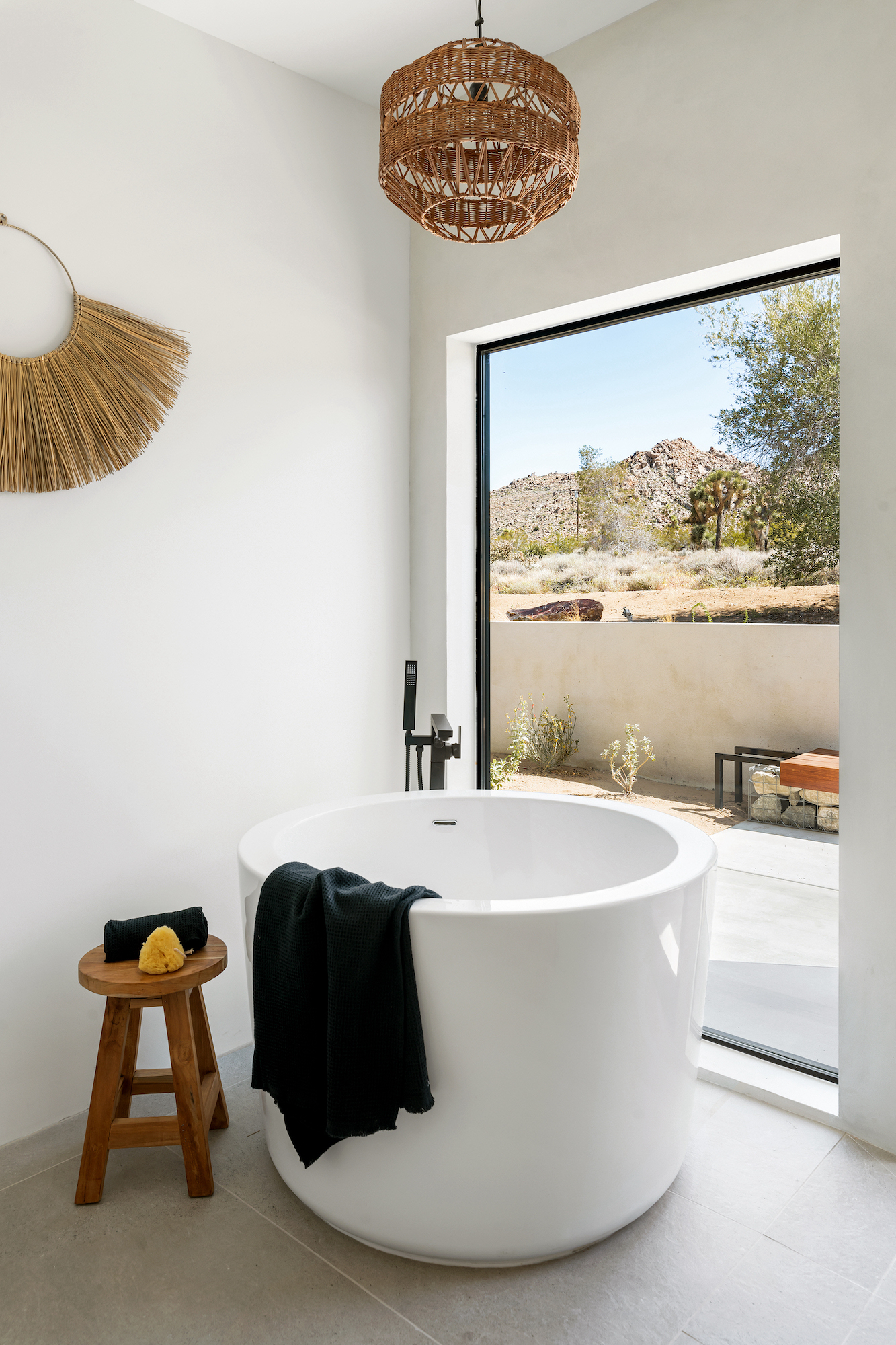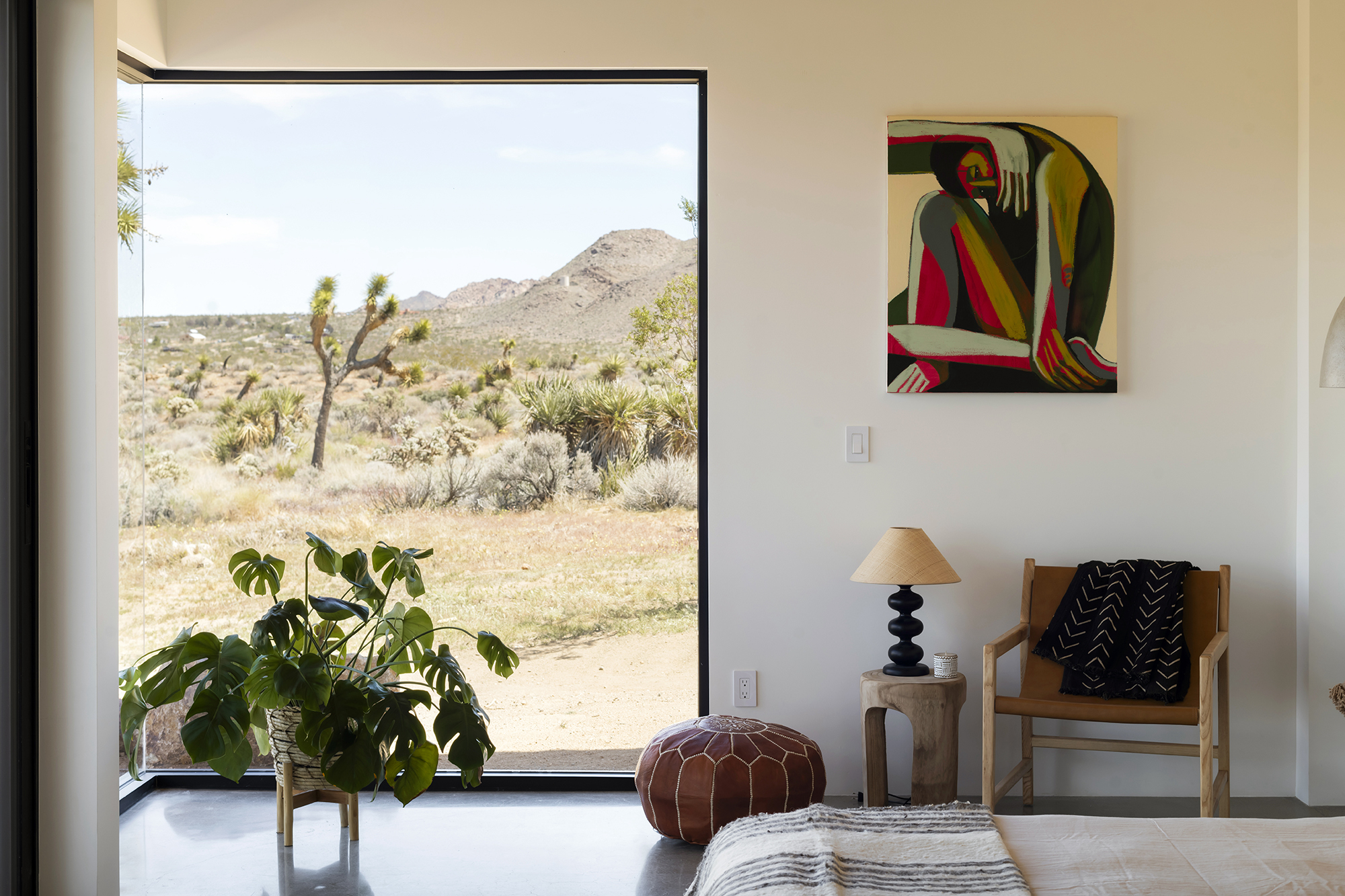 string(1849) "Contemporary Desert Masterpiece: Classic butterfly roof design with a 15' tall soaring eve gracing the front of this meticulous new construction. The tall eves, providing shaded outdoor space, when combined with a 15' wide disappearing sliding-glass wall create an authentic indoor/outdoor living experience. Step into the redwood hot tub out front, with a majestic boulder mountain, perfectly framed through the massive glass wall when viewed from inside the spacious Great Room. Formal entry is through an 8' tall by 4' wide pivot glass door. The custom kitchen showcases a massive quartz double waterfall island and hand-built cabinetry, allowing for an ideal social space with the dining area and kitchen filling out the rest of the Great Room. One reaches the en suite primary bedroom down a long glass encased hallway. The primary bedroom also features an unobstructed frameless cantilevered corner window utilized by Frank Lloyd Wright in the Ennis House built in the Hollywood Hills exactly a century ago. The primary bathroom features a nearly 6' by 10' massive window looking out at the mountain range to the south, while the guest bathroom has a door opening to an exterior platform, for a total of 3 full baths and 3 bedrooms spread over 2,287 square feet of interior living space. Inspired by midcentury design throughout, each room features endless glass, illuminating the interior and looking out over vast wilderness in every direction. Tucked up near the Joshua Tree National Park on a large 2.5-acre parcel, one can hike from home into the Park or drive to the main entrance gate a short distance up the road. Located in the coveted Monument Manor/Joshua Highlands neighborhood, often referred to as the Bel Air of Joshua Tree, the location offers privacy, prestige and convenience for those seeking serene wilderness surroundings."