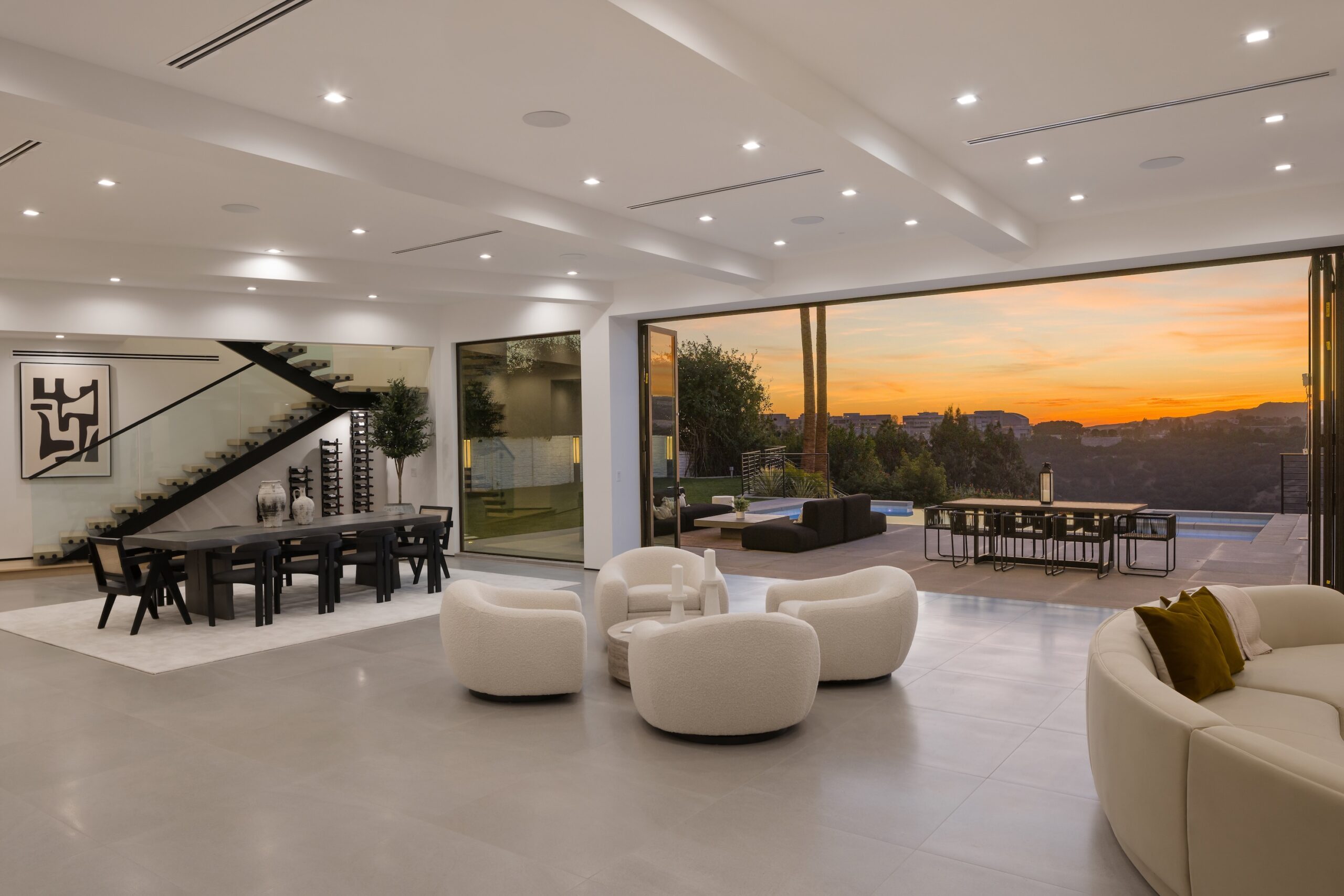 string(1328) "This stunning architectural estate, set on over half an acre, offers breathtaking views of the Getty Museum, Moraga Vineyard, mountains, and the ocean. Thoughtfully designed for modern luxury and timeless elegance, the home features expansive living spaces framed by floor-to-ceiling Fleetwood glass doors that blend indoor and outdoor living seamlessly. The state-of-the-art kitchen is a masterpiece with Bauformat German cabinetry, a Wolf 48" range, Sub-Zero refrigerator and freezer, a built-in Wolf coffee system, and Bianco Stella Honed Dolomite countertops and backsplash. The main level boasts four bedrooms, including a luxurious primary suite with a spa-like bath featuring Calacatta Vision Honed Marble and a private outdoor retreat. Upstairs are two junior suites with private decks, plus space for an office and a gym or playroom. The backyard is a resort-style oasis with an infinity pool, spa, sprawling lawn, and multiple outdoor entertaining areas. Highlights include a powder room with Explosion Blue Honed Granite, a Namibian Black Honed Granite fireplace and bar, and advanced smart home technology throughout. Located near John Thomas Dye and Community Magnet Charter Schools and just minutes from Brentwood, Beverly Hills, and Sunset Boulevard, this estate redefines luxury living in an unbeatable location."