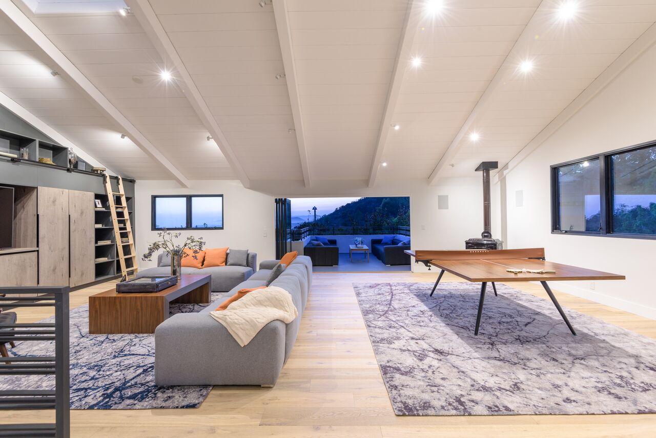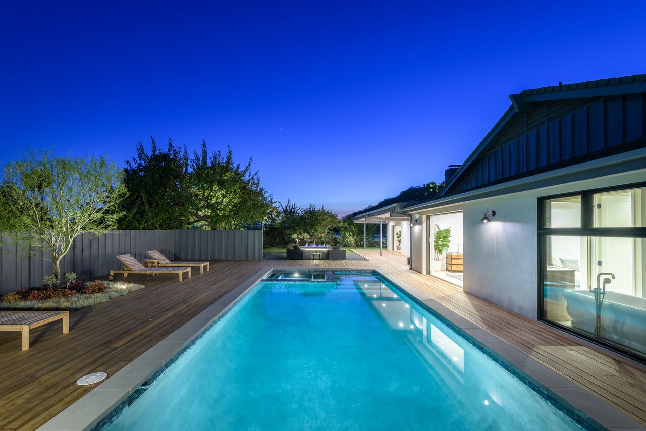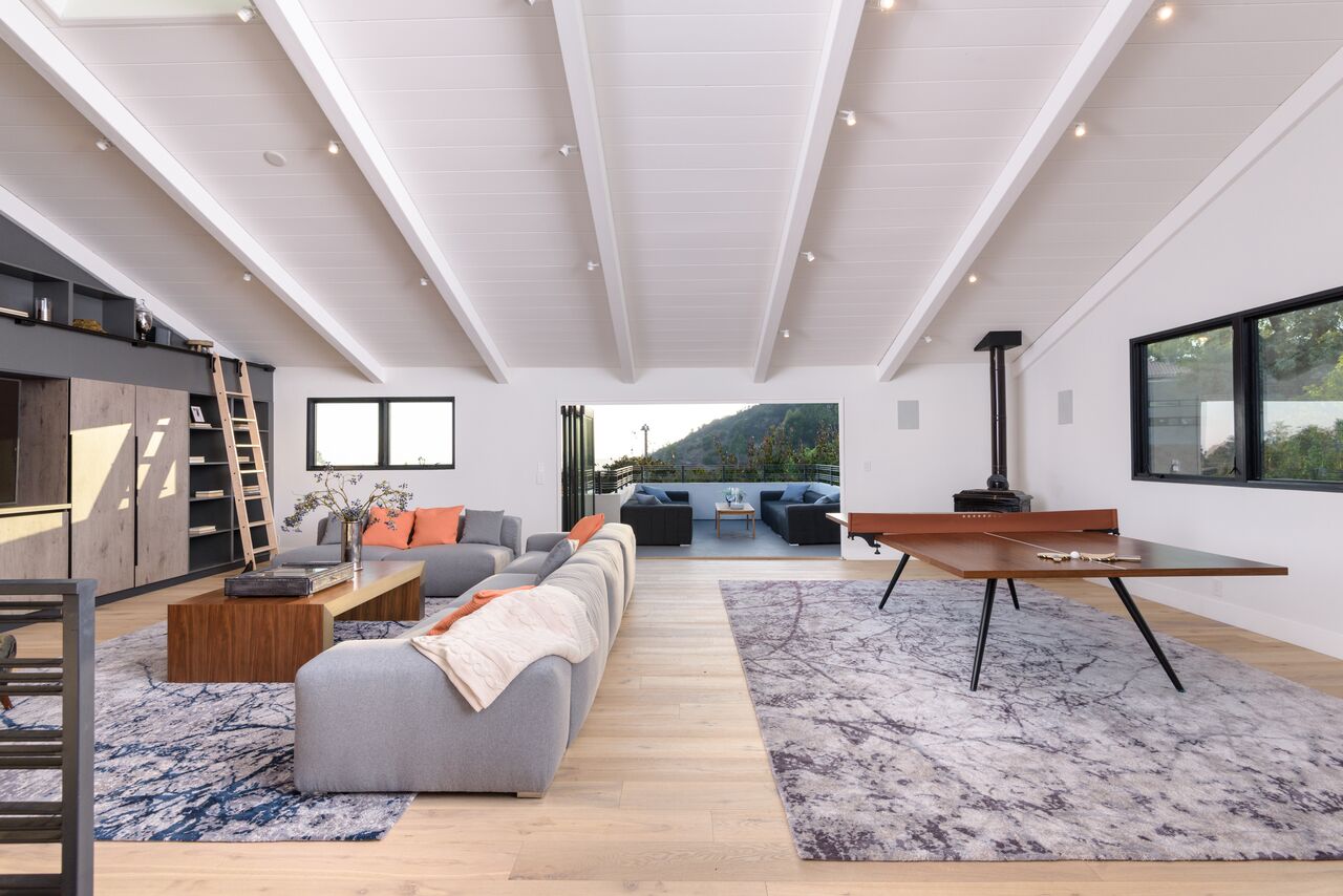Modern Farmhouse in prime Beverly Hills on large corner lot. Nearly 5,000 sq ft of thoughtful and meticulously crafted warm luxury living. Offering open living spaces with tremendous volume and light, wonderful indoor/outdoor flow, gorgeous high-end kitchen, hardwood floors, beautiful master suite, large guest suites, and smart home features. Pocket doors throughout open to fabulous backyard designed to embrace the best of the California lifestyle with Baja Shelf pool, sundeck, fire pit, generous lawn, outdoor kitchen, and pool bath. Upstairs entertainment loft opens to outdoor terrace with endless views of the Santa Monica mountains. Maid's quarters with en-suite bath and separate entrance. Rare turnkey offering nestled in a highly coveted area, just moments from The Sunset Strip and Beverly Hills Hotel.