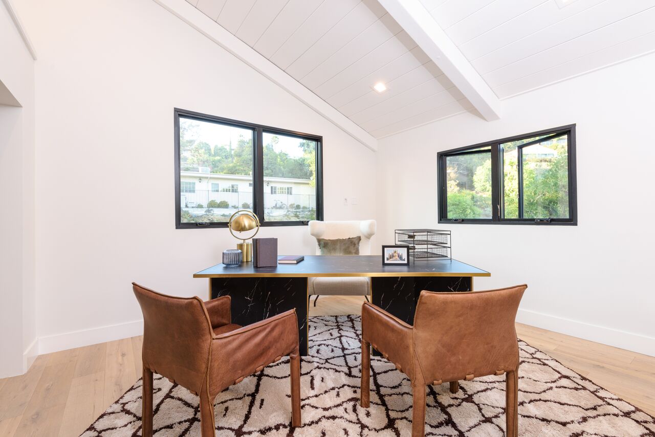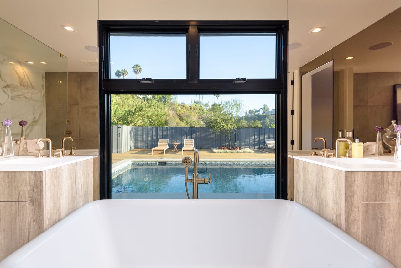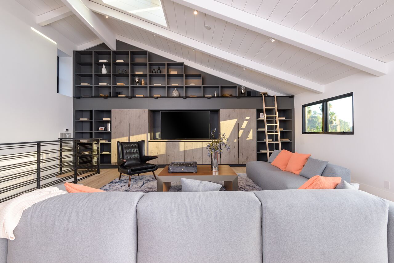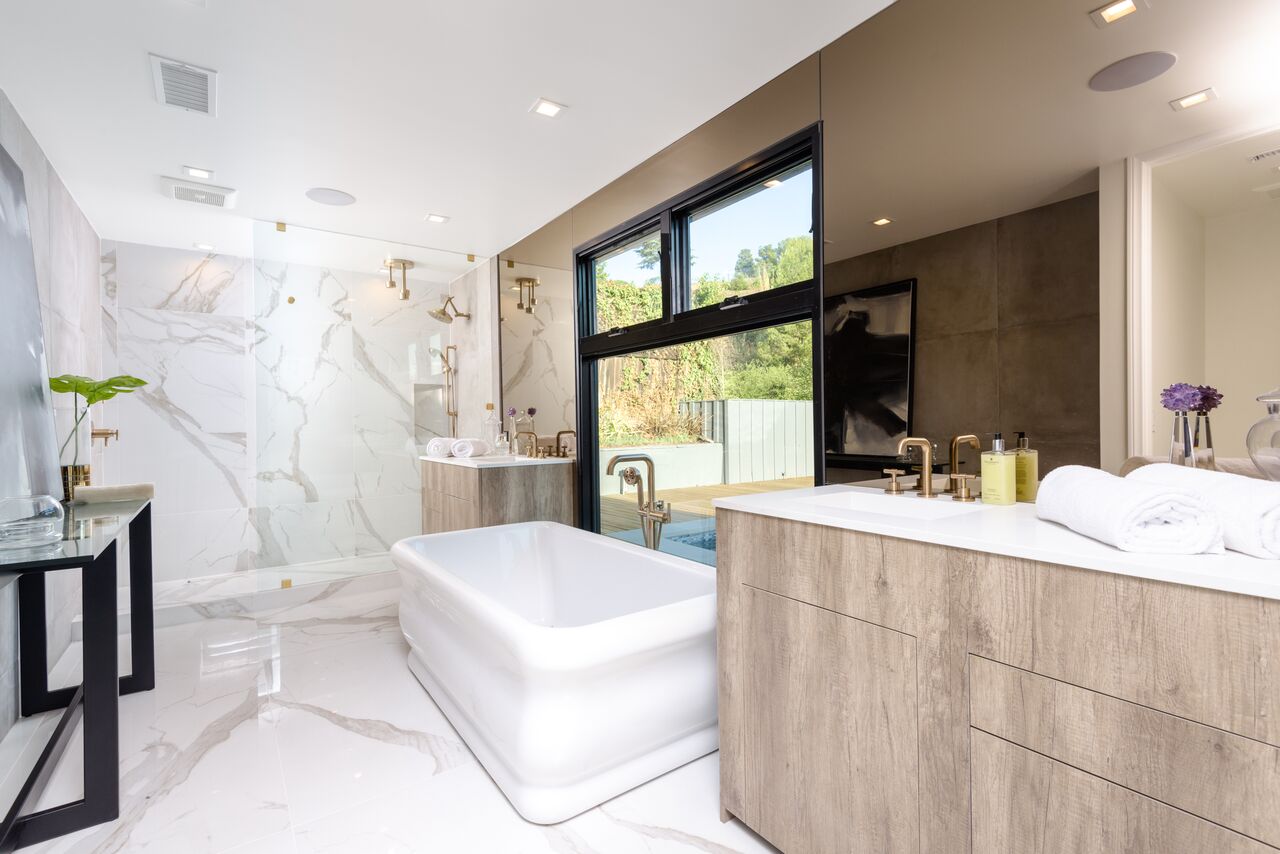 Modern Farmhouse in prime Beverly Hills on large corner lot. Nearly 5,000 sq ft of thoughtful and meticulously crafted warm luxury living. Offering open living spaces with tremendous volume and light, wonderful indoor/outdoor flow, gorgeous high-end kitchen, hardwood floors, beautiful master suite, large guest suites, and smart home features. Pocket doors throughout open to fabulous backyard designed to embrace the best of the California lifestyle with Baja Shelf pool, sundeck, fire pit, generous lawn, outdoor kitchen, and pool bath. Upstairs entertainment loft opens to outdoor terrace with endless views of the Santa Monica mountains. Maid's quarters with en-suite bath and separate entrance. Rare turnkey offering nestled in a highly coveted area, just moments from The Sunset Strip and Beverly Hills Hotel.