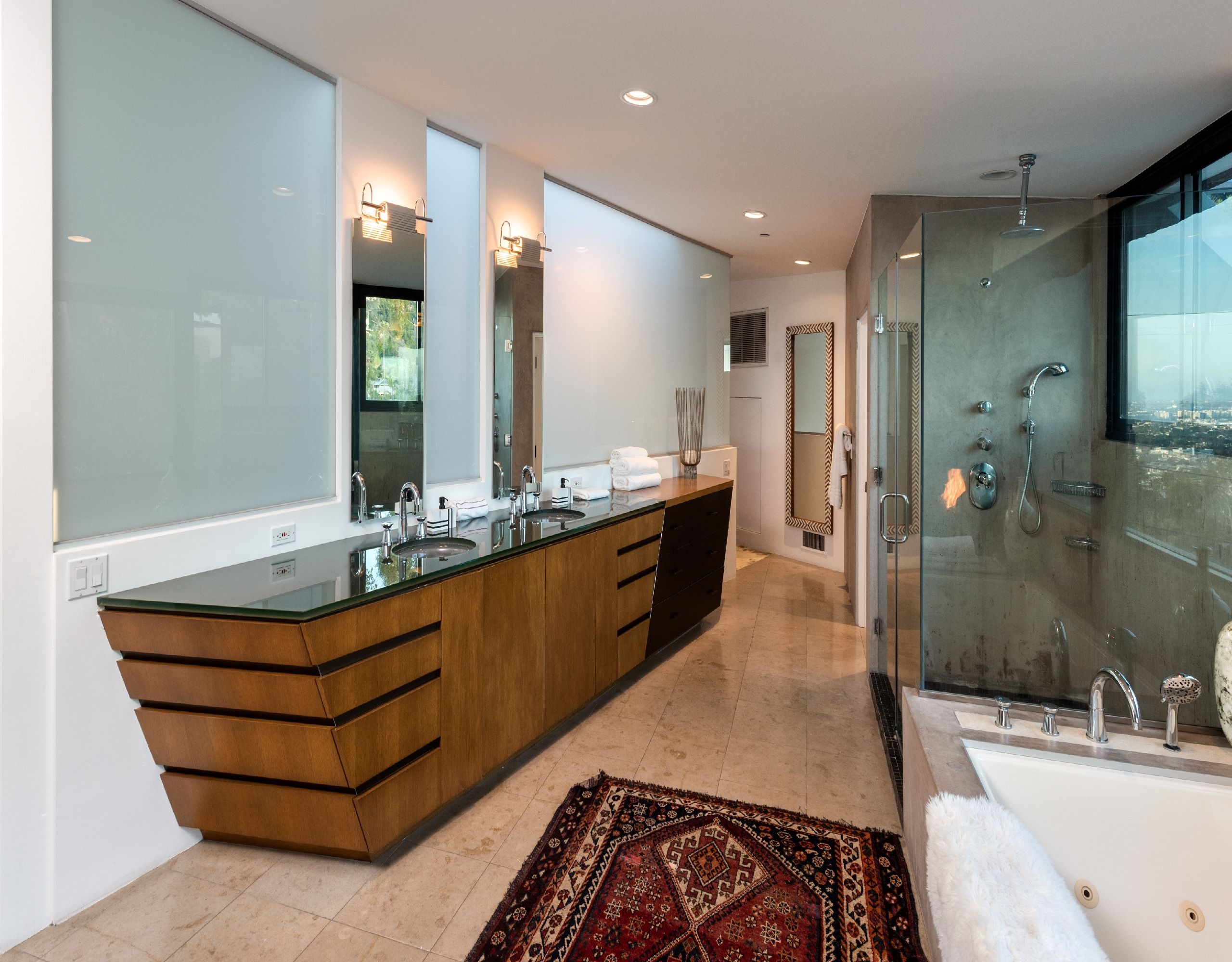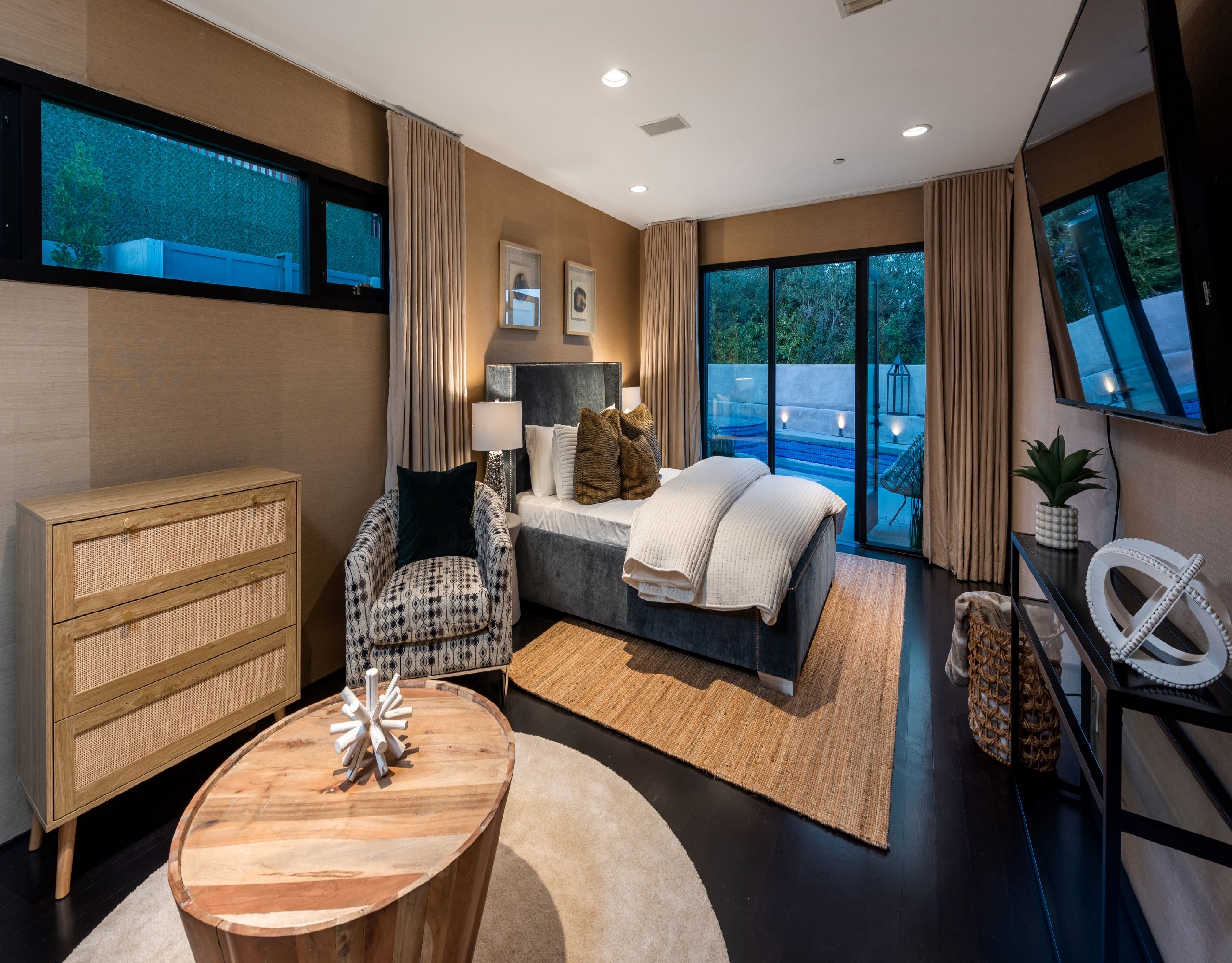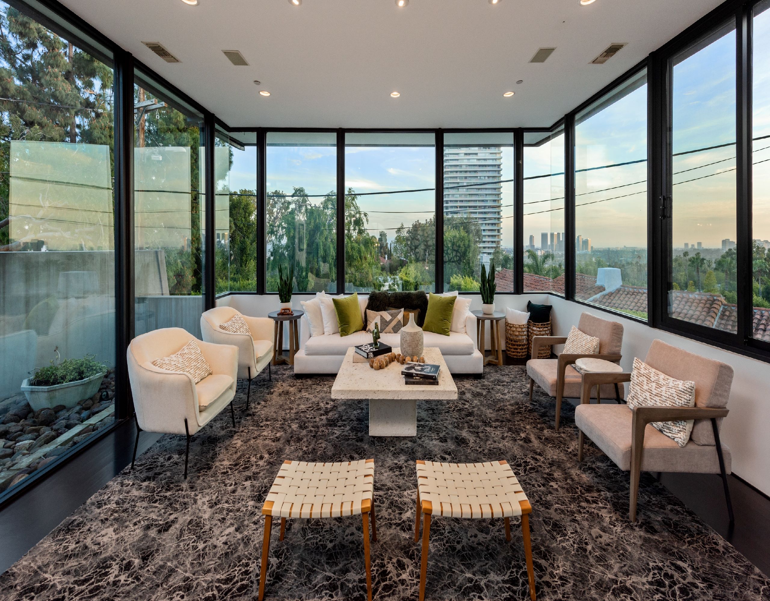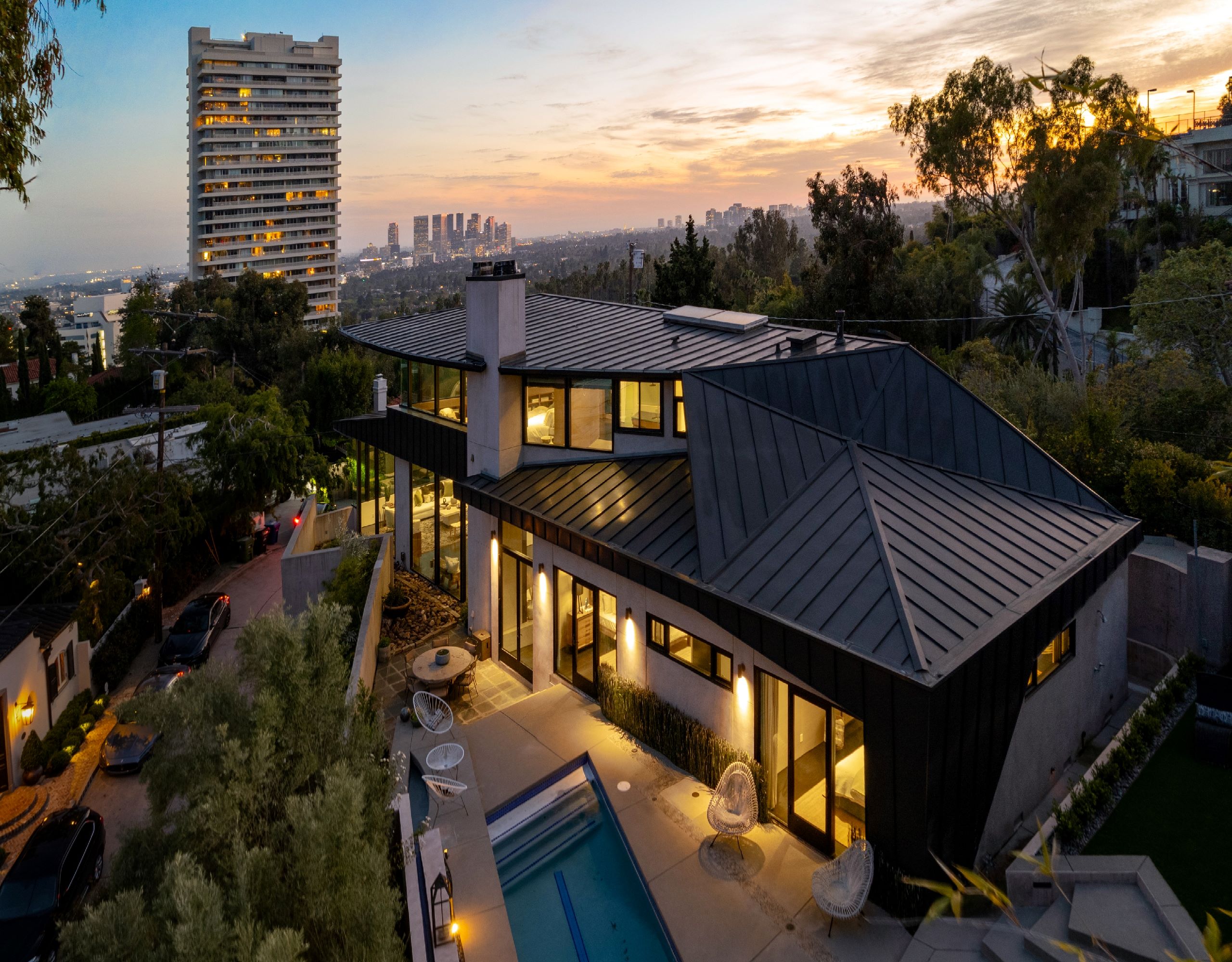 Welcome to 9243 Cordell Dr, a stunning 3-bedroom, 4-bathroom oasis spanning 3,366 square feet in the prestigious Bird Streets. This architectural masterpiece offers a seamless blend of luxury and tranquility, epitomizing upscale living. Upon entering, you are greeted by an open floor plan accentuated by large windows that frame breathtaking views of the city lights and the iconic LA skyline. The expansive living areas flow effortlessly, creating an airy ambiance perfect for both relaxation and entertaining. The state-of-the-art kitchen is a culinary dream, equipped with top-of-the-line appliances and designed for the modern chef. Adjacent to the kitchen, the dining and living areas offer direct access to outdoor spaces, allowing for a harmonious indoor-outdoor lifestyle. The primary bedroom serves as a private sanctuary, boasting panoramic views, a cozy fireplace, and a spacious balcony. This luxurious suite also features an office space, perfect for remote work, and a walk-in closet providing ample storage. The spa-like en-suite bathroom is designed for ultimate relaxation, enhancing your everyday routine. Step outside to discover your personal oasisa sparkling private pool and spa invite you to unwind while taking in the serene surroundings. The meticulously landscaped grounds offer a peaceful retreat, embodying the essence of a Zen garden. This retreat offers a seamless blend of indoor and outdoor living, all while being minutes away from the famed Sunset Strip. Moments away to an array of world-class shops, restaurants, and entertainment options, ensuring convenience and excitement at your doorstep.
