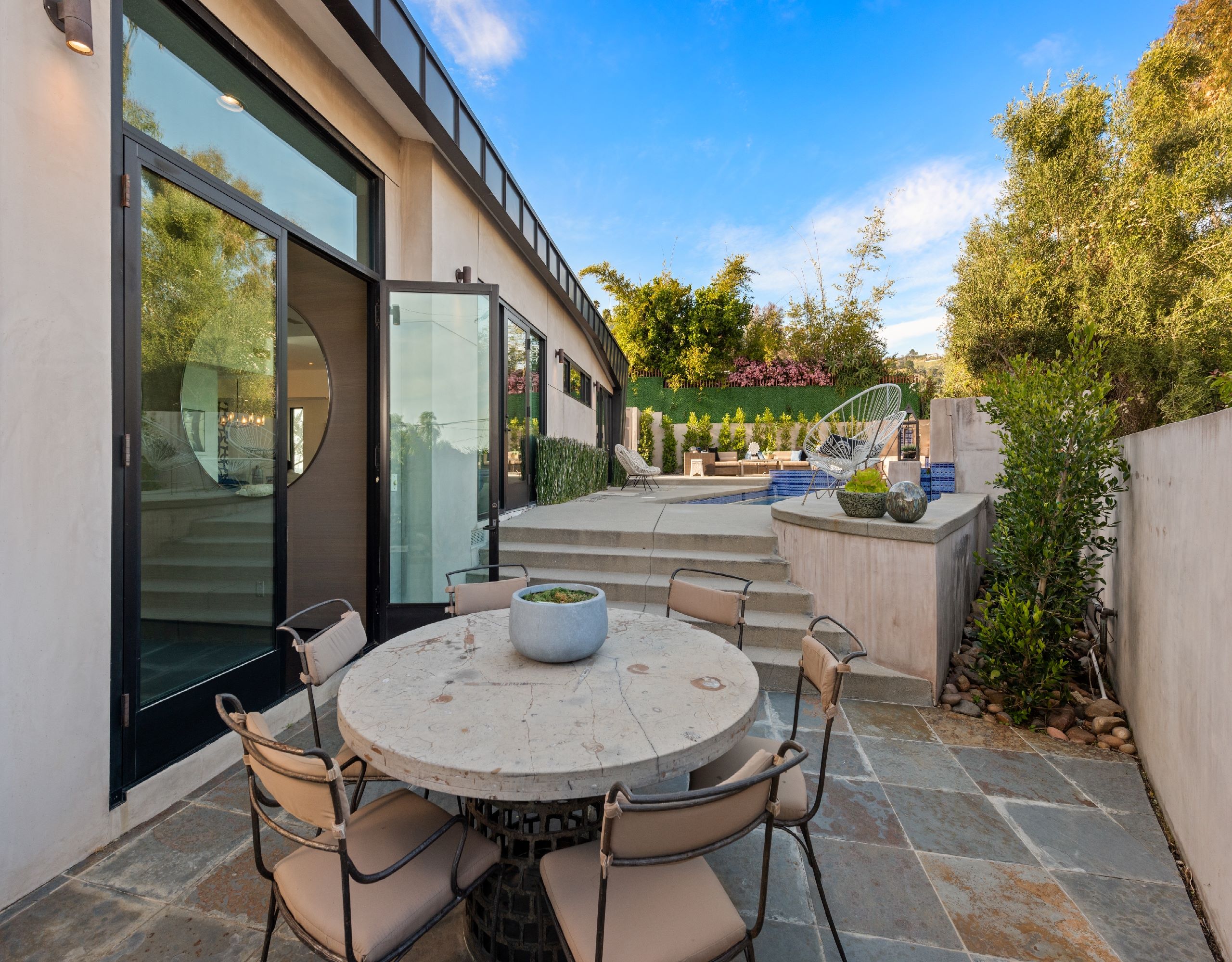 string(1630) "Welcome to 9243 Cordell Dr, a stunning 3-bedroom, 4-bathroom oasis spanning 3,366 square feet in the prestigious Bird Streets. This architectural masterpiece offers a seamless blend of luxury and tranquility, epitomizing upscale living. Upon entering, you are greeted by an open floor plan accentuated by large windows that frame breathtaking views of the city lights and the iconic LA skyline. The expansive living areas flow effortlessly, creating an airy ambiance perfect for both relaxation and entertaining. The state-of-the-art kitchen is a culinary dream, equipped with top-of-the-line appliances and designed for the modern chef. Adjacent to the kitchen, the dining and living areas offer direct access to outdoor spaces, allowing for a harmonious indoor-outdoor lifestyle. The primary bedroom serves as a private sanctuary, boasting panoramic views, a cozy fireplace, and a spacious balcony. This luxurious suite also features an office space, perfect for remote work, and a walk-in closet providing ample storage. The spa-like en-suite bathroom is designed for ultimate relaxation, enhancing your everyday routine. Step outside to discover your personal oasisa sparkling private pool and spa invite you to unwind while taking in the serene surroundings. The meticulously landscaped grounds offer a peaceful retreat, embodying the essence of a Zen garden. This retreat offers a seamless blend of indoor and outdoor living, all while being minutes away from the famed Sunset Strip. Moments away to an array of world-class shops, restaurants, and entertainment options, ensuring convenience and excitement at your doorstep."