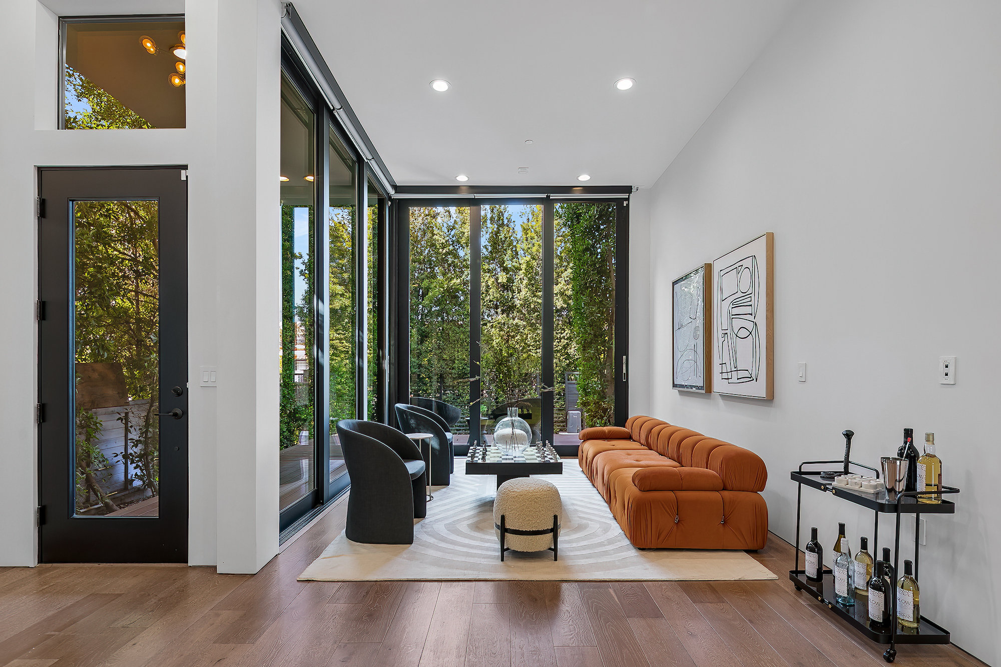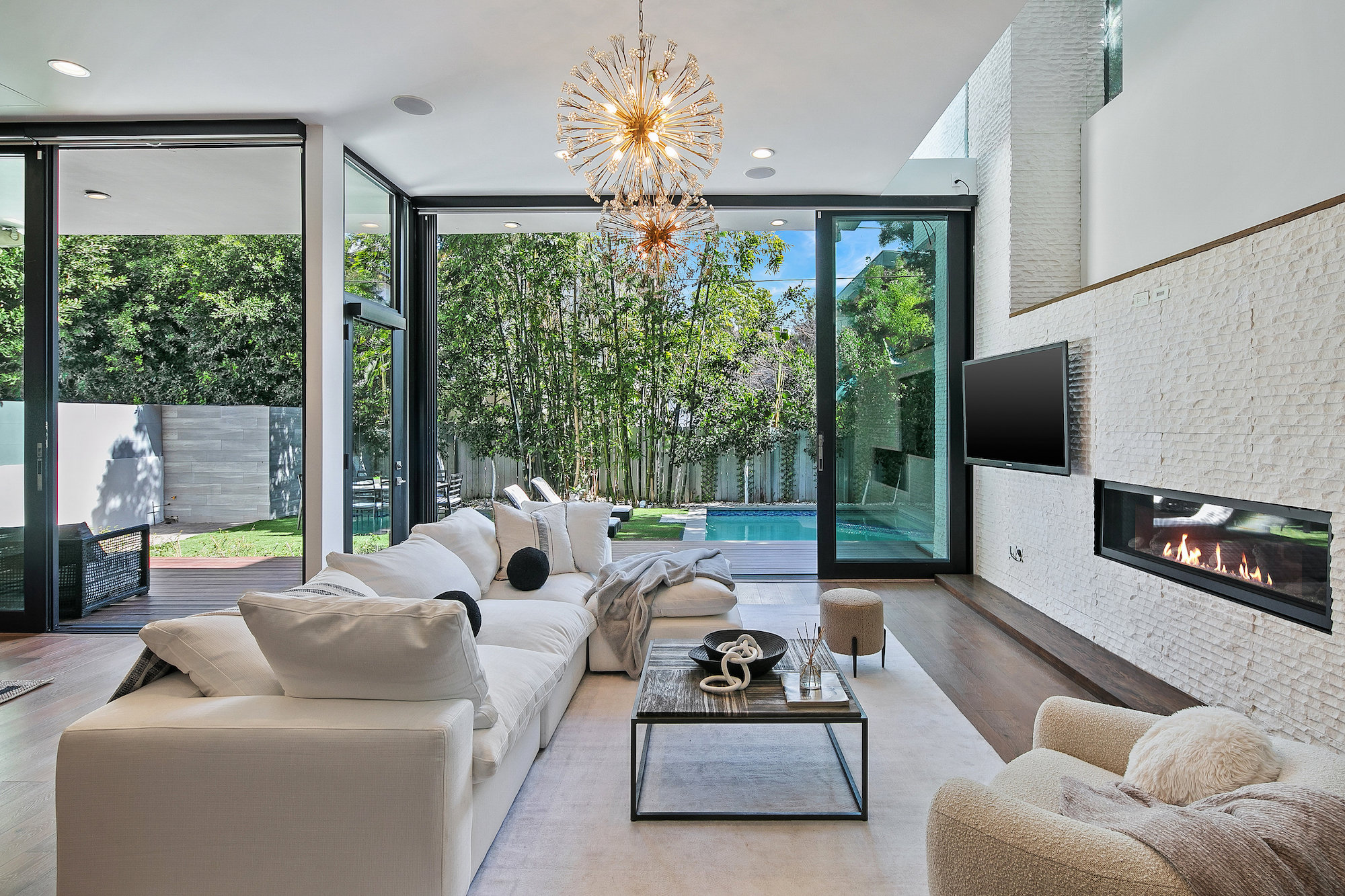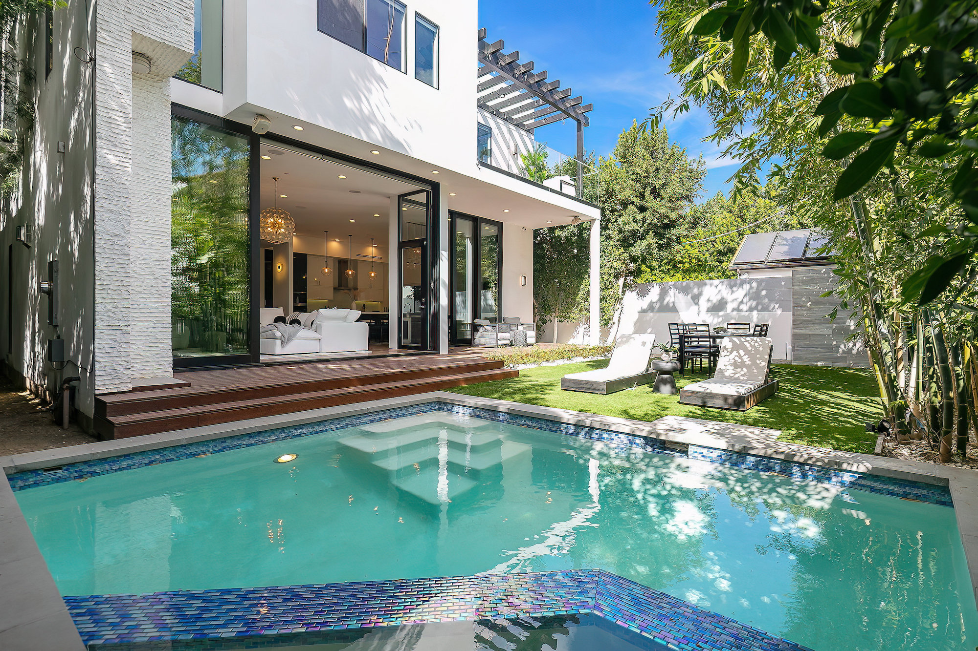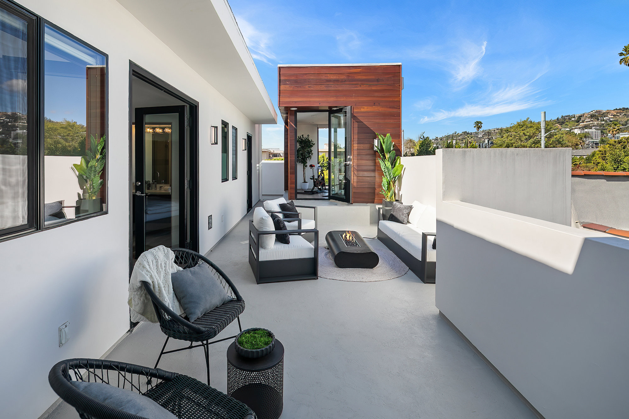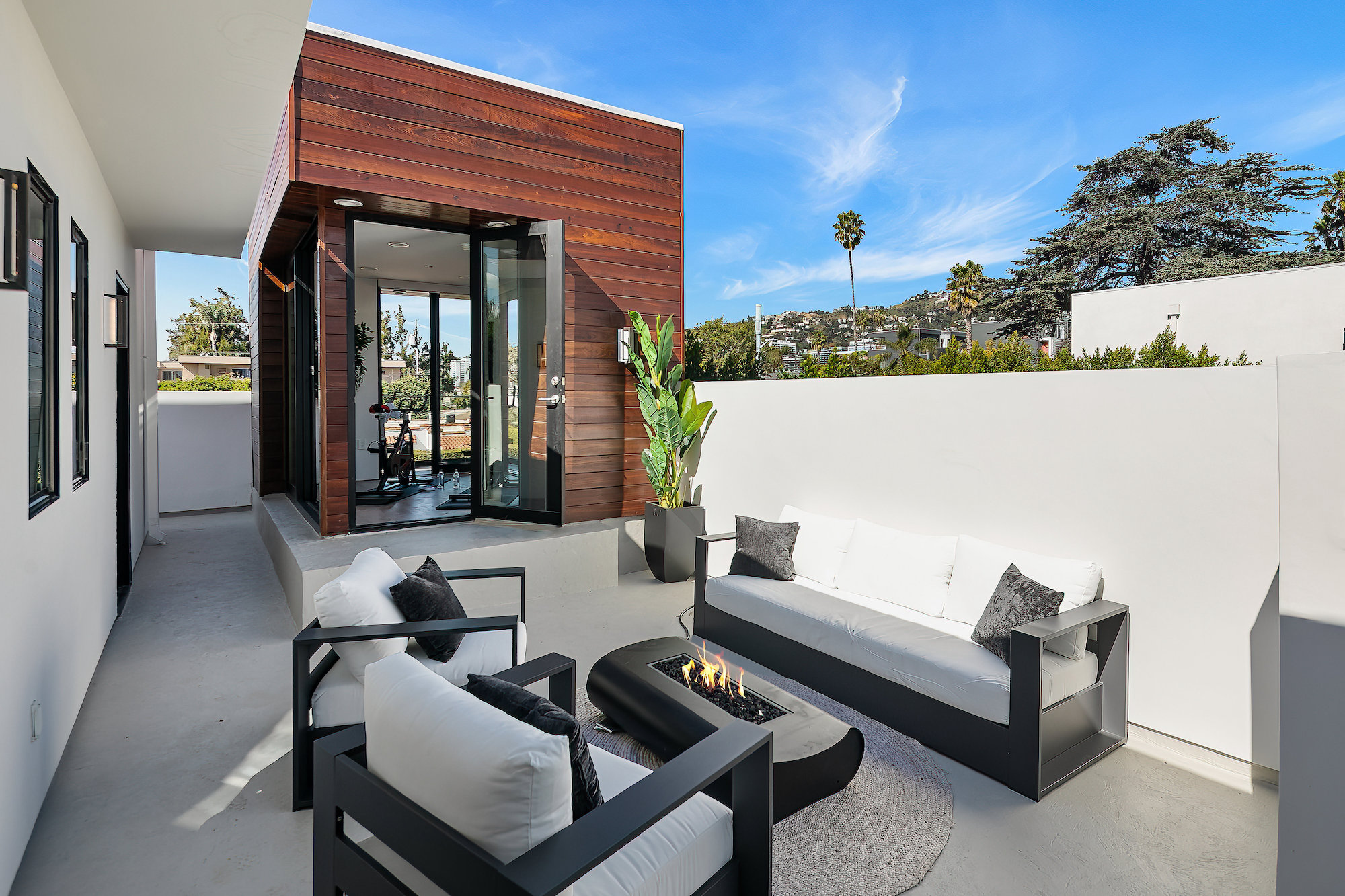 string(945) "Centrally located Contemporary home, West Hollywood adjacent, a short distance to Beverly Hills, Sunset Strip, Melrose Shopping District and other iconic LA destinations, restaurants, day and night life. 4 bed, 4.5 baths with 12' to 20' foot ceilings, 12' sliding glass doors, and rooftop deck with views of the Hollywood Hills. Multiple skylights and walls of glass invite a flood of afternoon sun. Three en-suite beds on second level and one en-suite bed on main level. All beds on second level open to a connective rooftop deck. 80 sq ft pavilion makes for an ideal recording studio, yoga, fitness, meditation or office with city views. Expansive open floor plan and Chef's kitchen with Miele appliances. Great room opens to a heated pool and spa and enchanting backyard with lush landscaping and privacy. Ideal for entertaining and summer dinner parties. Gated and secure with parking for four. SONOS, Nests, and automatic shades throughout."