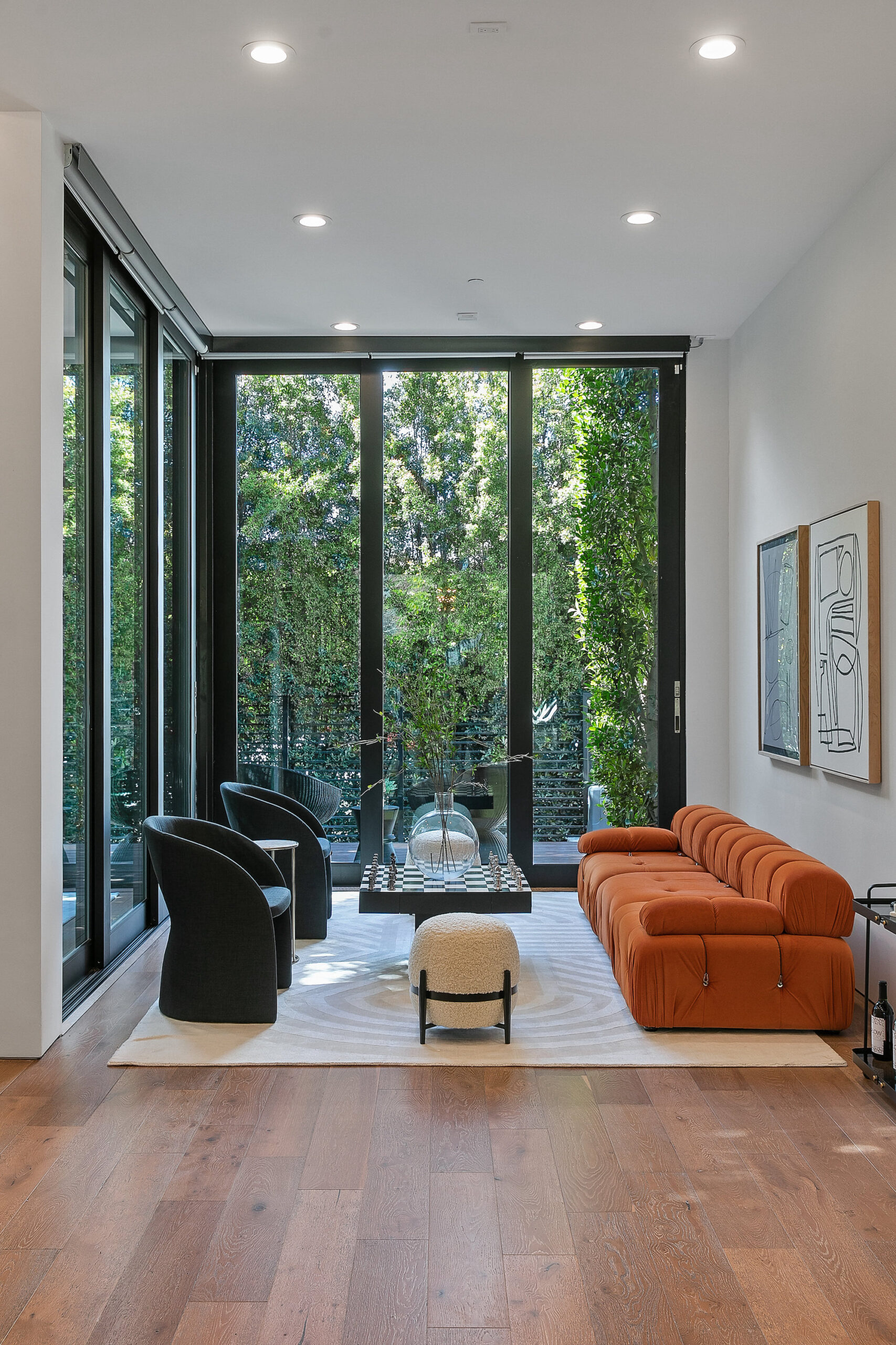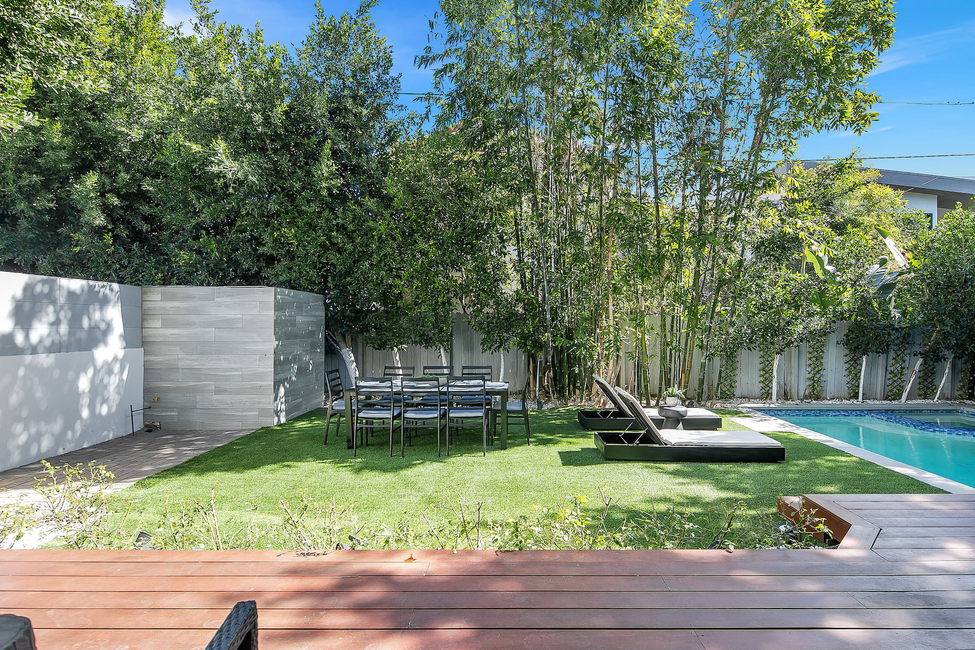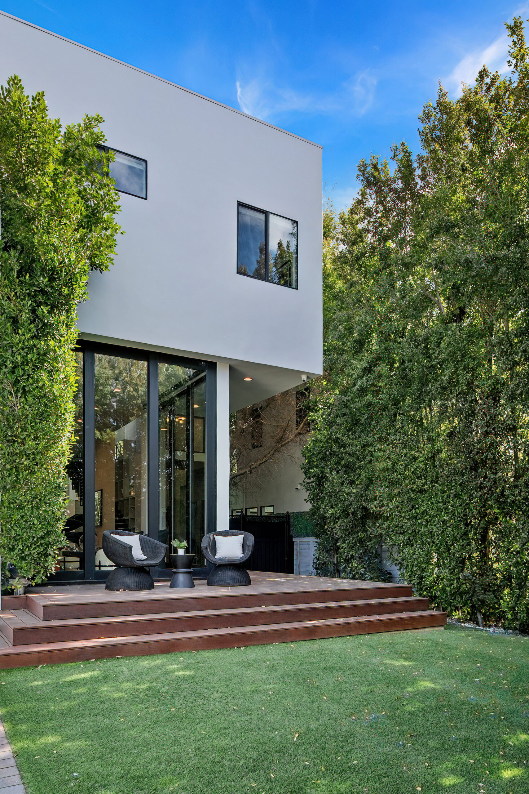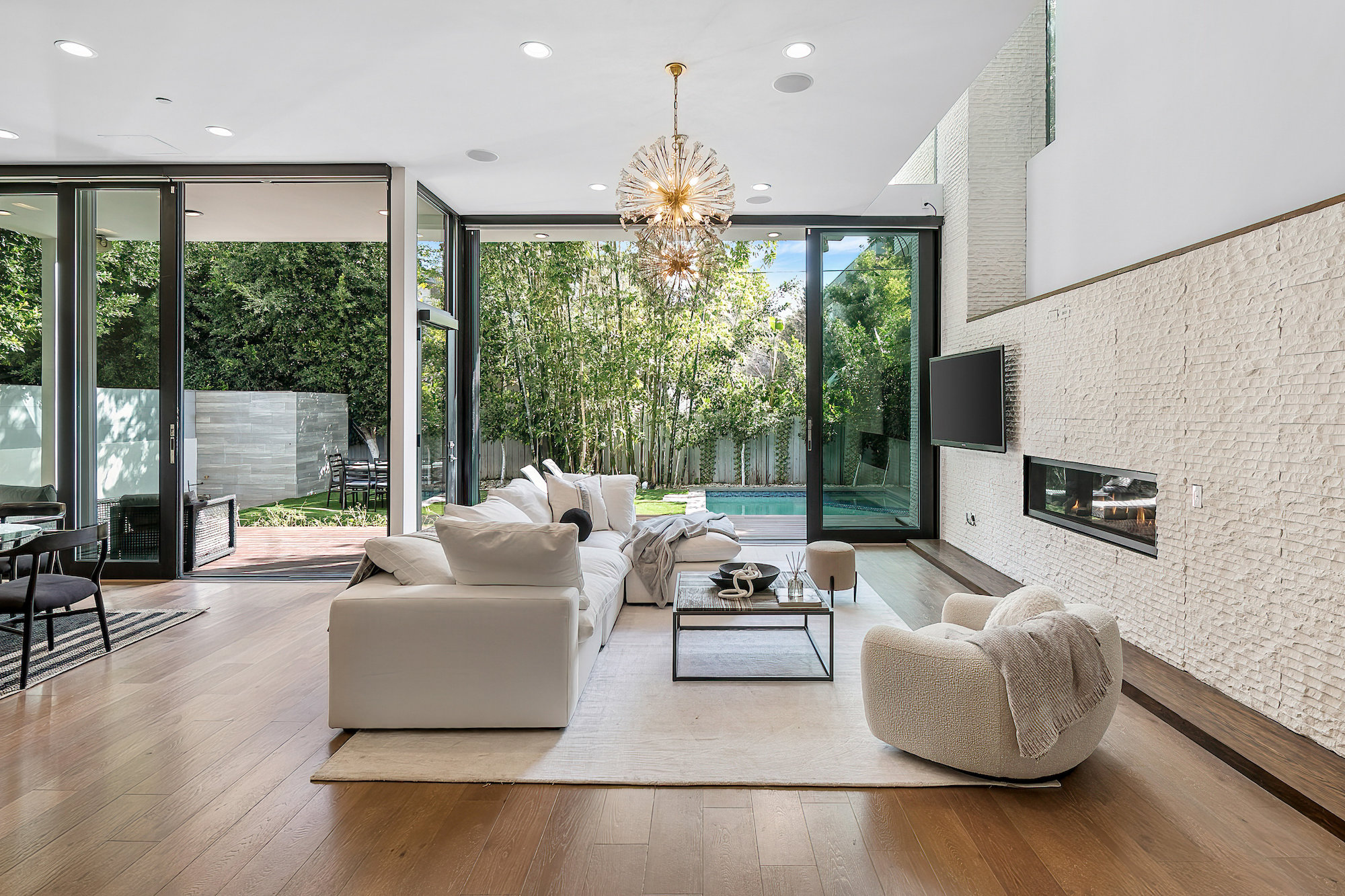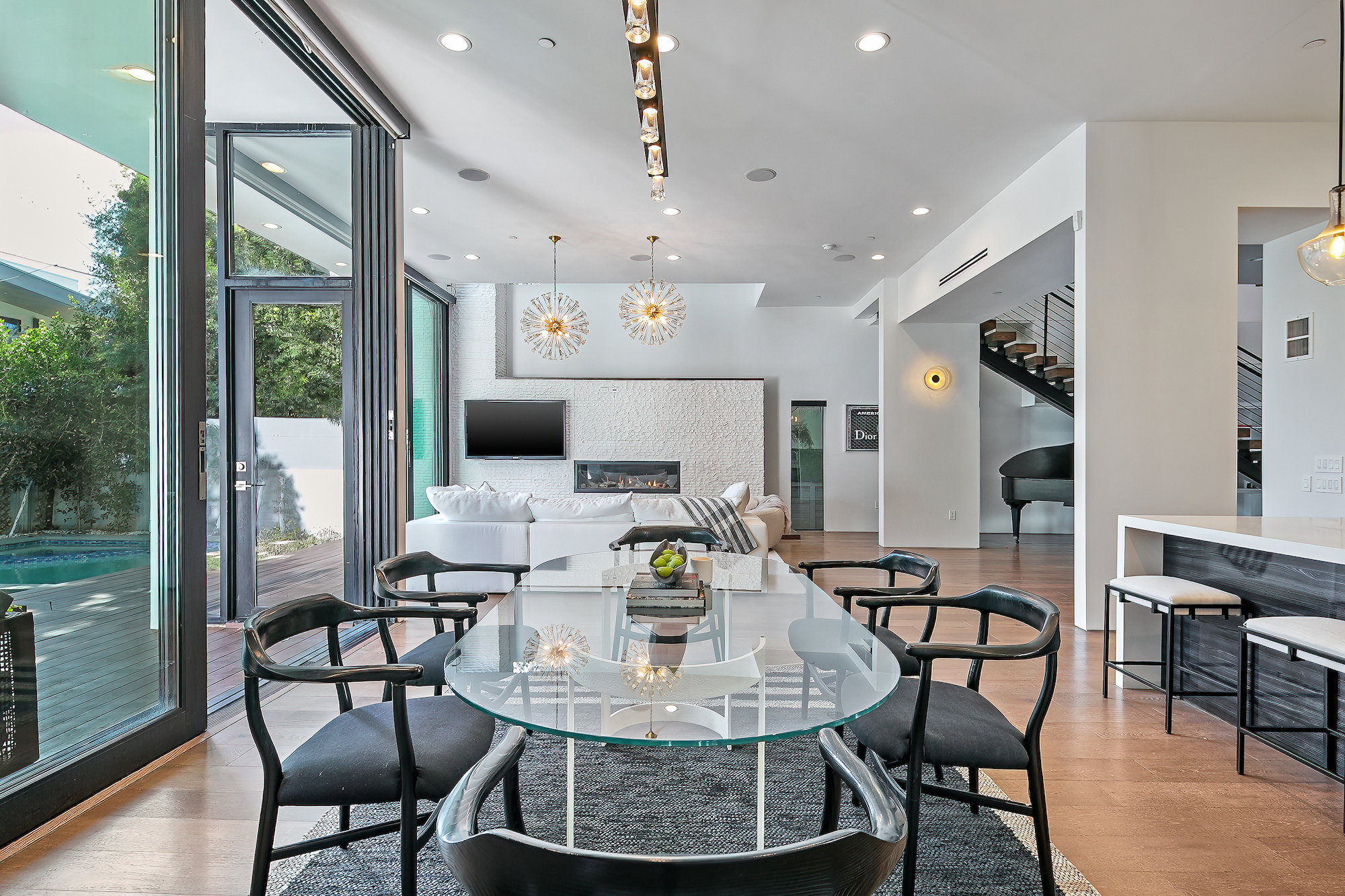 string(945) "Centrally located Contemporary home, West Hollywood adjacent, a short distance to Beverly Hills, Sunset Strip, Melrose Shopping District and other iconic LA destinations, restaurants, day and night life. 4 bed, 4.5 baths with 12' to 20' foot ceilings, 12' sliding glass doors, and rooftop deck with views of the Hollywood Hills. Multiple skylights and walls of glass invite a flood of afternoon sun. Three en-suite beds on second level and one en-suite bed on main level. All beds on second level open to a connective rooftop deck. 80 sq ft pavilion makes for an ideal recording studio, yoga, fitness, meditation or office with city views. Expansive open floor plan and Chef's kitchen with Miele appliances. Great room opens to a heated pool and spa and enchanting backyard with lush landscaping and privacy. Ideal for entertaining and summer dinner parties. Gated and secure with parking for four. SONOS, Nests, and automatic shades throughout."