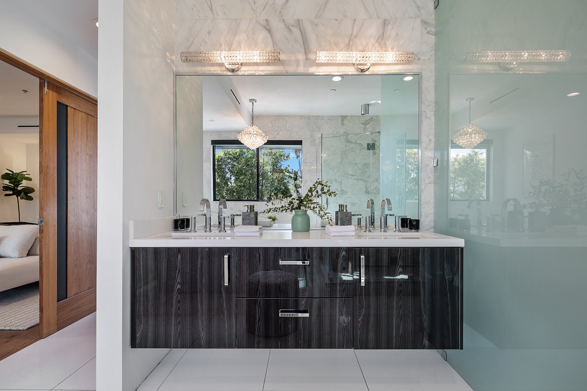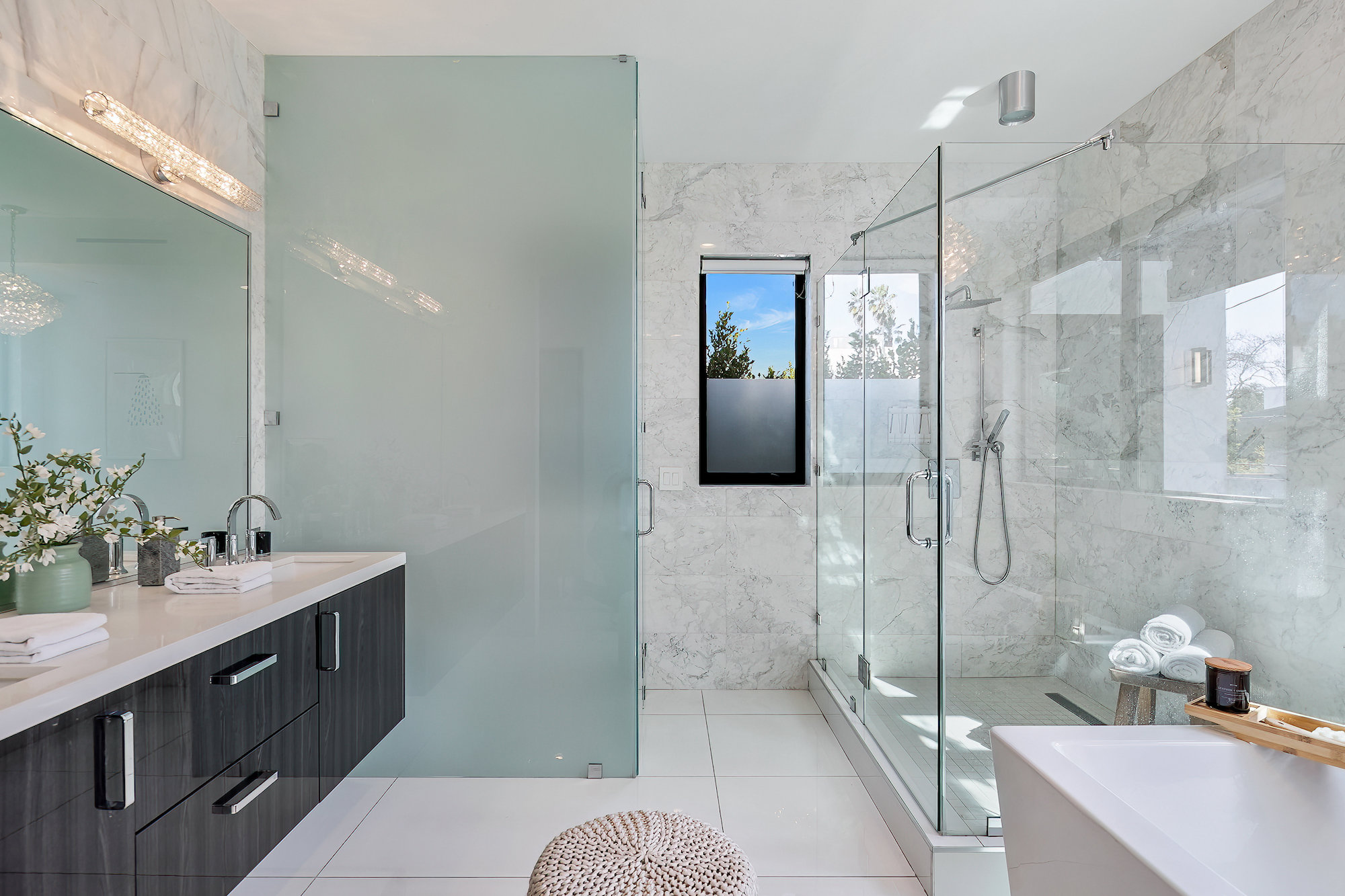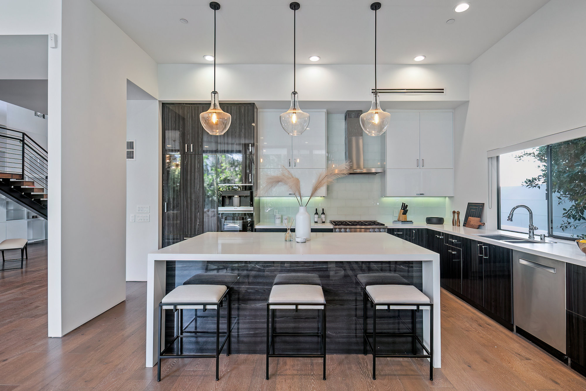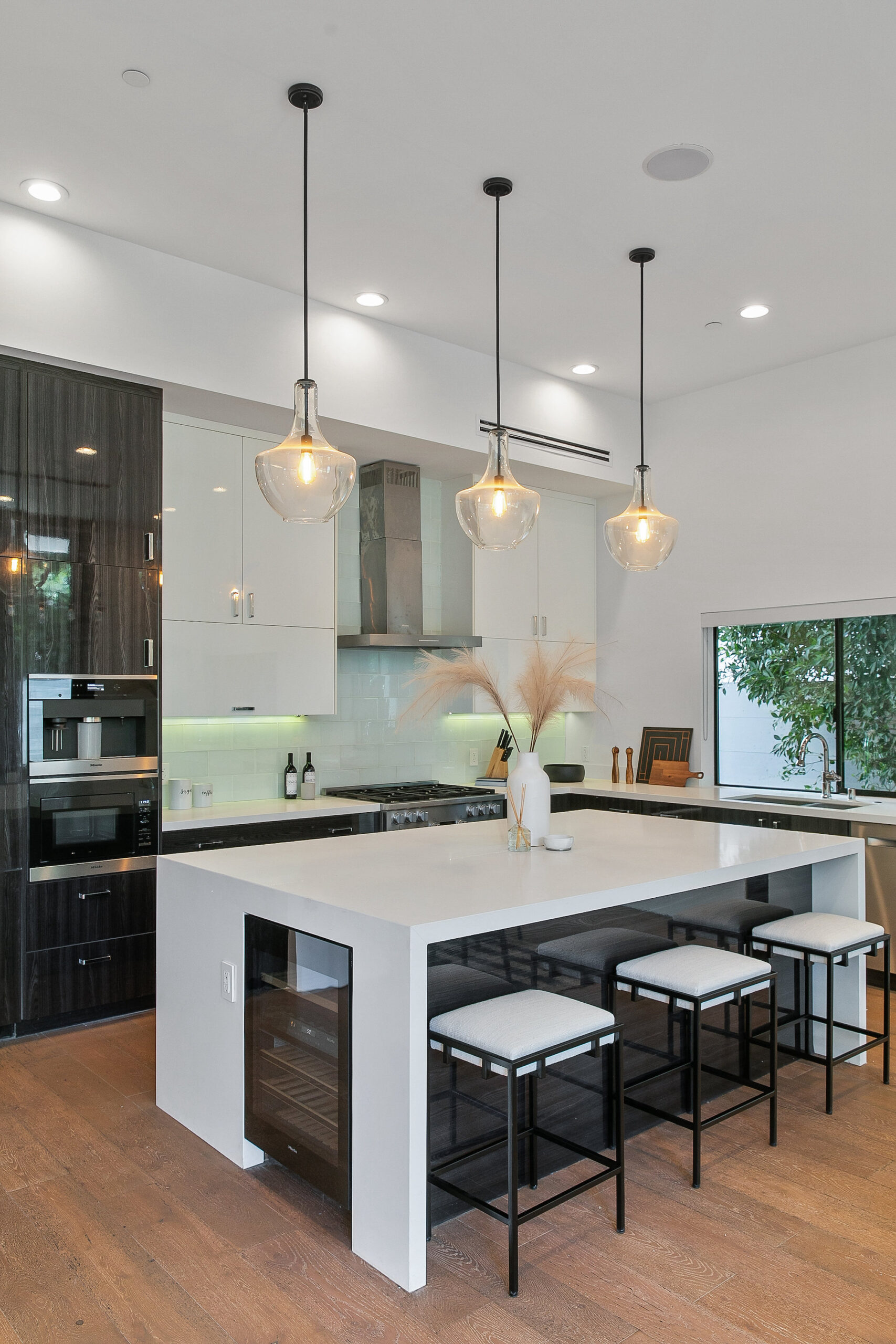 Centrally located Contemporary home, West Hollywood adjacent, a short distance to Beverly Hills, Sunset Strip, Melrose Shopping District and other iconic LA destinations, restaurants, day and night life. 4 bed, 4.5 baths with 12' to 20' foot ceilings, 12' sliding glass doors, and rooftop deck with views of the Hollywood Hills. Multiple skylights and walls of glass invite a flood of afternoon sun. Three en-suite beds on second level and one en-suite bed on main level. All beds on second level open to a connective rooftop deck. 80 sq ft pavilion makes for an ideal recording studio, yoga, fitness, meditation or office with city views. Expansive open floor plan and Chef's kitchen with Miele appliances. Great room opens to a heated pool and spa and enchanting backyard with lush landscaping and privacy. Ideal for entertaining and summer dinner parties. Gated and secure with parking for four. SONOS, Nests, and automatic shades throughout.