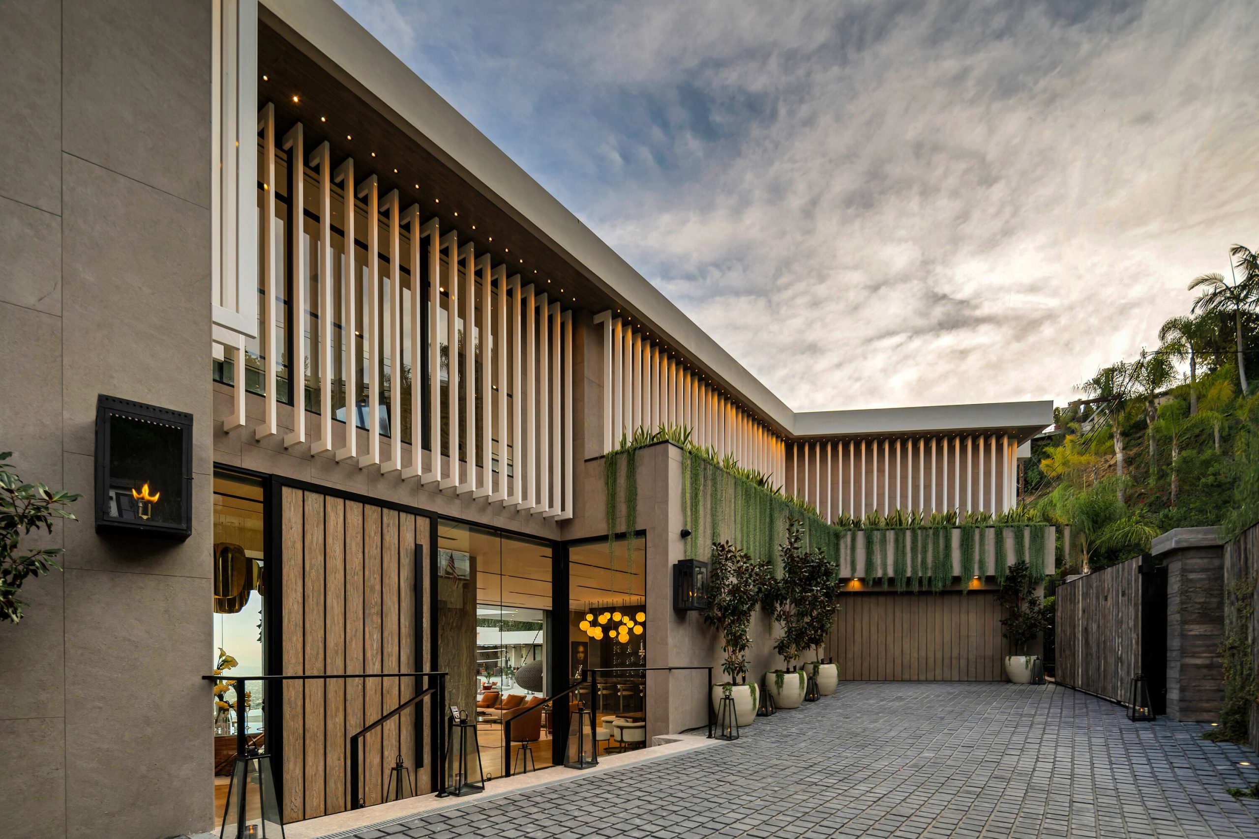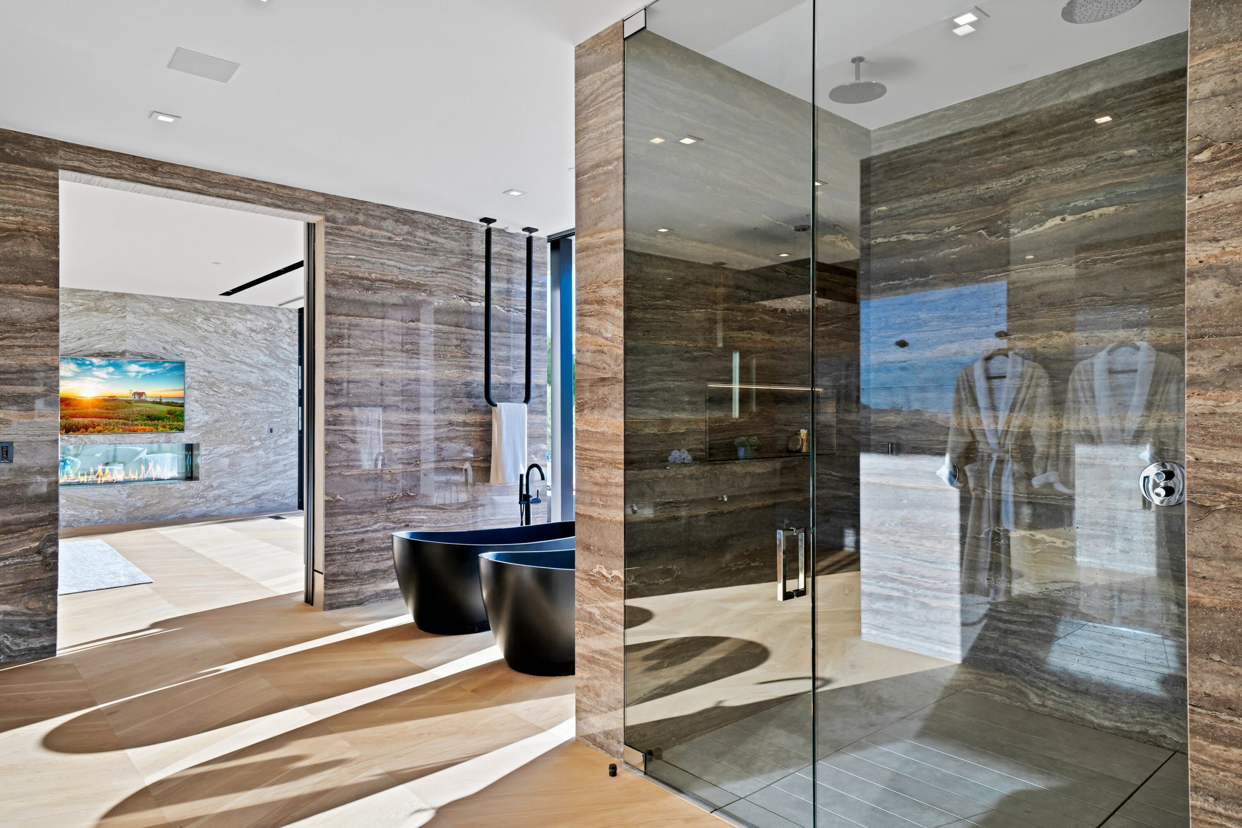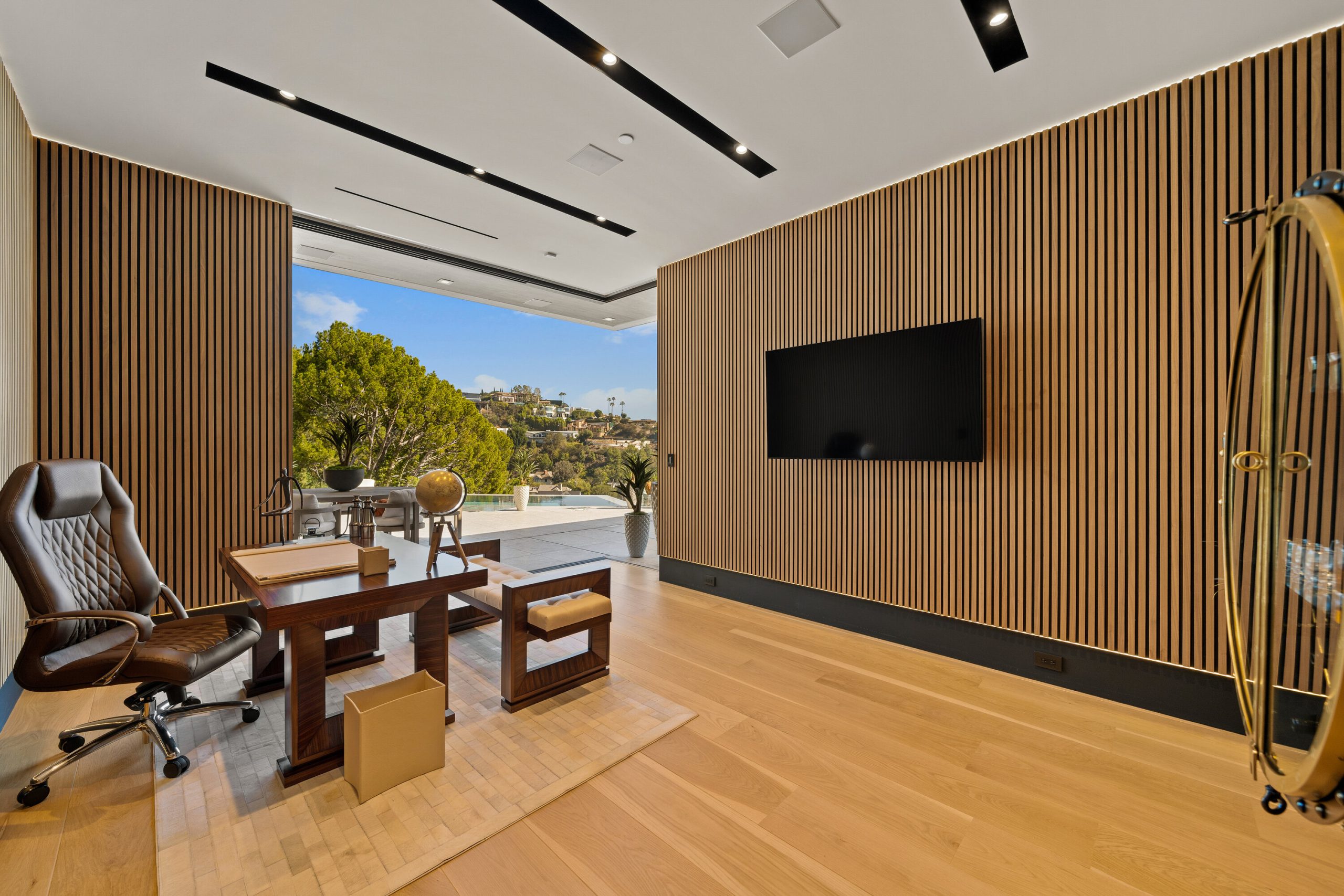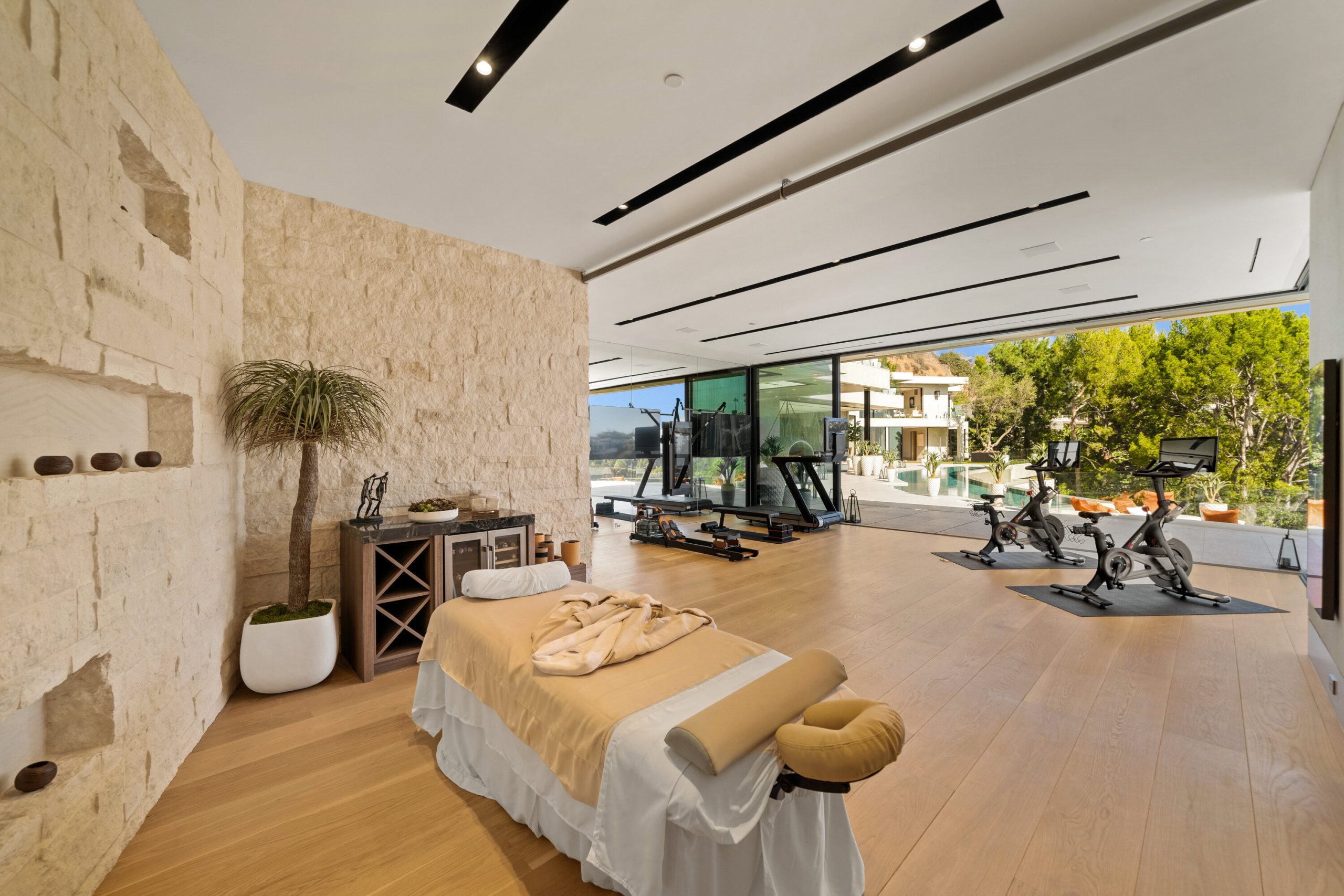 Seller accepts crypto! Conceived and executed with the modern mogul's ambition top of mind, this newly constructed palace offers sweeping, uninterrupted views of the canyon and Los Angeles skyline, spanning 500 feet of frontage in a coveted Bird Streets enclave. Enter beneath a bespoke chandelier and cascading fountains into a 13-foot living room anchored by layered stone fireplaces. The Arclinea kitchen opens to a European-inspired wine room illuminated by a sculptural pendant. Floor-to-ceiling glass panels dissolve the line between indoors and outdoors, revealing expansive terraces with an 18-foot sunken fire pit, a 100-foot infinity pool, a 30-person spa, and a sand volleyball court, each set against sweeping vistas. The primary suite serves as a private retreat, featuring a reading vestibule, a 1,500-square-foot balcony with Jacuzzi and fire features, dual dressing rooms, and a travertine-clad bath with twin soaking tubs and panoramic views. Tailored for both comfort and spectacle, the home also includes a command center-style office, a full screening room, a gym, hookah and meditation lounges, a panic room, a shoeshine station, and more. Designed with intent, the residence is as functional as it is striking. Revel in the pinnacle of modern elegance, all while being enveloped by some of Southern California's most breathtaking views.