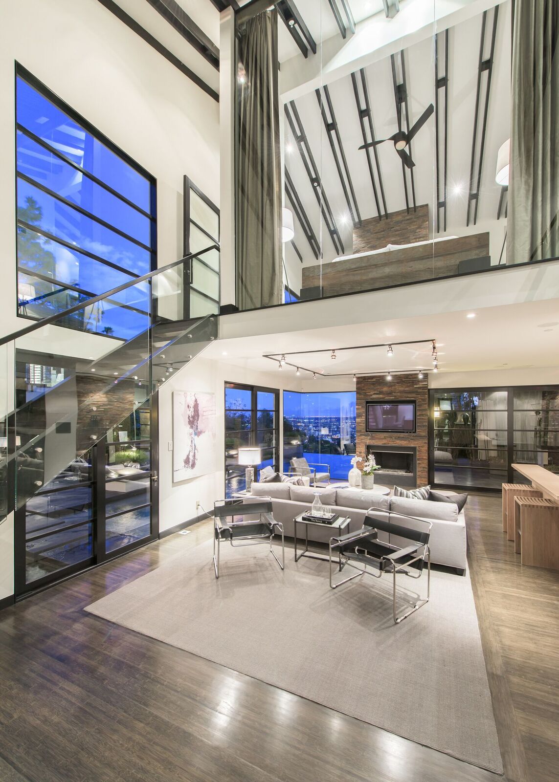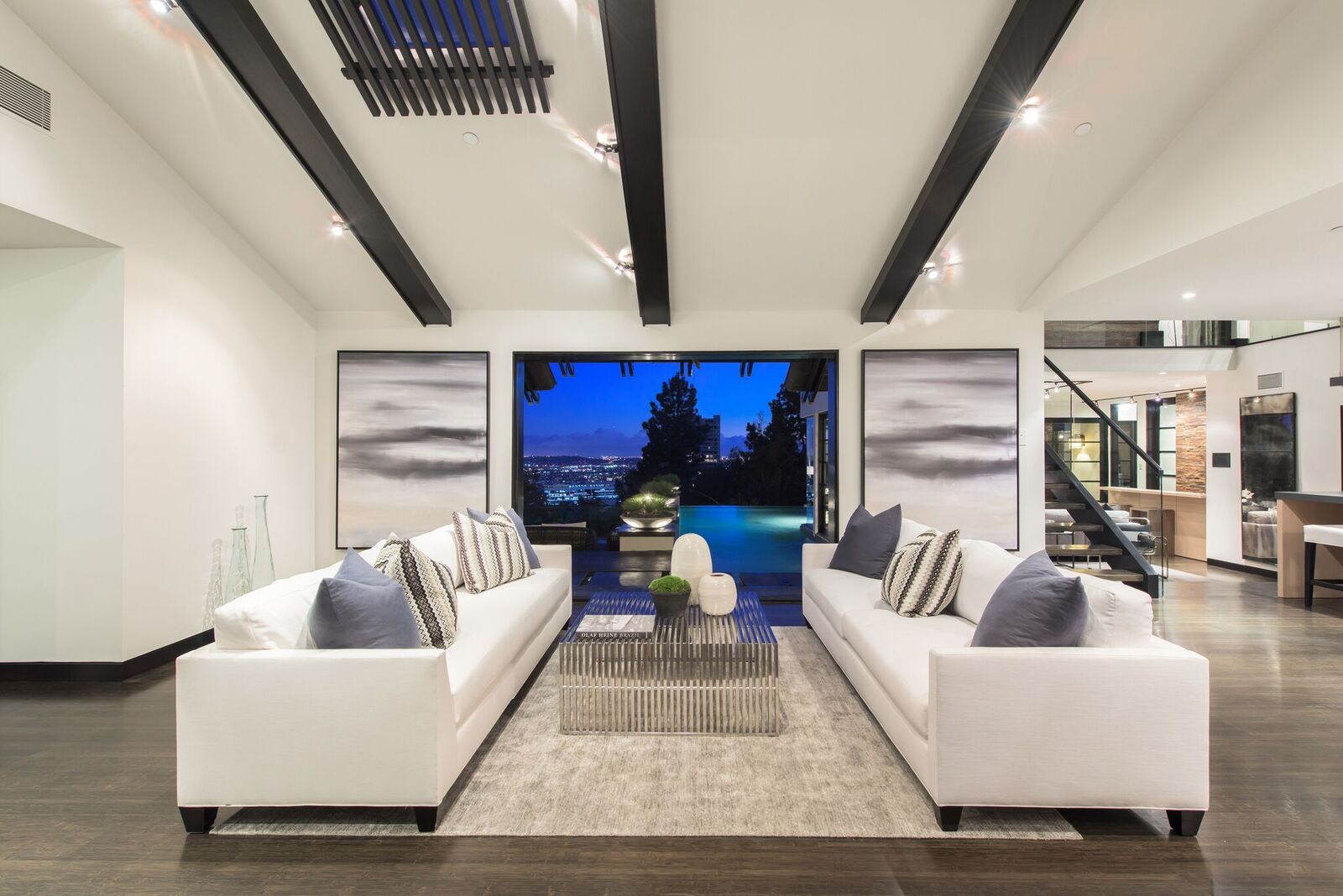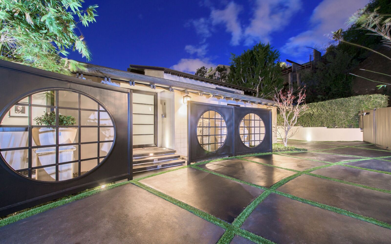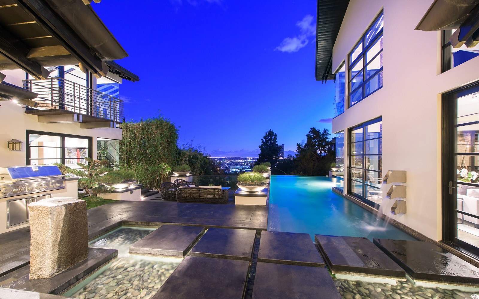 Zen-inspired Architectural Contemporary masterpiece located on one of the most prestigious and sought-after view streets above the Strip. Enter through a private and double-gated circular driveway with parking for 10 onto the ultimate entertainer's compound. Featuring incredible city views, a swimmer's infinity edge pool, designer perfect chef's kitchen with open bar seating, large state-of-the-art theater, spa with sauna/steam, and fire pits with built-in lounge seating. Smart electronics throughout including fingerprint security and high tech sound systems. Additional 2-story attached guesthouse with a separate secure entrance. This spectacularly sexy home with extraordinary warmth and flawless entertaining space epitomizes the indoor/outdoor flow of LA living at its finest.