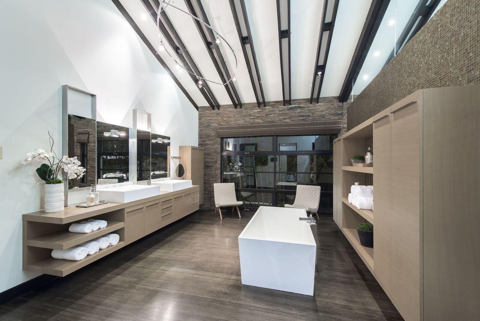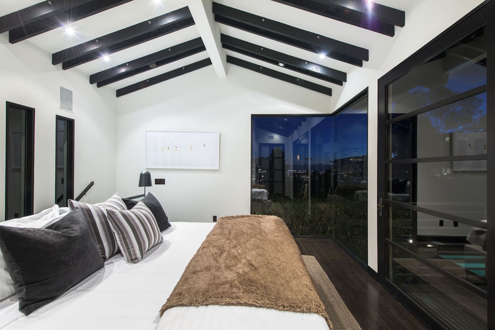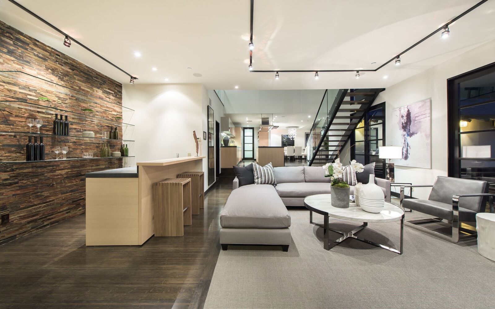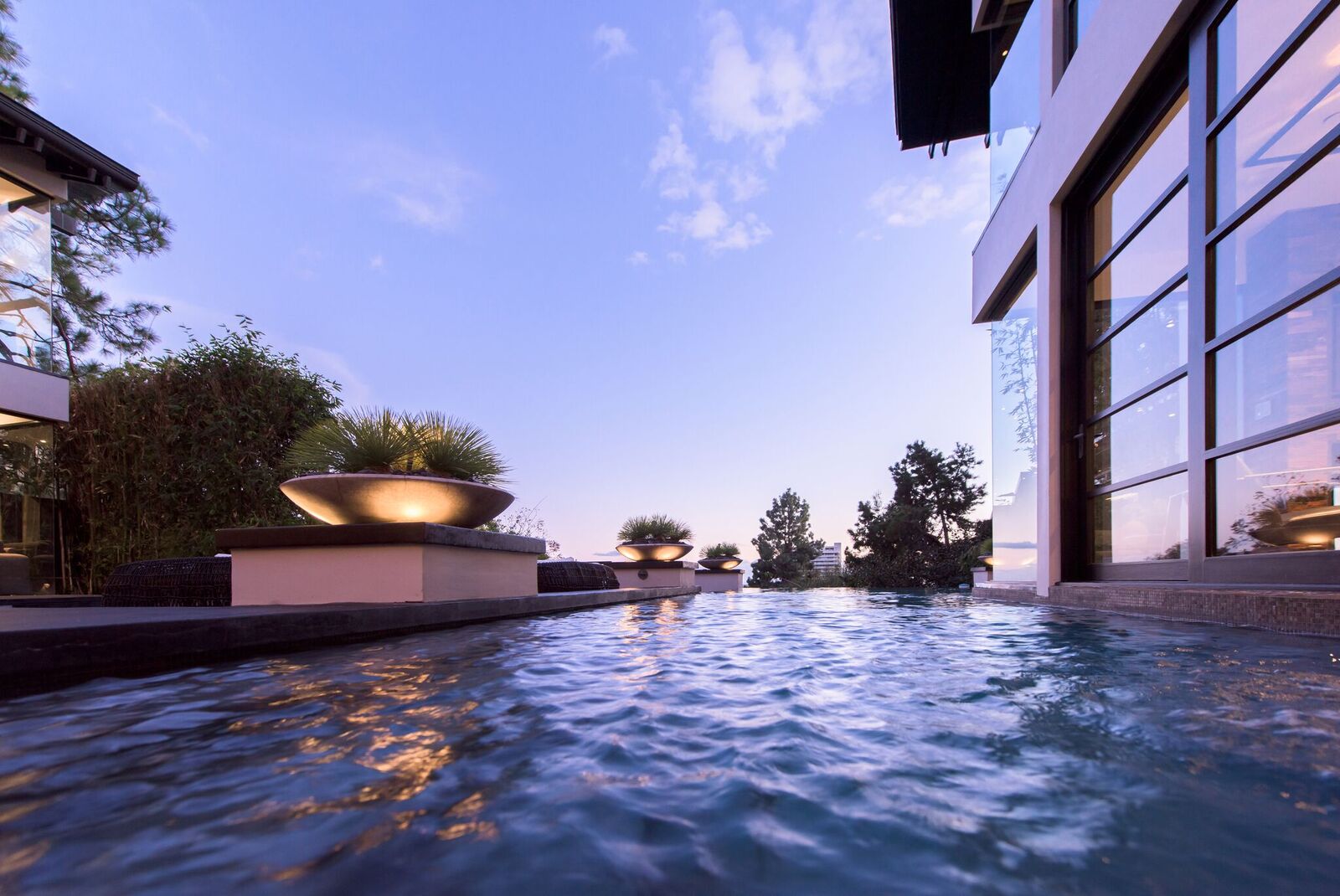 Zen-inspired Architectural Contemporary masterpiece located on one of the most prestigious and sought-after view streets above the Strip. Enter through a private and double-gated circular driveway with parking for 10 onto the ultimate entertainer's compound. Featuring incredible city views, a swimmer's infinity edge pool, designer perfect chef's kitchen with open bar seating, large state-of-the-art theater, spa with sauna/steam, and fire pits with built-in lounge seating. Smart electronics throughout including fingerprint security and high tech sound systems. Additional 2-story attached guesthouse with a separate secure entrance. This spectacularly sexy home with extraordinary warmth and flawless entertaining space epitomizes the indoor/outdoor flow of LA living at its finest.