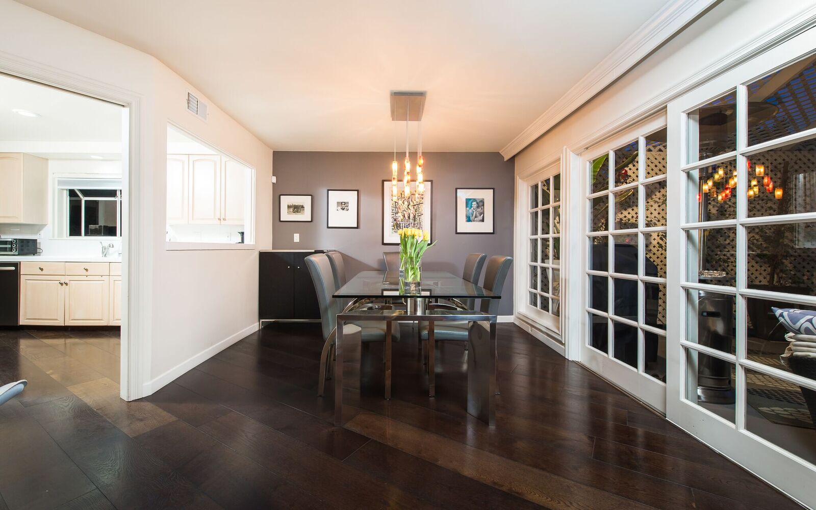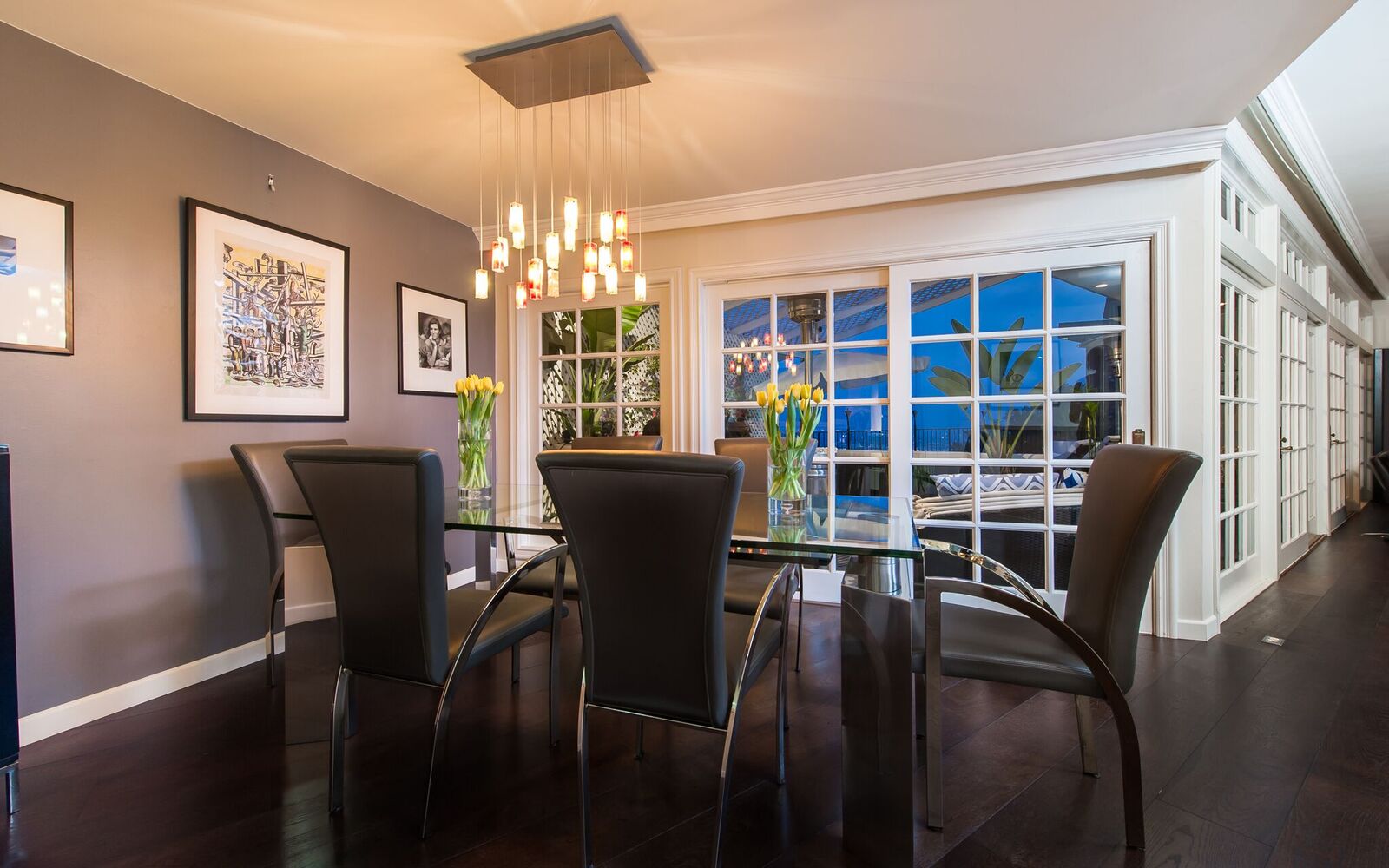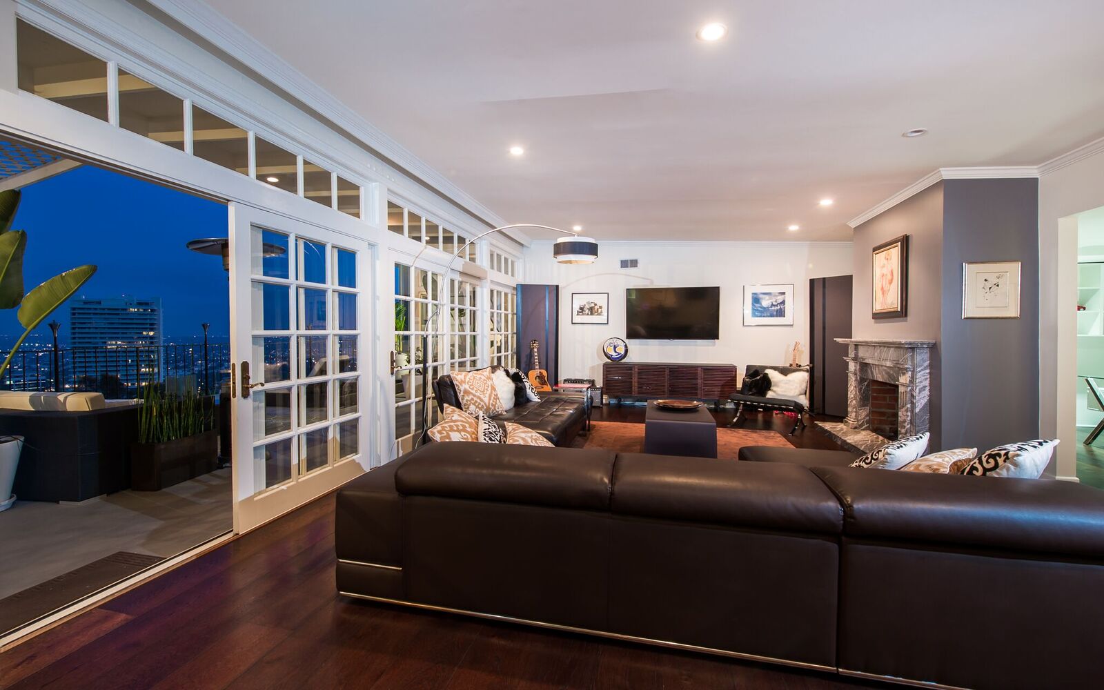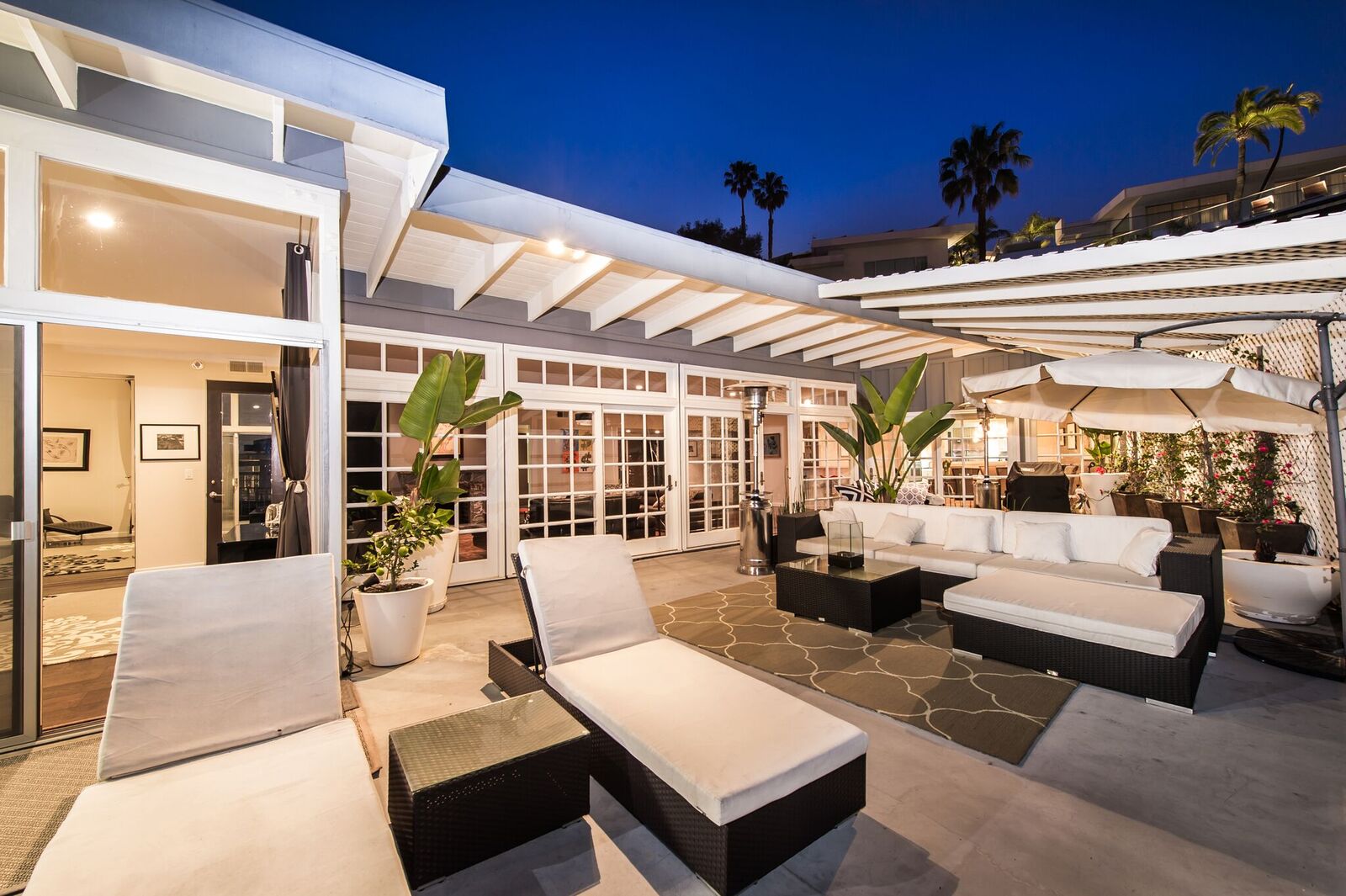 Contemporary Bird Streets bungalow with jetliner views from the city to the Pacific Ocean! This sophisticated and updated home features three bedrooms with two baths and high ceilings throughout. Designer finishes include exotic custom bamboo flooring that converges with gorgeous stone floors and marble entry and fireplace delivering a sophisticated yet inviting sense of style. French doors and floor-to-ceiling windows frame the gorgeous views from Downtown LA to the Pacific Ocean and open to an enormous entertaining terrace. The open floor plan designed with form and function in mind features updated kitchen open to the adjacent dining room. The spacious living room with wet bar opens to outdoor terrace finishing off entertaining areas.