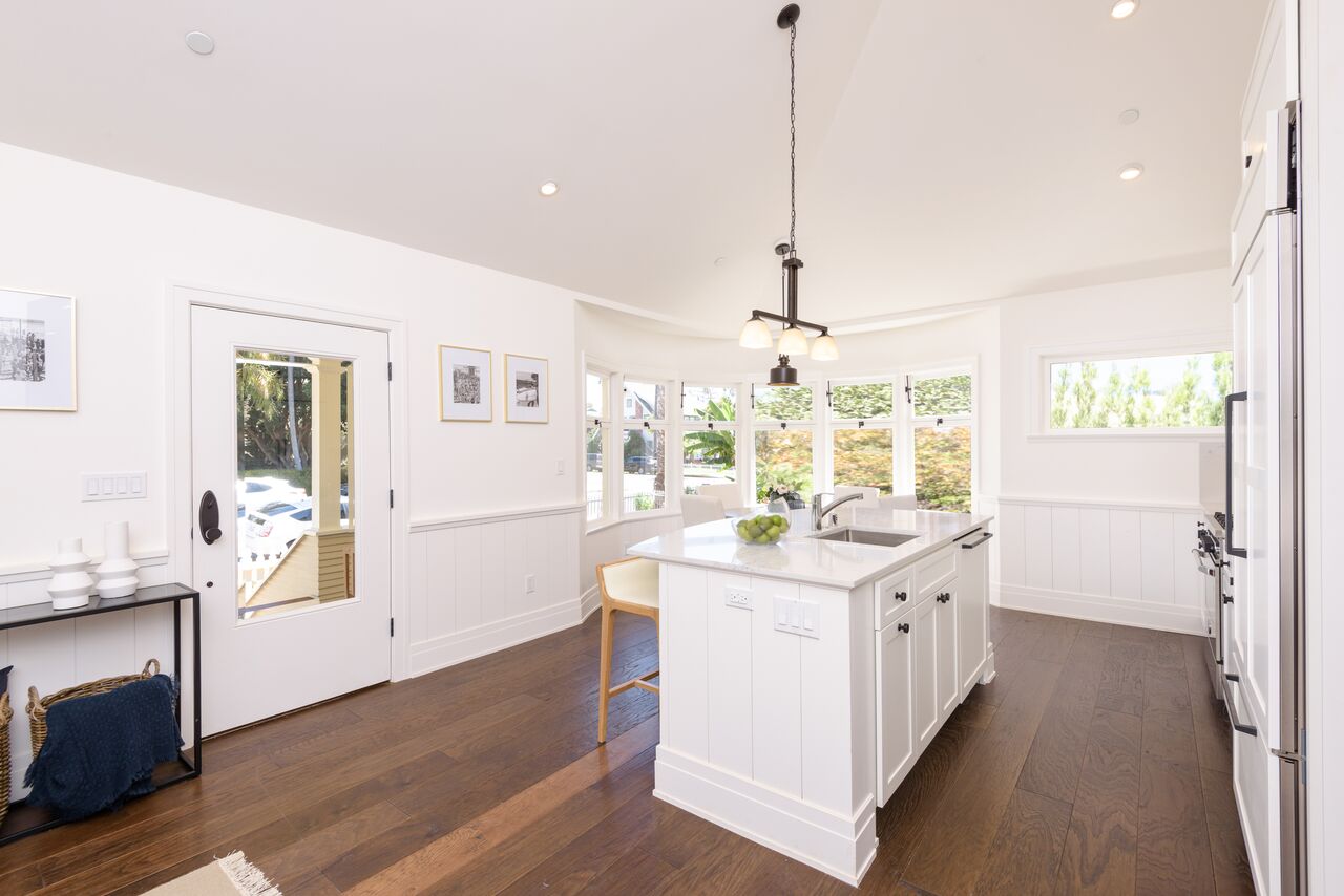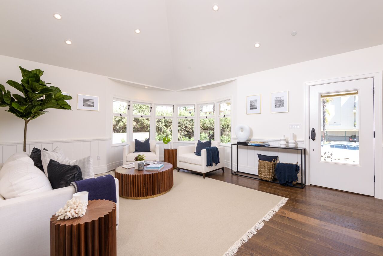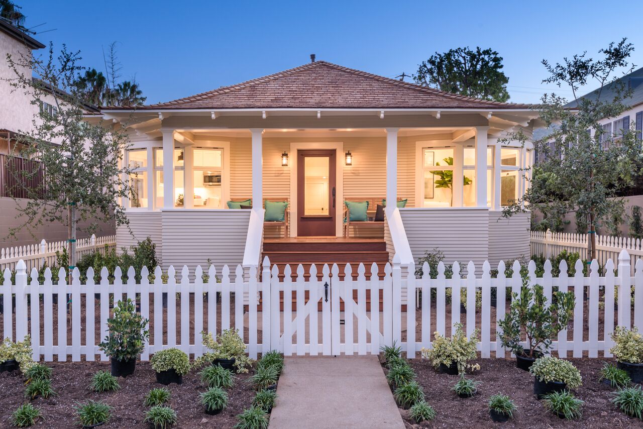 Indulge in sophisticated living with timeless appeal in this quintessential Santa Monica charmed 3 br +4 ba cottage with 2 car side-by-side parking with direct access into residence. Built in 1906 and fully restored as brand new construction in 2018, the Cottage preserves its charm with bay windows, exposed rafter tails but now includes modern flare with elevated hipped-roof, vaulted ceilings, wide plank walnut floors, wainscoting and custom cabinetry. The historic masterpiece offers a storybook setting with white picket fence front yard, large covered patio leading into the bright and airy open floor plan. Kitchen features custom cabinets with Carrara marble counters, chef's appliances: Bertizoni, Sub Zero, Kitchenaid. Bathrooms finished with Cararra marble, large format tiles, custom wall-hung cabinets, and frameless glass enclosures. The historical cottage qualifies for the Mills Act. FOUR on FIFTH offers 4 residences, see 956 5th Street listing.
