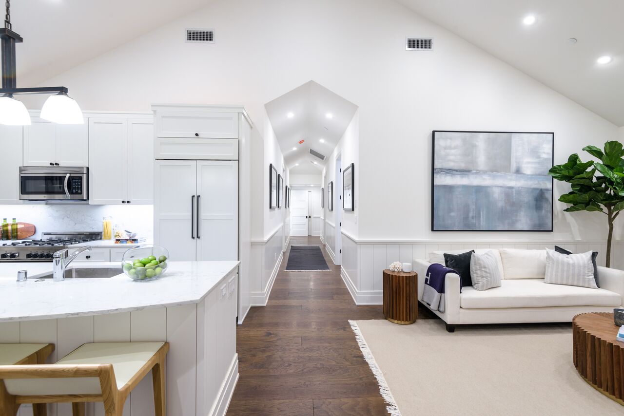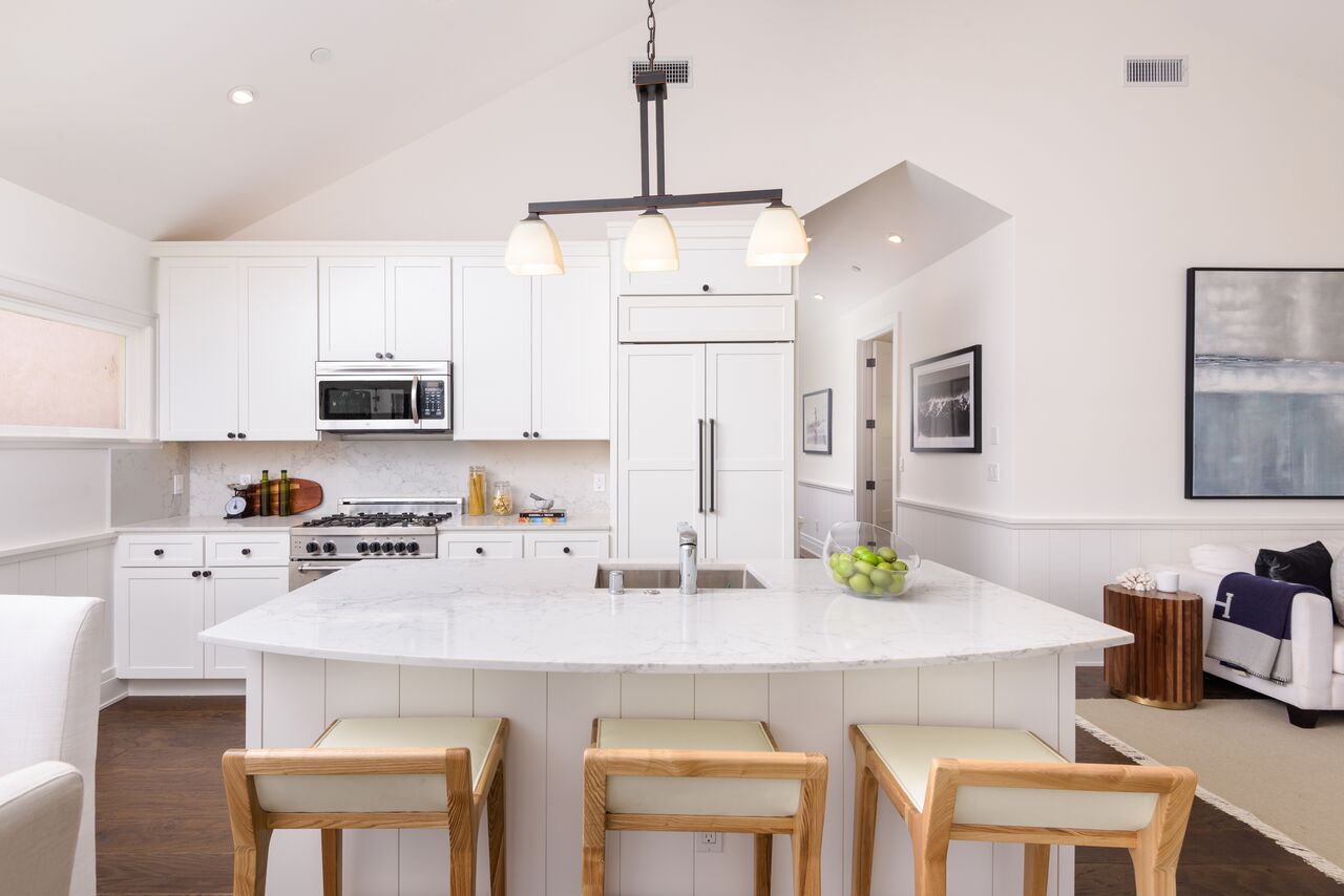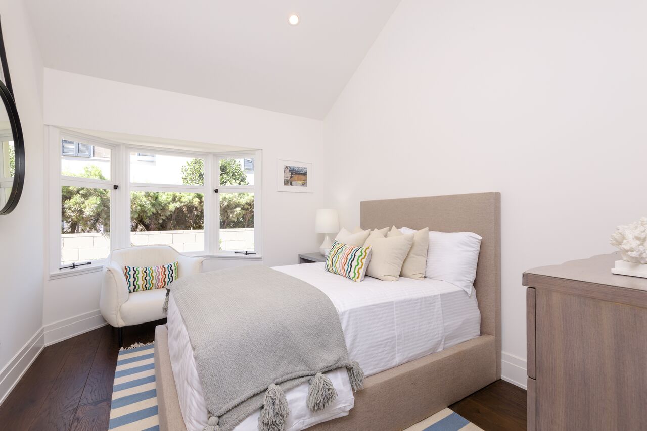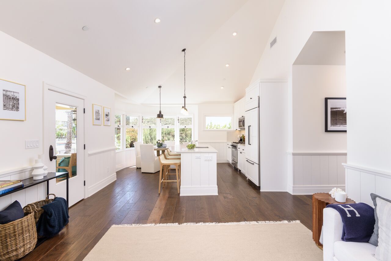 Indulge in sophisticated living with timeless appeal in this quintessential Santa Monica charmed 3 br +4 ba cottage with 2 car side-by-side parking with direct access into residence. Built in 1906 and fully restored as brand new construction in 2018, the Cottage preserves its charm with bay windows, exposed rafter tails but now includes modern flare with elevated hipped-roof, vaulted ceilings, wide plank walnut floors, wainscoting and custom cabinetry. The historic masterpiece offers a storybook setting with white picket fence front yard, large covered patio leading into the bright and airy open floor plan. Kitchen features custom cabinets with Carrara marble counters, chef's appliances: Bertizoni, Sub Zero, Kitchenaid. Bathrooms finished with Cararra marble, large format tiles, custom wall-hung cabinets, and frameless glass enclosures. The historical cottage qualifies for the Mills Act. FOUR on FIFTH offers 4 residences, see 956 5th Street listing.