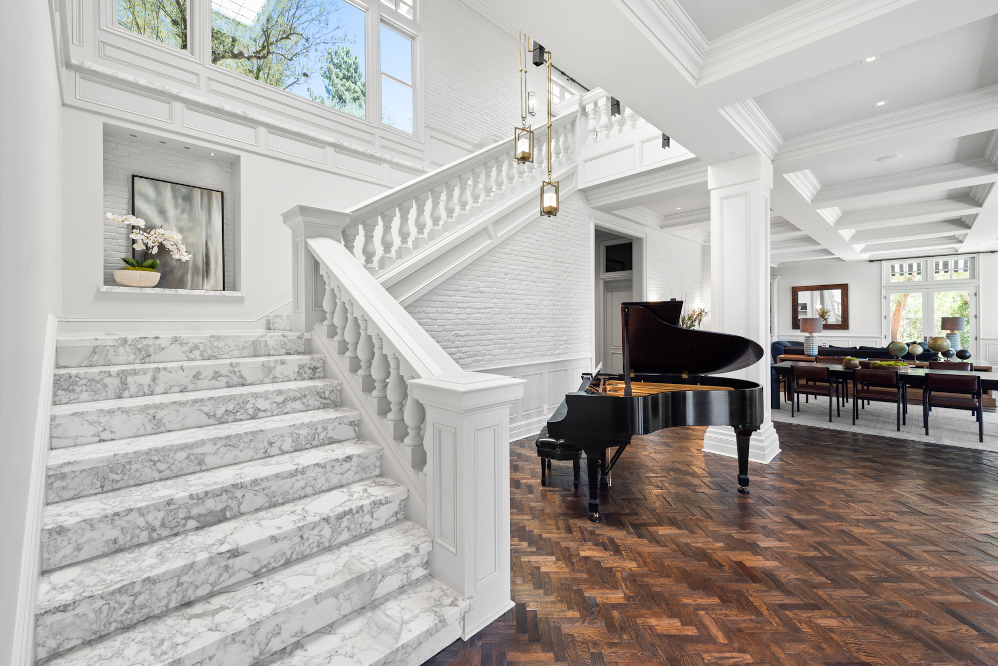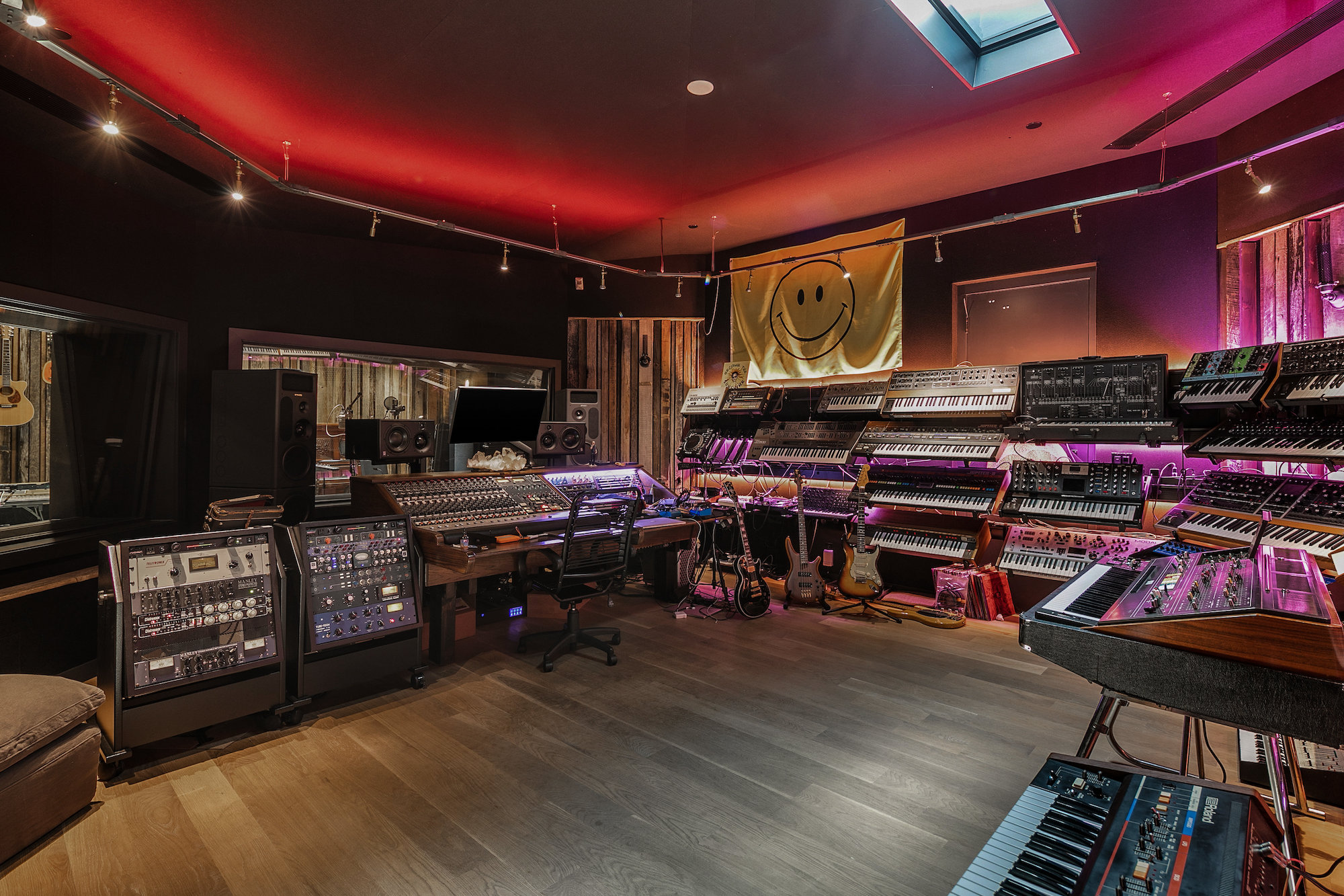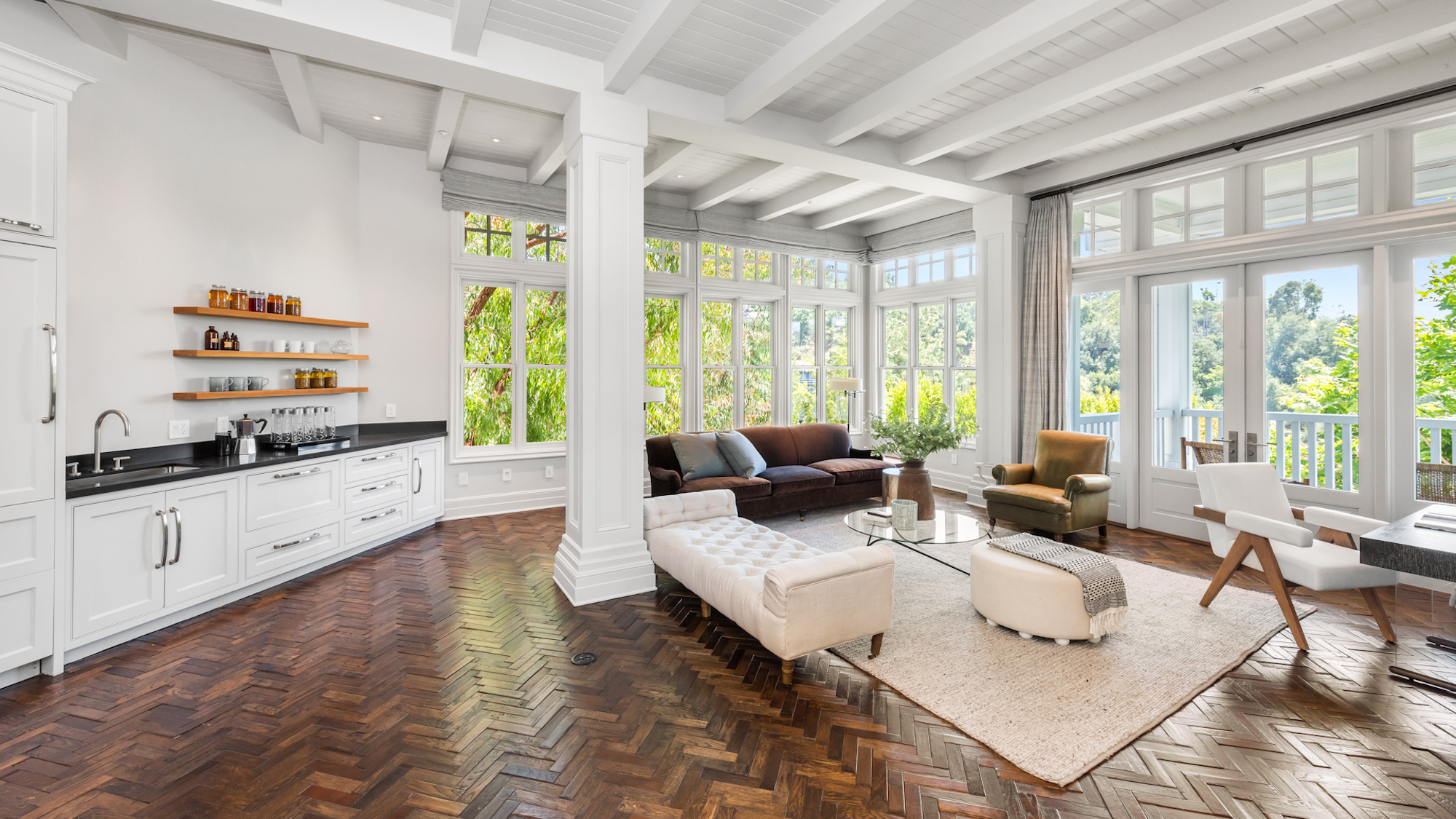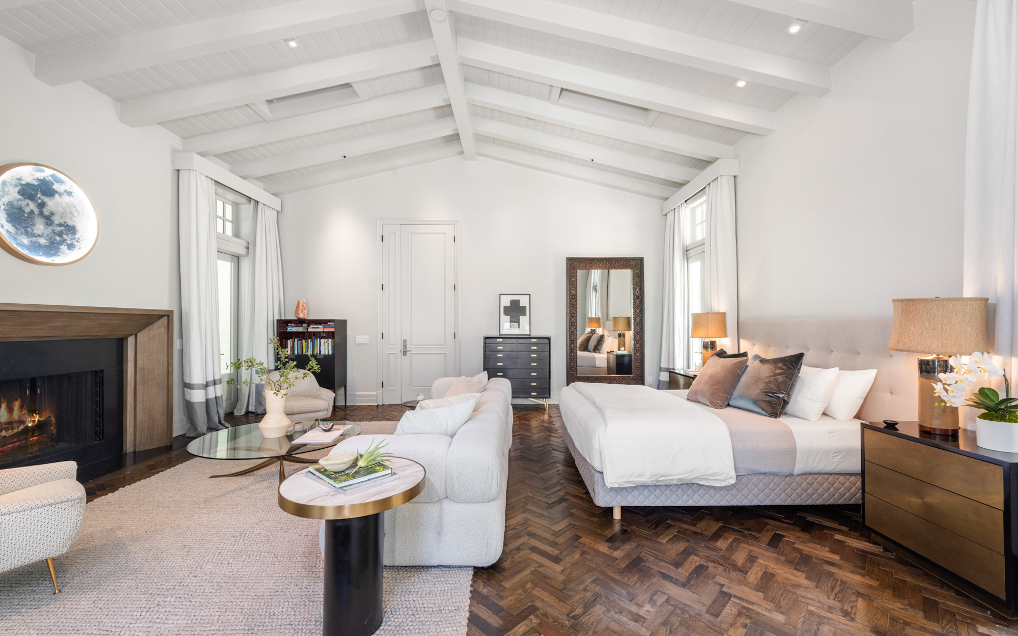 Set behind a beautiful private gate in one of the most sought-after, secluded streets in Beverly Hills sits this iconic compound that is nothing short of a masterpiece. Situated on 2.7 acres and showcasing incomparable grandeur, the gate opens to reveal an elongated driveway lined by tall, abundant greenery, providing the utmost privacy. Showcasing breathtaking mountain views in its entirety, the compound consists of 5 incredible structures, including a main residence, a two-story guest home that is currently used as two separate full recording studios, a five-car garage with elevator access to state of the art movie theater, a security office guest unit and the most incredible home gym and basketball court you will find in a single family residence. The cohesive structures are melded with premier craftsmanship and executed with the finest materials. The main residence features voluminous living spaces with soaring coffered ceilings, herringbone hardwood, a striking stone staircase, and floor to ceiling windows that provide an influx of natural light. The gourmet chef's kitchen includes two oversized islands, top-of-the-line appliances, and a one-of-a-kind wine cellar. Exuding luxury, the primary suite has vaulted beamed ceilings, a fireplace, extravagant dual baths with walk-in closets, and direct access to the backyard. Hosting a custom pergola with BBQ, large pool, spa, and lounge with fire pit, the backyard is an entertainer's dream. Nothing less than perfection, this compound is complete with 4 en-suite bedrooms, 10 bedrooms and 12 bathrooms in total, a full bar, exposed brick, skylights, multiple gardens, and a solar dome. 9779 Oak Pass Rd is truly in a league of its own.