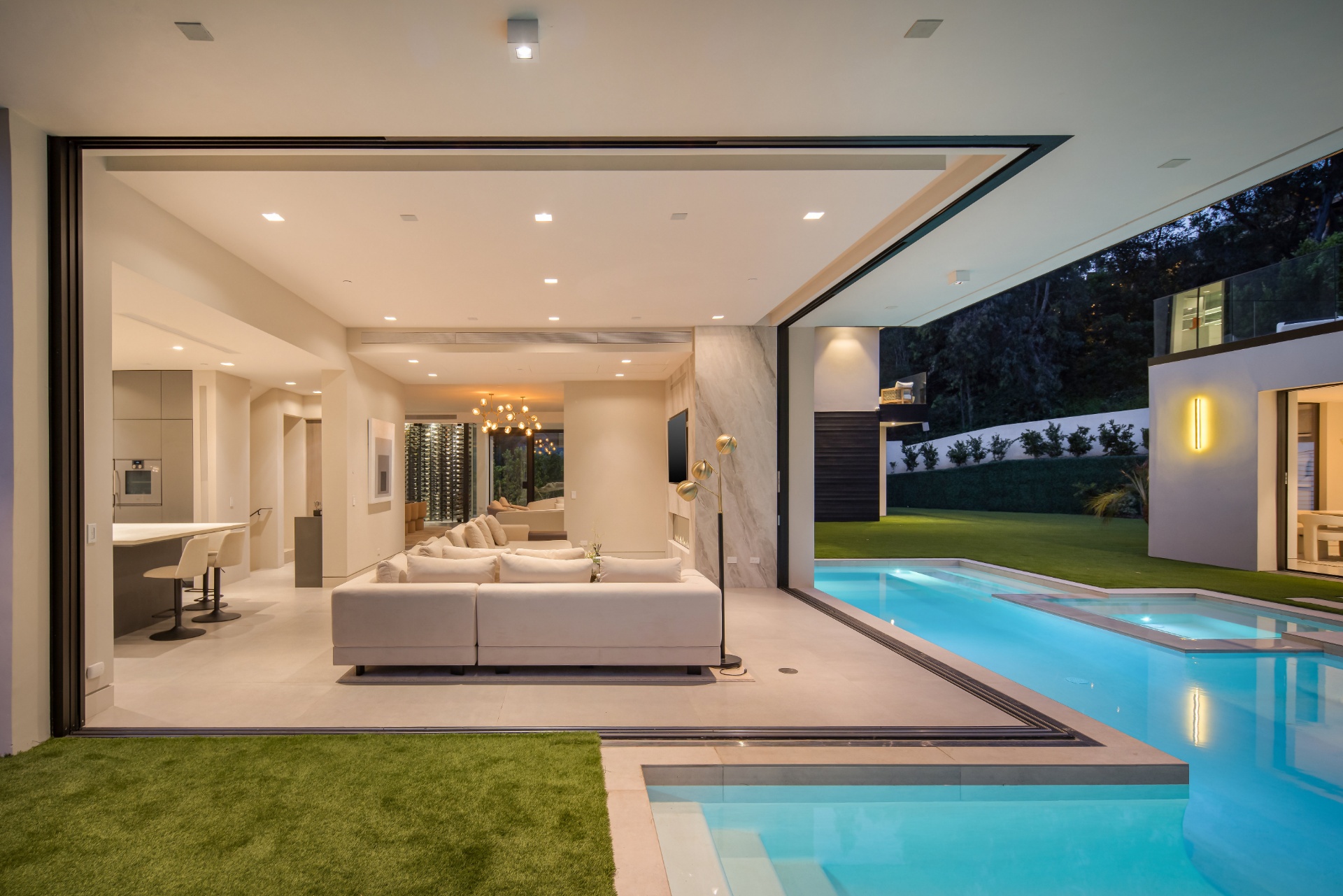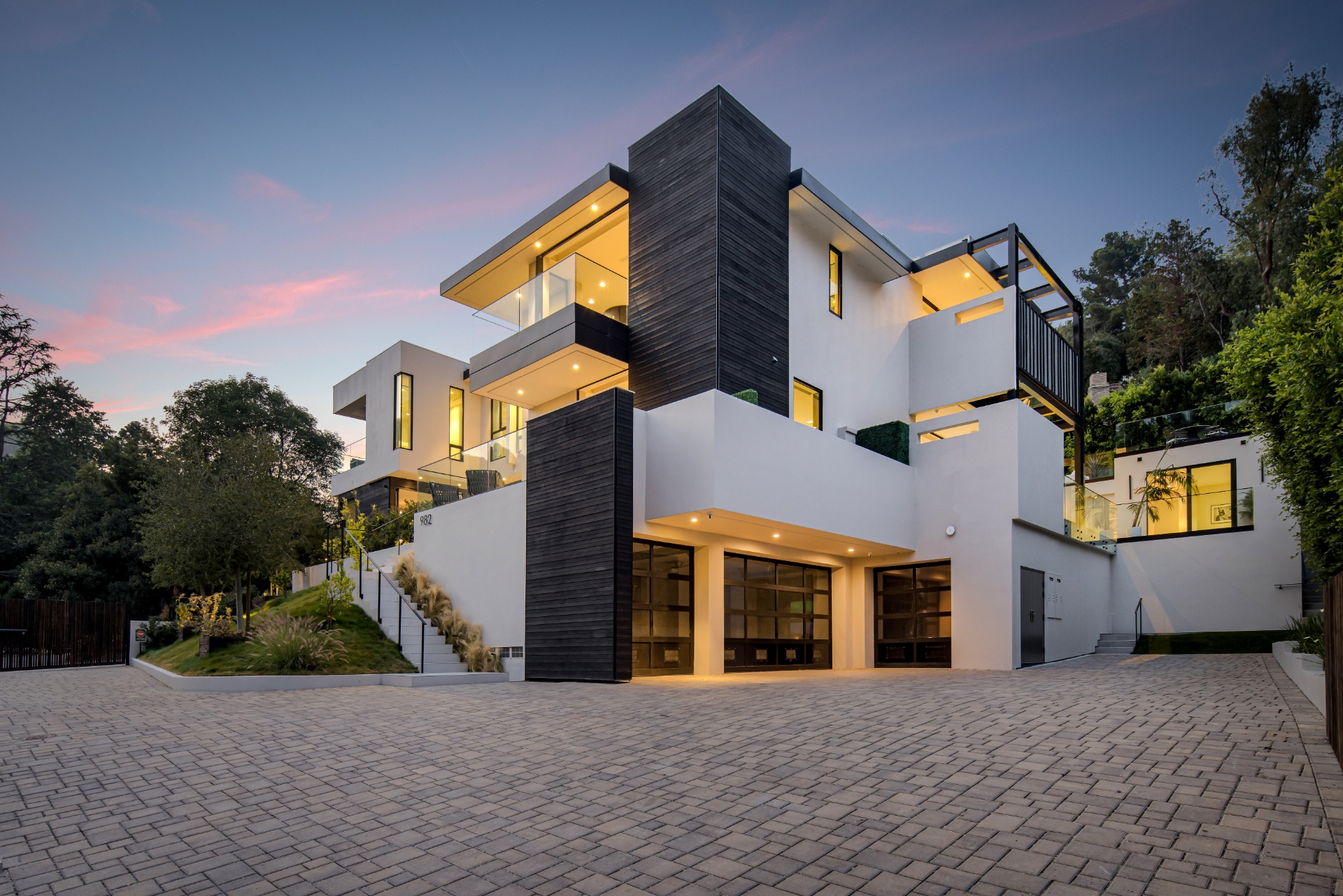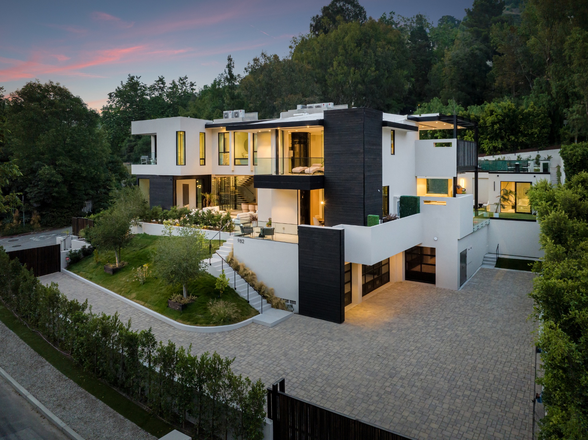 string(2074) "Welcome to 982 Stone Canyon Road, a distinguished modern masterpiece ideally located within moments of the world-renowned Hotel Bel Air. Nestled on a large corner lot, this estate boasts stunning canyon views and offers complete privacy within its fully gated grounds, complemented by parking for 14 cars. The grand glass entry welcomes you to an entertainer's dream. The open floor plan is flooded with natural light and offers a seamless transition to the outdoor living spaces, which include a pool, spa, large lawn, and multiple seating areas. The main level features a grand open floor plan with an indoor/outdoor living and dining room. Adjacent, you'll find a tranquil office that opens up to allow you to enjoy the canyon. Additionally, there is a stunning minimalist kitchen where an oversized island takes center stage, offering a sleek, modern design with top-of-the-line Gaggenau appliances. Upstairs is a haven for relaxation with four bedrooms that offer ample sunlight and picturesque canyon views throughout the day. The spacious primary suite is a sanctuary unto itself, boasting a generously-sized private balcony, marble fireplace, and two oversized walk-in closets designed to accommodate even the most extensive wardrobes. The primary suite is complete with a spa-like bathroom that offers a steam shower, sauna, and canyon views. Three additional bedrooms, all en suite, are also located upstairs. Additionally, the main level has another bedroom which can function as a home gym. As you make your way to the ground level, you will find a very spacious bonus room that can serve as a live-in maid's quarters or a movie theater. The detached guest home features a kitchen, living room, a spacious bedroom, and a rooftop deck, providing flexibility and accommodations for guests or extended family. Additional features of the property include a three-level elevator, all motorized pocket sliding doors, and a Lutron lighting control system. Don't miss the opportunity to experience resort-style living in the heart of Bel Air! Designed by Melanie Marlo. "