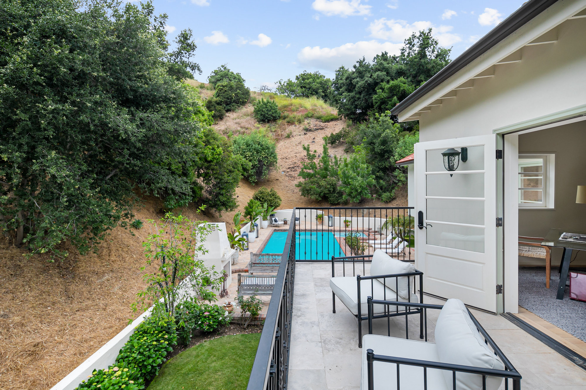Designer done "Santa Barbara Spanish" home located on the most desirable quiet cul-de-sac in Deep Canyon. Spanning nearly 5,000 SQFT of refined design with a stunning palette, this 5 bed 8 bath is light and bright. The entry leads to a dramatic living room complete with 20' soaring ceilings and doors and windows that connect to a beautiful covered loggia.Perfect floorplan spanning from dining room, family room, bar, or kitchen complete with a Subzero, Miele, and La Cornue oven. The kitchen opens up to a stunningly landscaped garden and pool area. New doors, windows, and a roof stand high above the solid oak wood floors. Upstairs you'll find 4 bedroom suites including two lavish primary bedrooms one of which is on a separate wing that overlook the grounds and plush surroundings. There is a maid's suite down the hall and a conveniently attached 2 story Guest House with full amenities and a separate entry. A completely private setting on a 35,371 square foot lot of lush grounds, the home boasts a Crestron smart home system, Benedict Hills 24/7 ADT security patrol, and a Puronics whole house water filtration system. The backyard is an entertainer's dream, and even has the possibility of creating a waterfall and additional sitting area. Don't miss this opportunity to live in the privacy of this serene retreat.Within the Warner Elementary School district, the home is a five to ten-minute commute from the following prestigious private schools: Stephen S. Wise, Milken, Curtis, Berkeley Hall, Mirman, Westland, Bel Air Preschool, Buckley, Harvard-Westlake, Roscomare Elementary, and Notre Dame. Located just minutes away from the Beverly Hills Hotel and extremely close to the Glen Centre's shopping, restaurants, and market, this property is ideally situated.