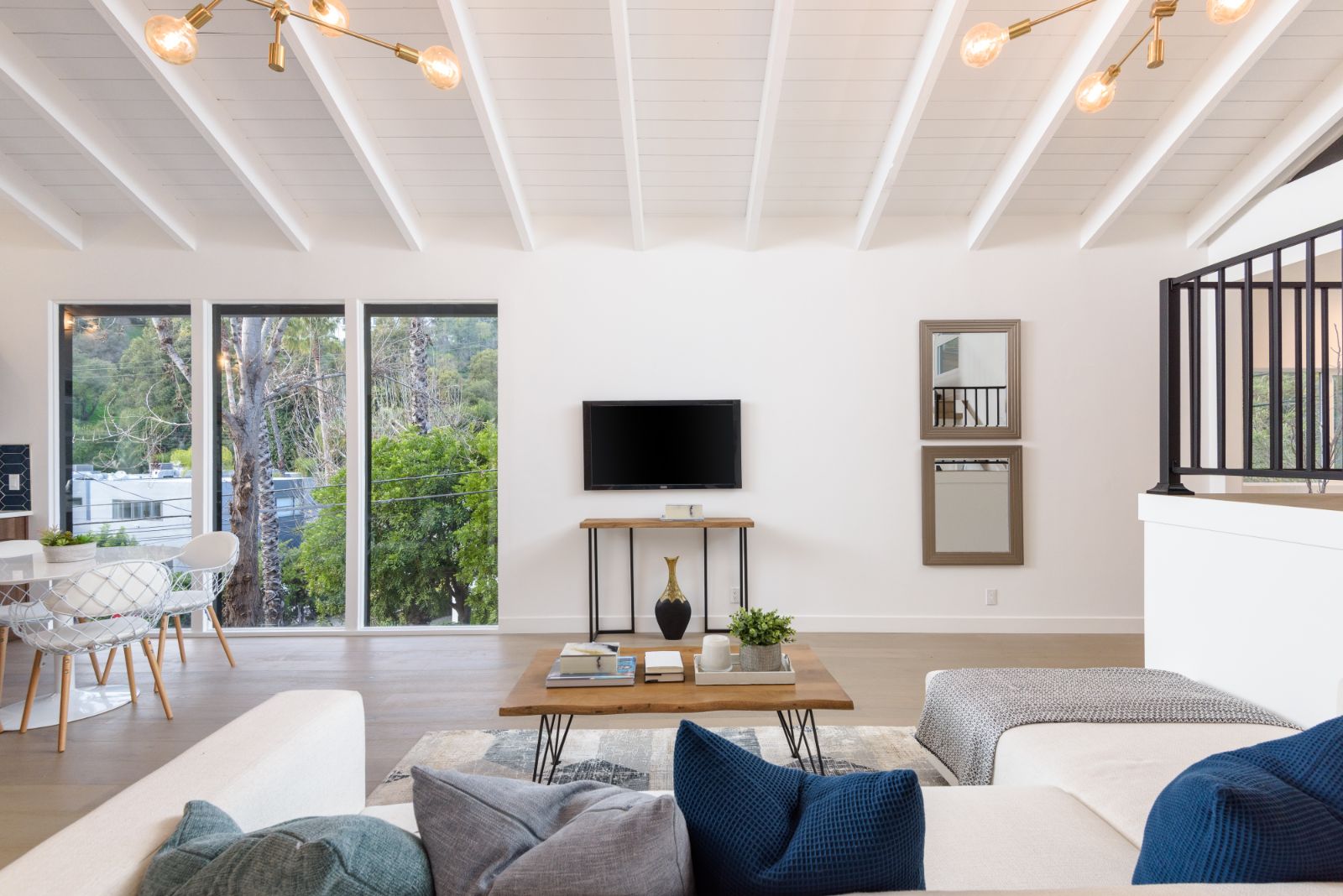 FULLY REMODELED, TURNKEY, and CENTRALLY LOCATED Beverly Hills starter home / condo alternative. Own your own piece of Beverly Hills real estate with this freshly redone 2 bed 2 bath hideaway, tucked just off of Benedict Canyon. The first floor open floor plan features a spacious family room/den that blends seamlessly into the light and bright dining area and kitchen. Hardwood floors and doors, stainless steel appliances, brass faucets and door hardware throughout the home highlight some of the many well thought out finishes.The second floor features two bedrooms and spacious bath with the master suite leading out to your own personal and private deck with canyon views. The serene and quaint yard is perfect for evening gatherings , outdoor dining and entertaining year round. Ideal for first time homebuyers and / or investors.