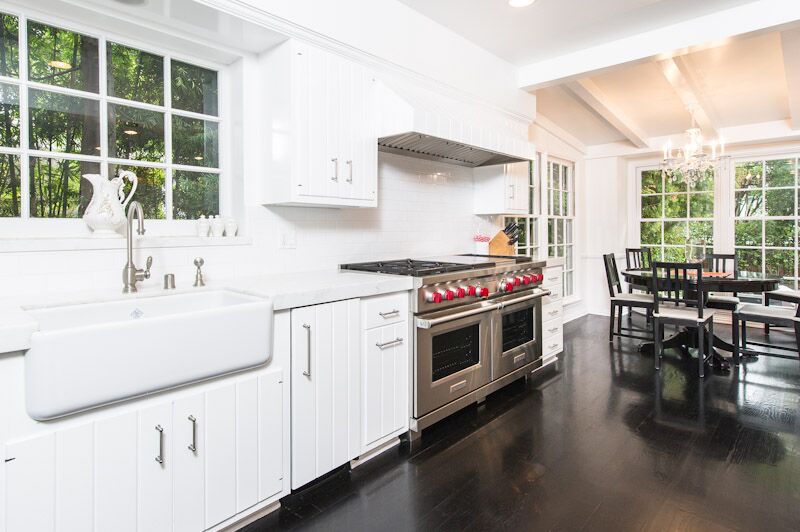 This lovely restored two-story New England style home stands proud and inviting on a prestigious, quiet street. Extensively renovated by celebrity designer Jeff Lewis, who used only the finest finishes: dark hardwood floors, crisp white trim, stainless steel appliances and Carrera marble. This home exudes character and charm with an inviting and open indoor/outdoor floor plan, chef's kitchen, romantic master bedroom and gorgeous grounds. Ample space for children and guests with 5 bedrooms, nursery plus maids. Expansive lawns for parties, play, and room for a pool.