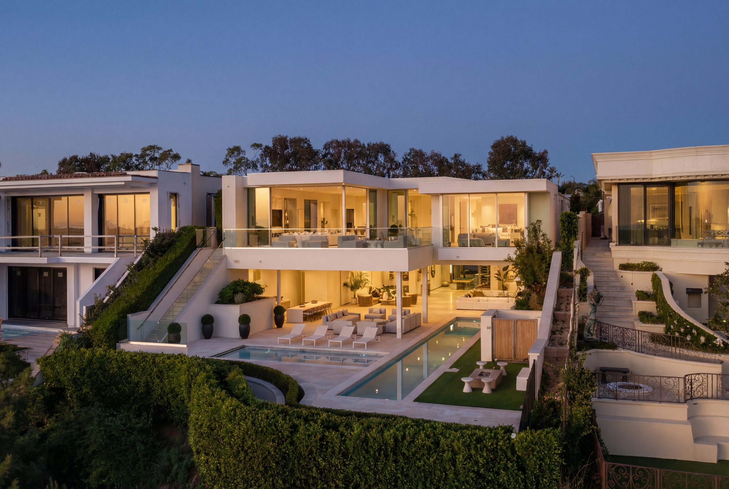 Perched on an exceptionally large lot in the coveted Irvine Terrace enclave of Corona del Mar, 1119 Dolphin Terrace is a striking contemporary estate capturing sweeping views of the ocean, jetty, Balboa Island, and coastline beyond. Completed after a meticulous six-year build, the approximately 10,311-square-foot residence offers 6 bedrooms, including two luxurious primary suites, and 8 baths, all defined by dramatic scale, soaring ceilings, and walls of glass that frame the coastal setting. Designed for elevated entertaining, the home features expansive living areas anchored by a 219-inch media wall, a statement bar, glass wine display, and dual chef-caliber kitchens. Motorized pocket doors create seamless indoor-outdoor flow to a spectacular 65-foot lap pool and resort-inspired grounds overlooking the Pacific. A private wellness retreat with full fitness studio, sauna, steam room, and meditation space delivers a spa-caliber experience at home. Moments from Newport Beach Country Club, Fashion Island, and Balboa Island, this architectural showpiece represents a rare opportunity to own a true legacy property in one of Southern California s most prestigious communities. Square footage includes the 835-square-foot garage.