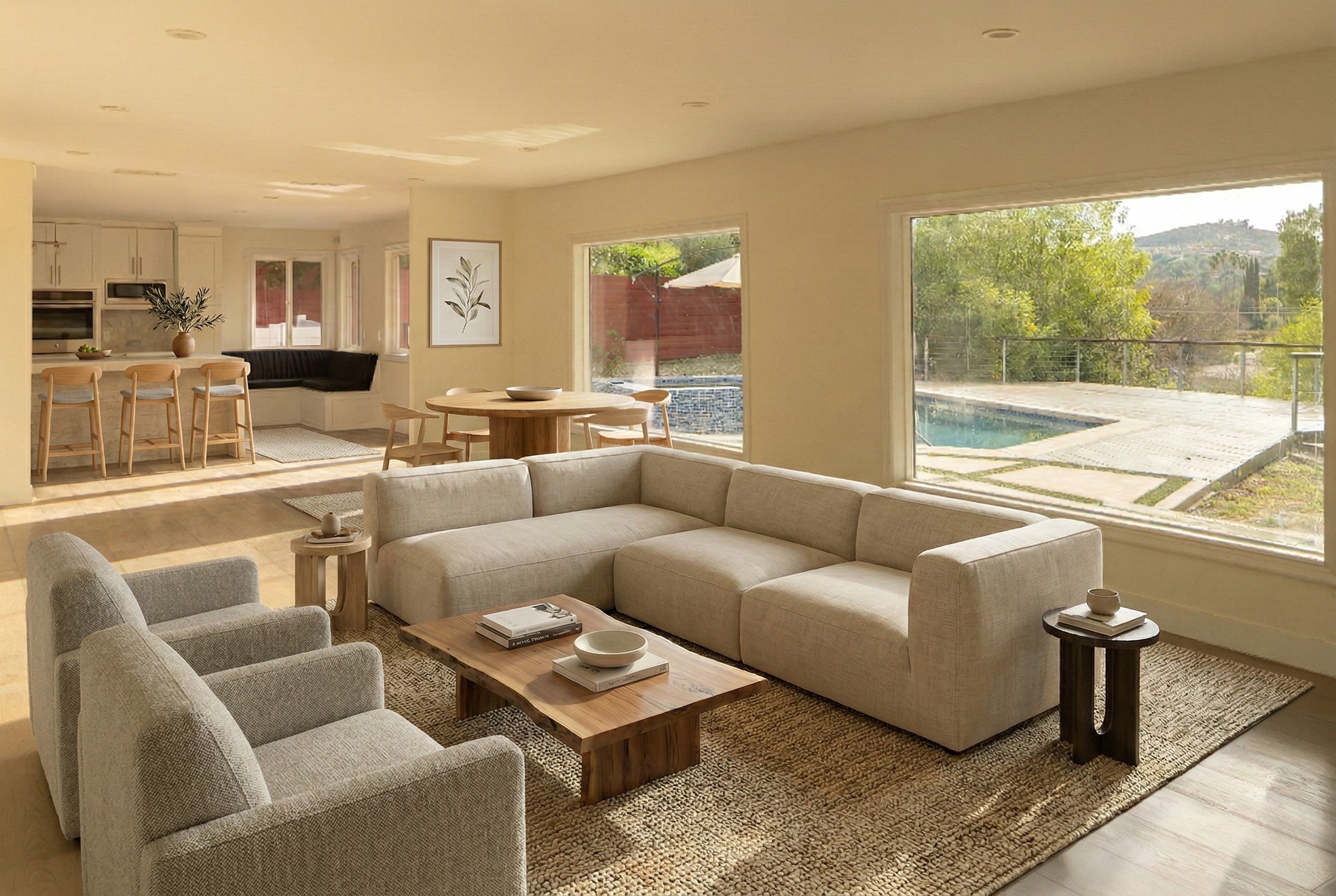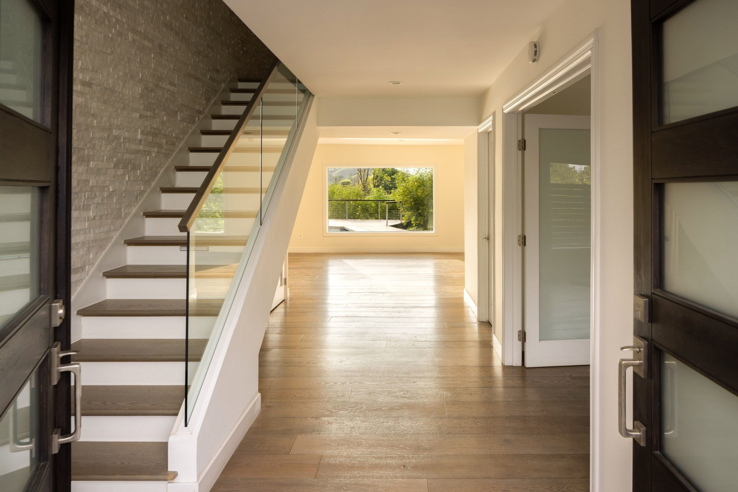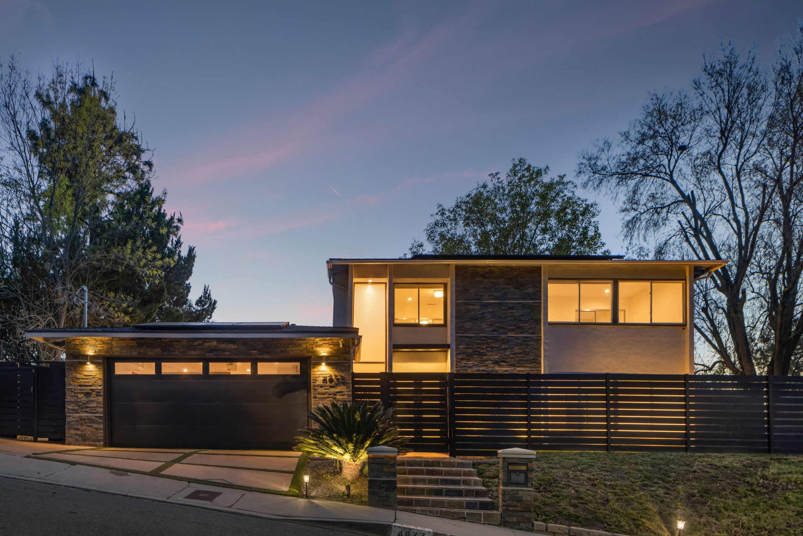 Nestled in the heart of Woodland Hills and located within the award-winning El Camino and Calabasas school districts, this modern two-story home offers 4 bedrooms, 4 bathrooms, and 2,748 square feet of thoughtfully designed living space on a quiet street. A grand double-door entry opens to wood flooring and a main-level en-suite bedroom, ideal for guests or a home office. The bright living and dining areas feature large picture windows overlooking the pool, creating a seamless indoor-outdoor feel. Upstairs, the spacious primary suite offers multiple walk-in closets, a double vanity, and abundant natural light, with two additional bedrooms providing flexibility. The upgraded backyard is an entertainer's retreat with a heated pool and spa, expansive deck space for lounging and dining, a grassy area, and a side yard basketball hoopperfect for enjoying the best of Southern California living. Energy-efficient upgrades include newly installed solar with minimal electricity costs, a newer AC system, and a 2-car garage equipped with a 220V EV charger, along with a full Vivint security system.