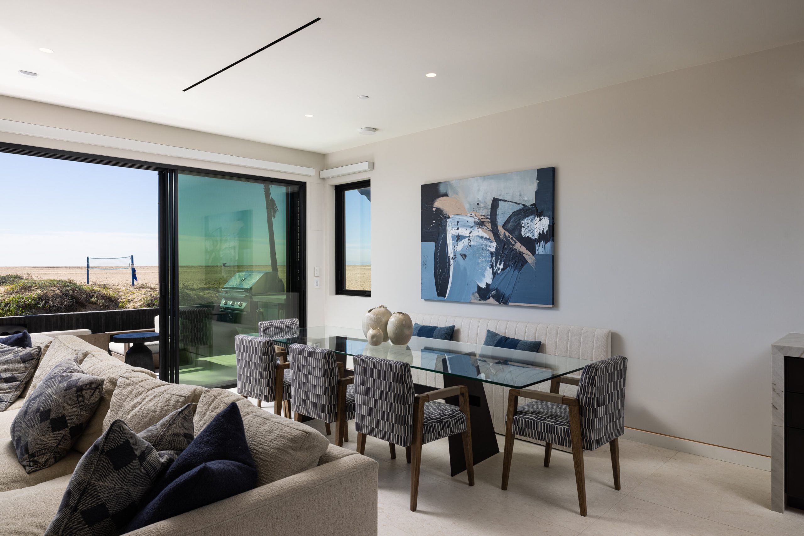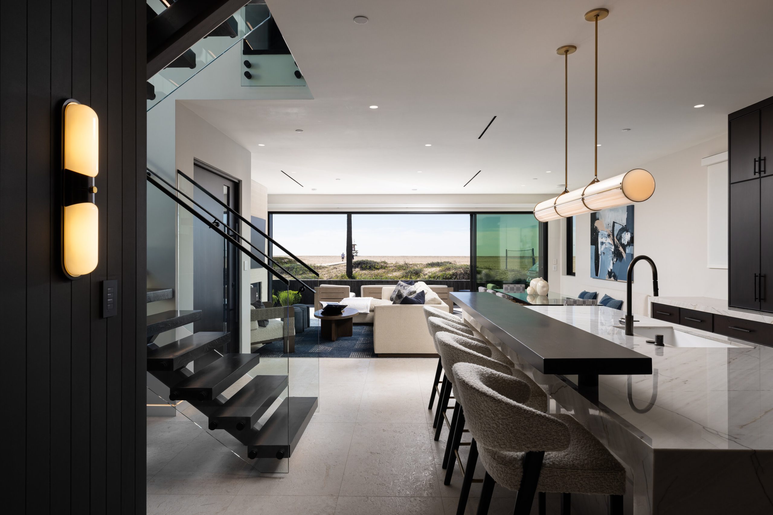 string(1930) "As seen in "Architectural Digest", this newly rebuilt oceanfront residence is located on a rare corner lot directly on the sand on Newport Beach s Balboa Peninsula. Completed in 2024 by Burkhart Brothers Construction, the approximately 2,650 square foot home was designed to capture ocean views from both the main and upper levels. The exterior features a contemporary blend of wood, stone, glass, and standing-seam metal roofing, complemented by professionally designed landscaping and exterior lighting. The interior offers four bedrooms and three and one-half baths with an open and functional layout. The first level opens via a wall of motorized auto-open Awake glass doors to a beachfront patio with built-in BBQ, creating seamless indoor-outdoor living. The main living area includes a great room with fireplace and dining area that flows directly to a kitchen designed for culinary use and gatherings. The kitchen s large two-tier island is designed for food preparation and serving guests, while polished Calacatta quartzite countertops feature pop-up outlets and waterfall edges. Custom cabinetry provides specialized storage for spices and utensils, with Rev-A-Shelf systems and a roll-out pantry enhancing convenience. Together with its butler s pantry, the kitchen hosts a full suite of Wolf, Cove, and Sub-Zero appliances. The second level is accessed via a floating three-tier staircase and includes a loft, secondary bedrooms, and a primary suite with vaulted ceilings, fireplace, private ocean-view deck, walk-in closet, and bath with oversized shower and freestanding tub. Richard Marshall hardwood flooring extends throughout the upper level. Additional features include a garage with vehicle lift for a third car, Savant smart-home automation, and designer lighting, plumbing fixtures, and hardware throughout. Conveniently located near the Balboa Pier, Newport Harbor, dining, shopping, and coastal amenities."