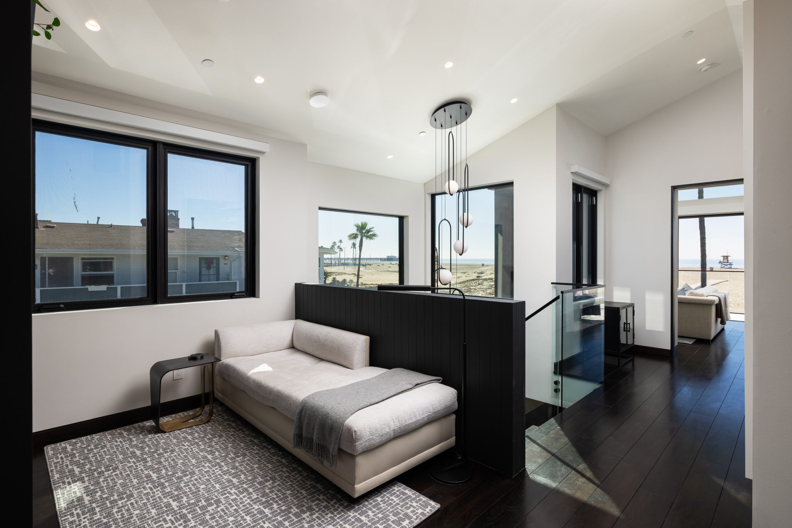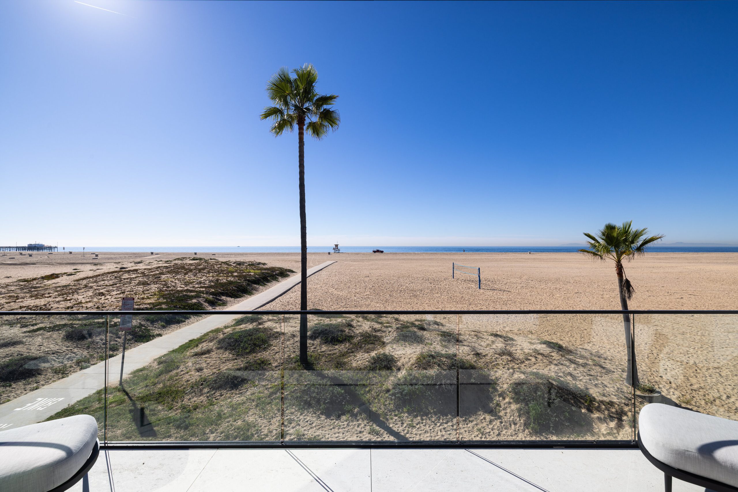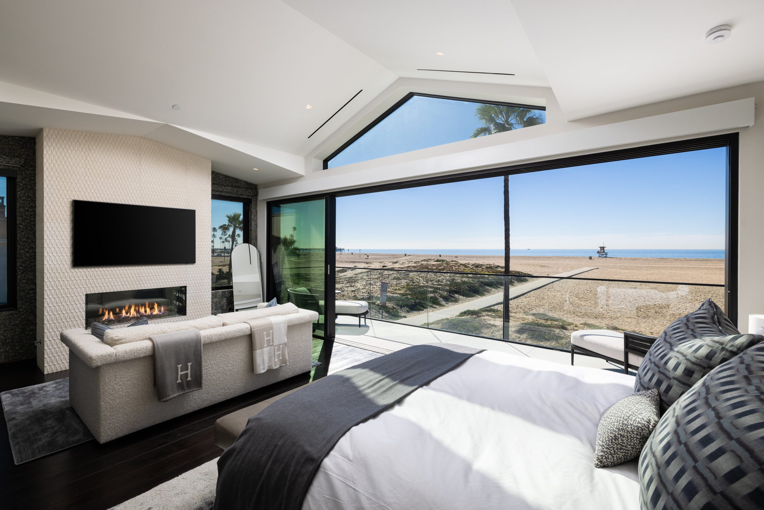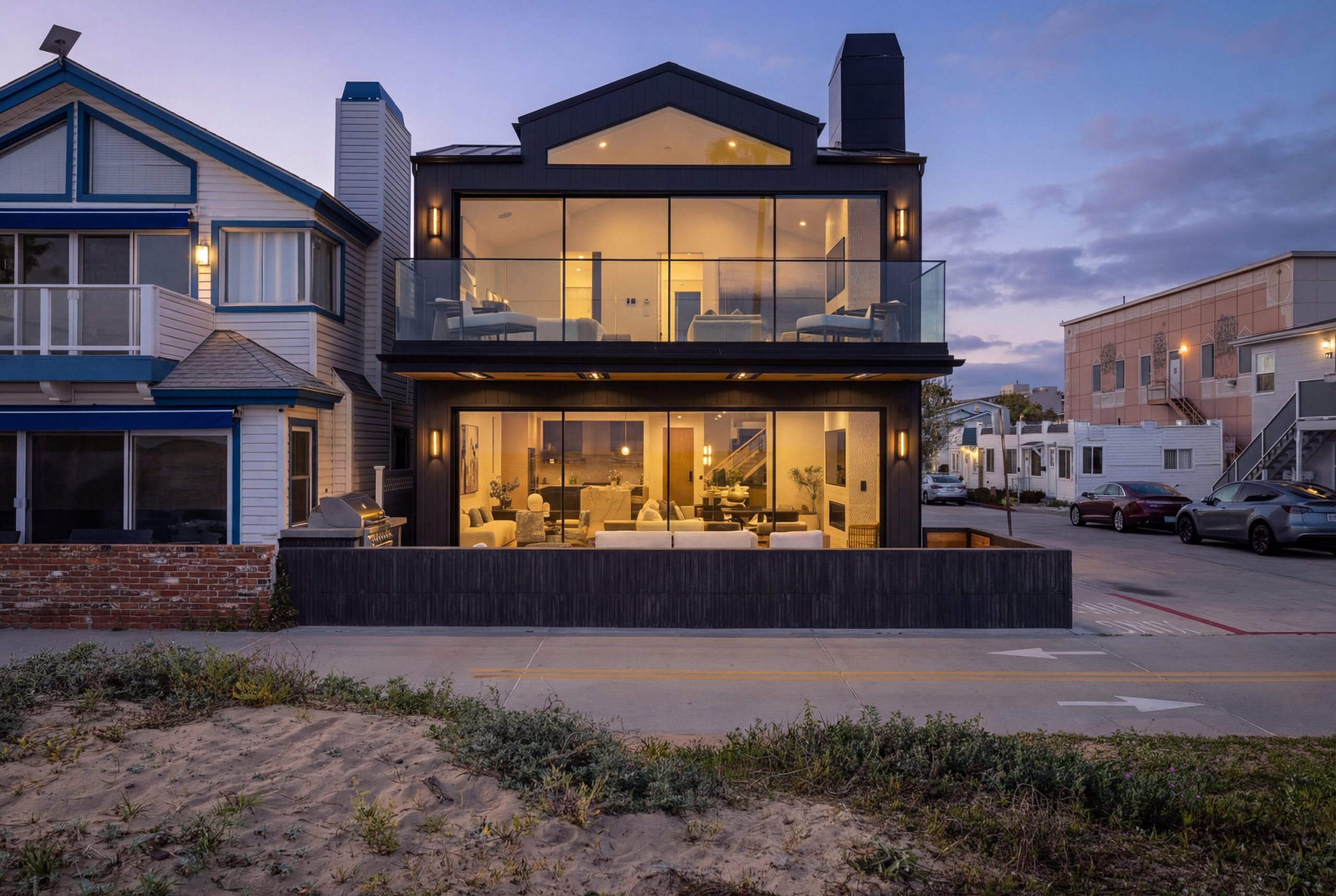 As seen in "Architectural Digest", this newly rebuilt oceanfront residence is located on a rare corner lot directly on the sand on Newport Beach s Balboa Peninsula. Completed in 2024 by Burkhart Brothers Construction, the approximately 2,650 square foot home was designed to capture ocean views from both the main and upper levels. The exterior features a contemporary blend of wood, stone, glass, and standing-seam metal roofing, complemented by professionally designed landscaping and exterior lighting. The interior offers four bedrooms and three and one-half baths with an open and functional layout. The first level opens via a wall of motorized auto-open Awake glass doors to a beachfront patio with built-in BBQ, creating seamless indoor-outdoor living. The main living area includes a great room with fireplace and dining area that flows directly to a kitchen designed for culinary use and gatherings. The kitchen s large two-tier island is designed for food preparation and serving guests, while polished Calacatta quartzite countertops feature pop-up outlets and waterfall edges. Custom cabinetry provides specialized storage for spices and utensils, with Rev-A-Shelf systems and a roll-out pantry enhancing convenience. Together with its butler s pantry, the kitchen hosts a full suite of Wolf, Cove, and Sub-Zero appliances. The second level is accessed via a floating three-tier staircase and includes a loft, secondary bedrooms, and a primary suite with vaulted ceilings, fireplace, private ocean-view deck, walk-in closet, and bath with oversized shower and freestanding tub. Richard Marshall hardwood flooring extends throughout the upper level. Additional features include a garage with vehicle lift for a third car, Savant smart-home automation, and designer lighting, plumbing fixtures, and hardware throughout. Conveniently located near the Balboa Pier, Newport Harbor, dining, shopping, and coastal amenities.