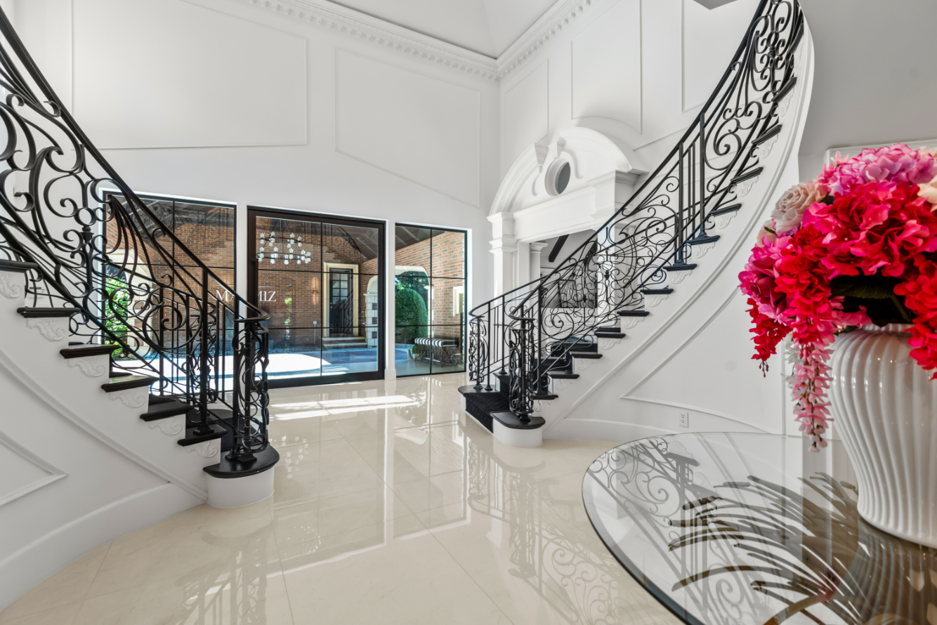 World Class Landmark Estate in guard gated North Ranch Country Club Estates ! Exquisite and completely re-imagined contemporary English Manor with panoramic fairway and mountain views! Designed and built with unparalleled quality, detail, and craftsmanship. Absolutely magnificent! Interior features include a grand two story entry with sweeping dual staircases, state of the art home cinema, billiard/game room, all new walk in wine cellar, and so much more. No detail or expense was spared to artistically craft this one of a kind showplace. The resort quality grounds are remarkable. Custom pool and spa, fireplace, outdoor kitchen, formal gardens and lush manicured lawns. All with total privacy and views! Other important features include privately gated entry, garages for 6 cars, a detached office with guest house above with separate entrance. There is also another detached guest/pool house with adjacent catering kitchen. One of Southern California's most epic custom masterpieces!
