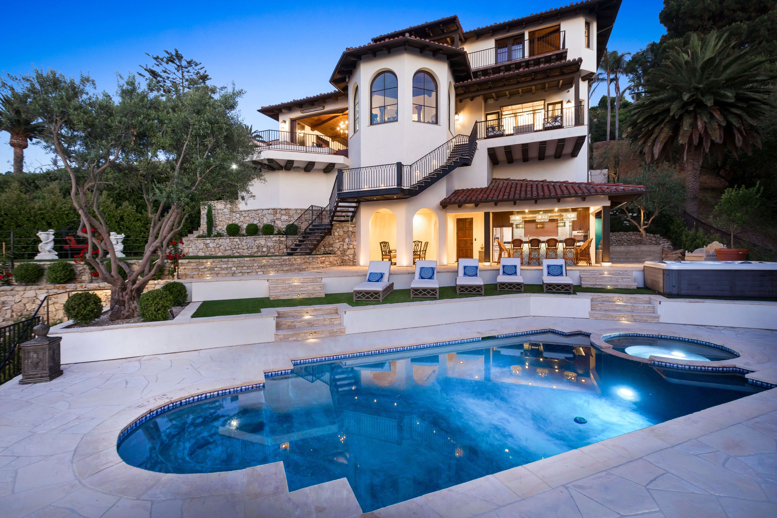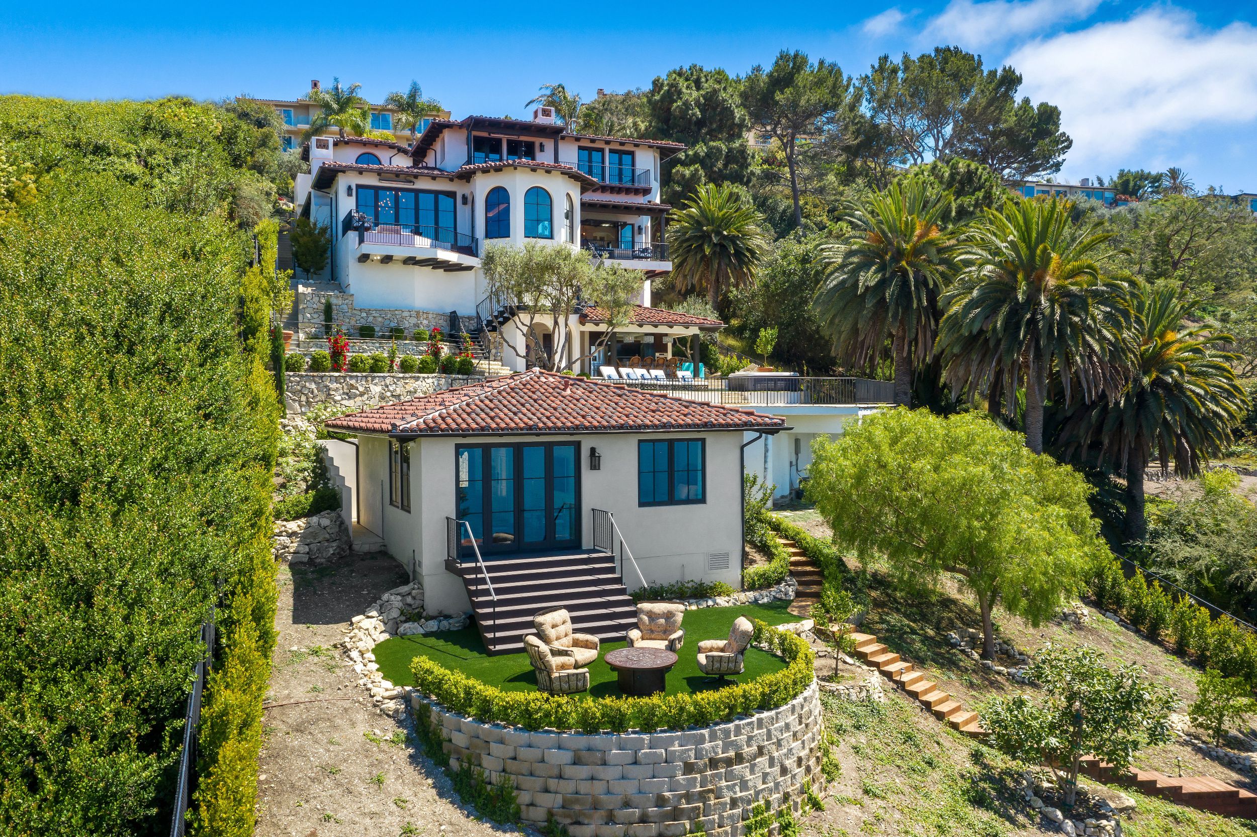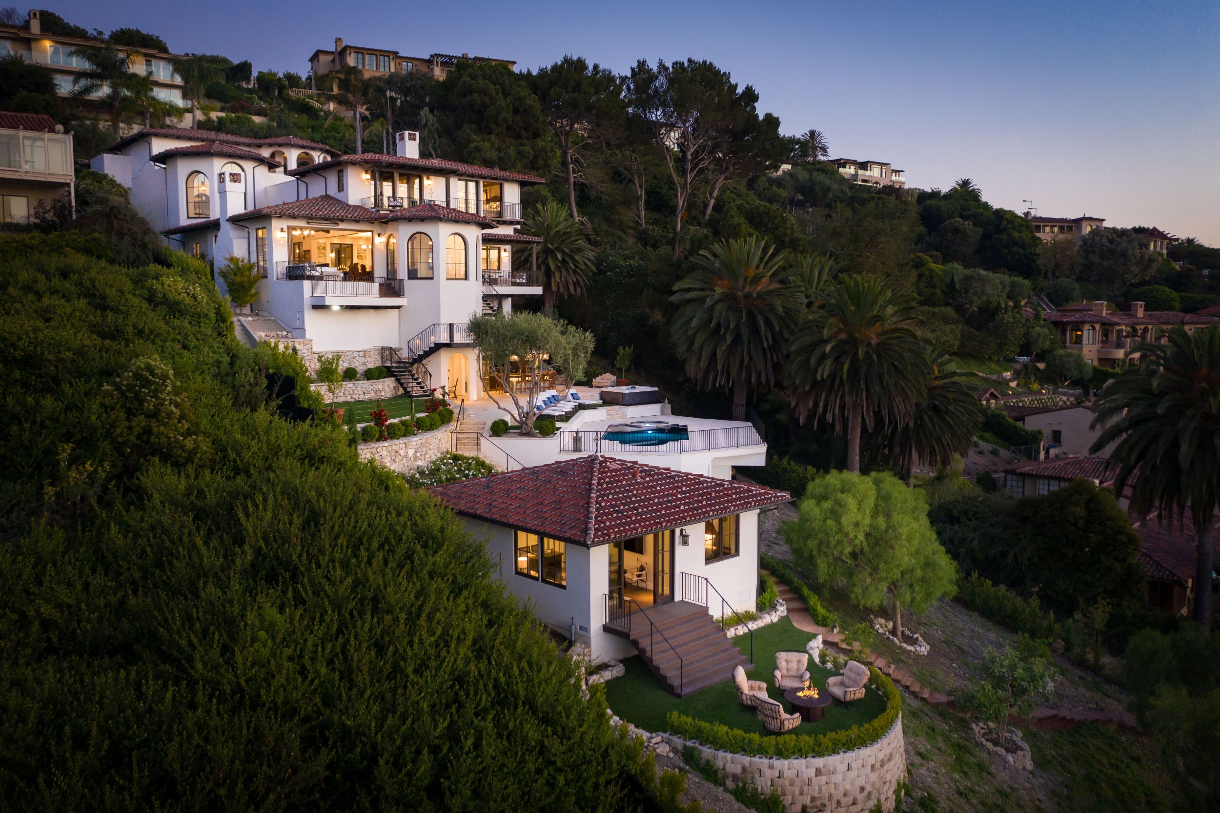Turnkey quintessential Mediterranean Villa offering explosive ocean views, unparalleled luxury & exquisite finishes. Custom built w/ immaculate design, the main home entails 2 elevators, 5 bdrms w/ ensuite bthrms & walk-in closets, addt'l 2 bthrms, great room, dining room, bar, theatre, office, & study. The luminous kitchen w/ top of the line appliances, bespoke cabinetry & ocean views graciously flows into the dining area & continues on to the great room. The exceptional outdoor living space w/unrivaled views has every amenity one could desire. Several patios, fully equipped outdoor kitchen & dining area w/ heating, TV, laundry room, pool, spa & outdoor shower. Beautiful guest house w/ kitchen, 1 bdrm, 1 bthrm & doors of glass. Secured & operated by Savant & Vantage systems personalized to your lifestyle providing unparalleled convenience of controlling lighting, shades, climate, security, pool, spa & entertainment. Generator, LED lighting, filtered water throughout the entire home.