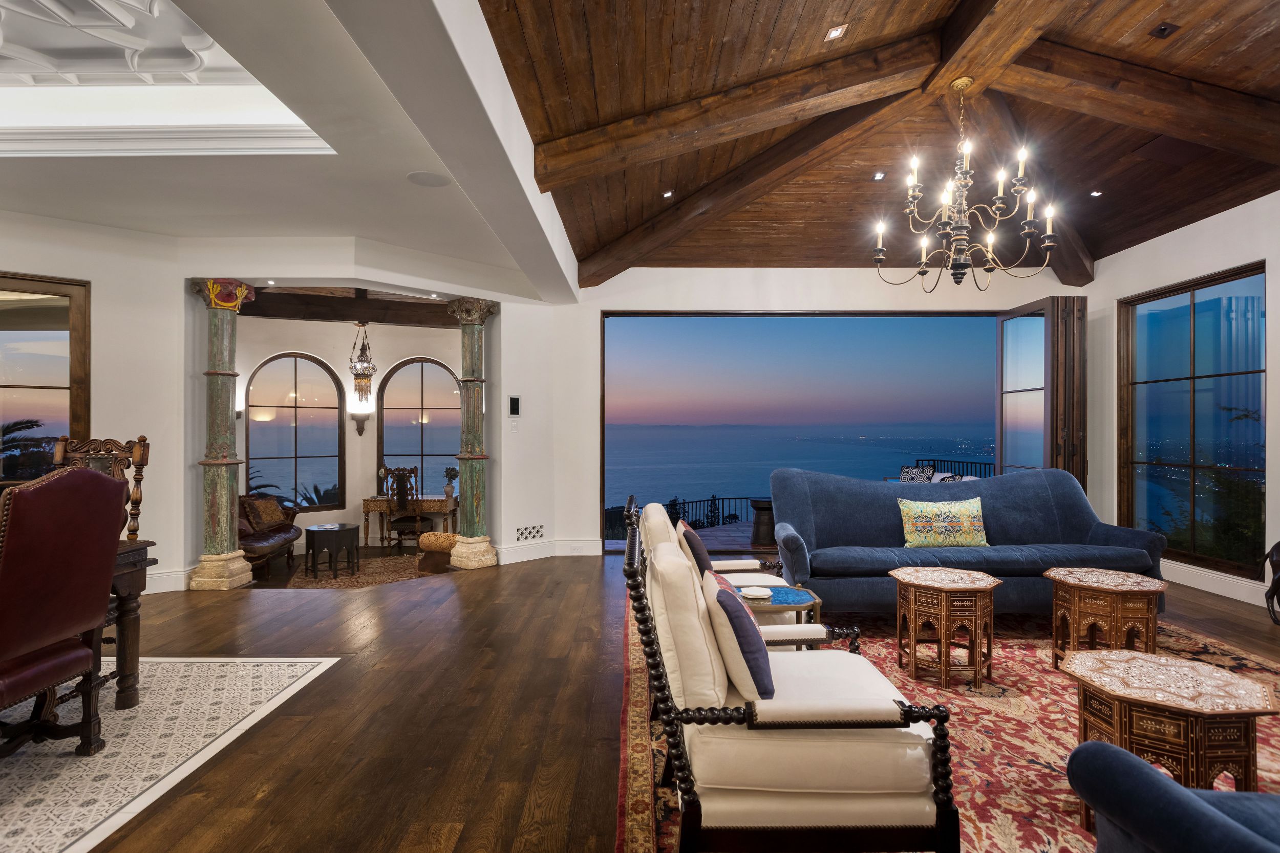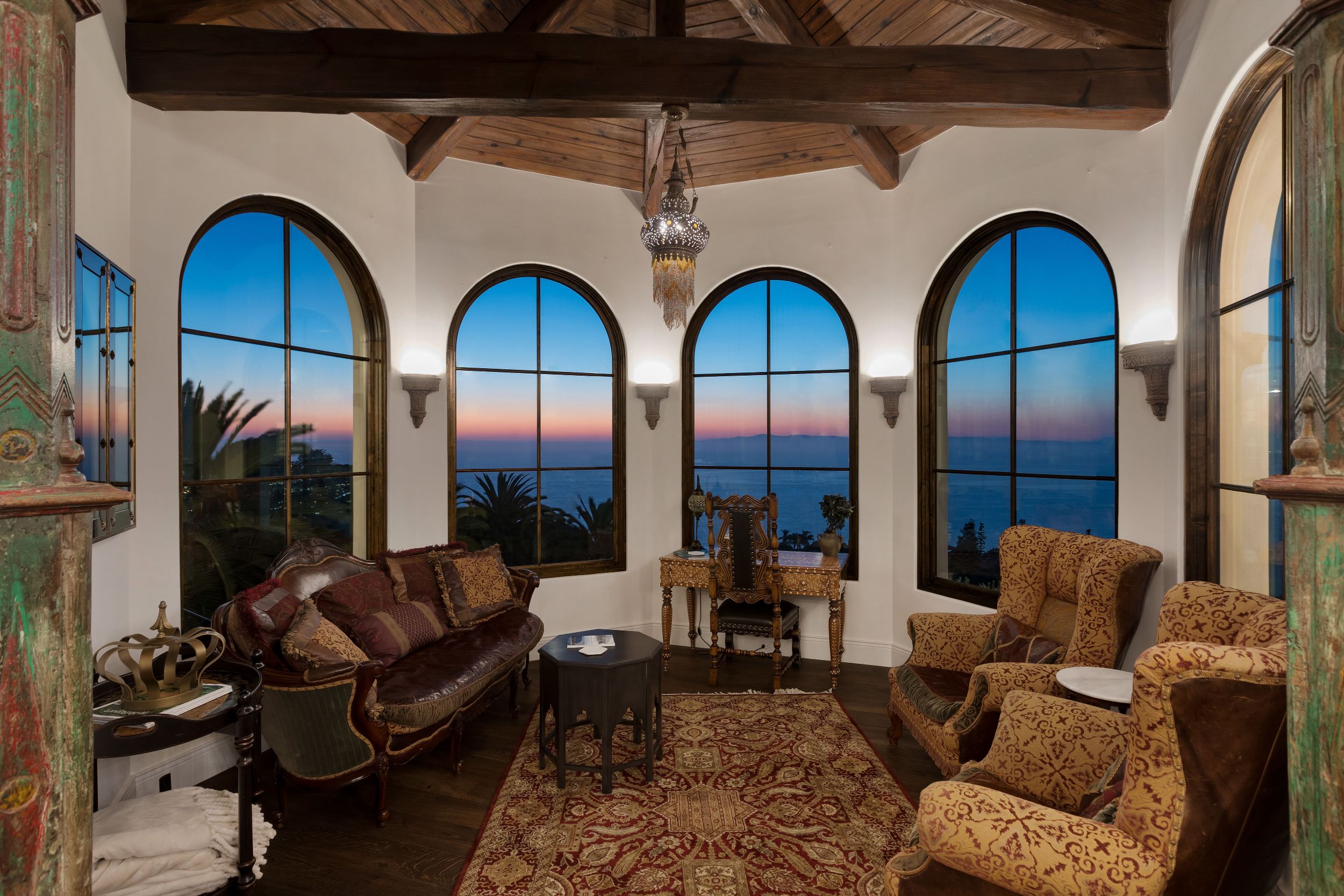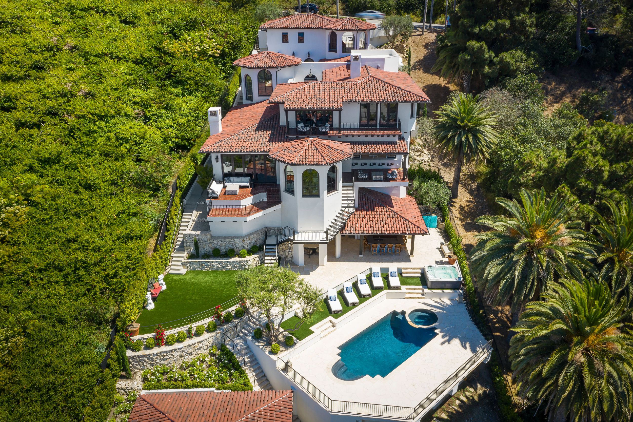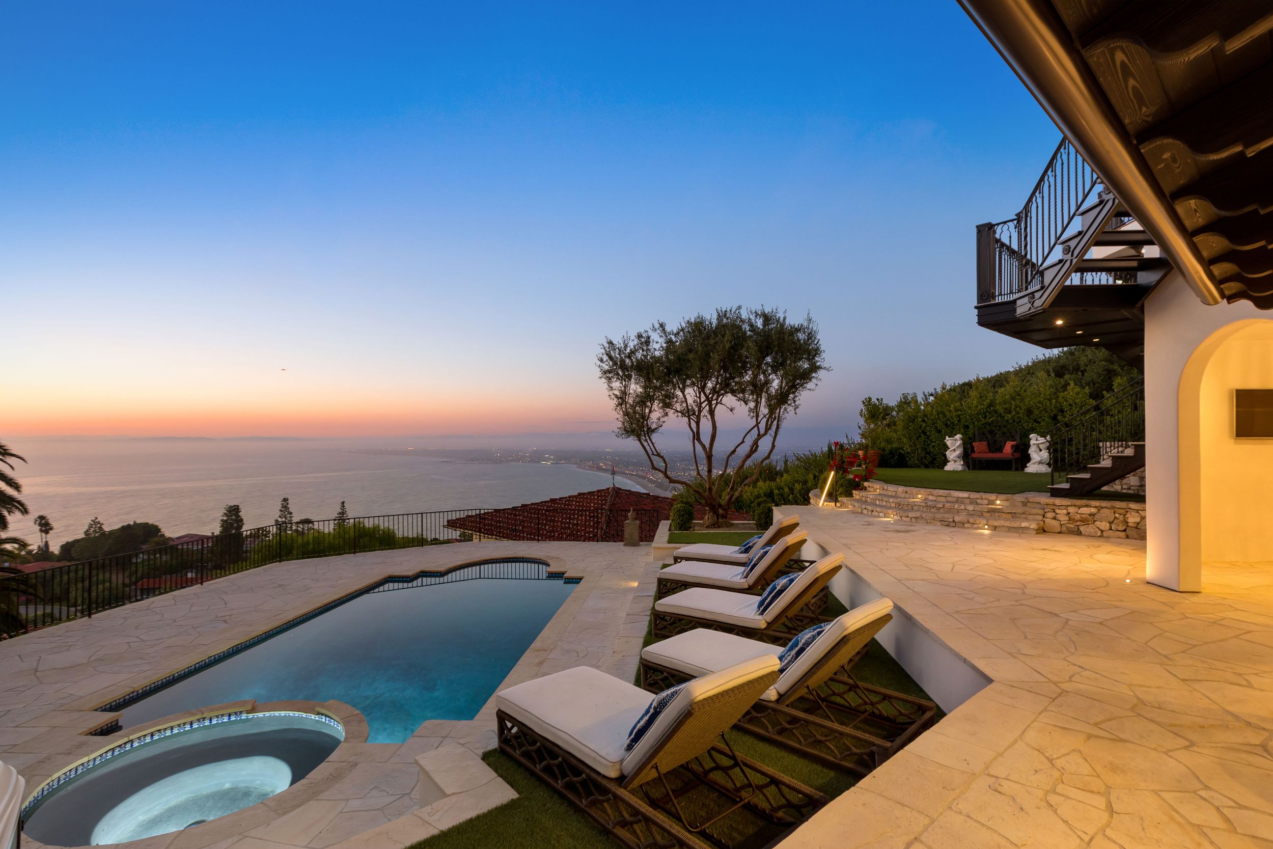 Turnkey quintessential Mediterranean Villa offering explosive ocean views, unparalleled luxury & exquisite finishes. Custom built w/ immaculate design, the main home entails 2 elevators, 5 bdrms w/ ensuite bthrms & walk-in closets, addt'l 2 bthrms, great room, dining room, bar, theatre, office, & study. The luminous kitchen w/ top of the line appliances, bespoke cabinetry & ocean views graciously flows into the dining area & continues on to the great room. The exceptional outdoor living space w/unrivaled views has every amenity one could desire. Several patios, fully equipped outdoor kitchen & dining area w/ heating, TV, laundry room, pool, spa & outdoor shower. Beautiful guest house w/ kitchen, 1 bdrm, 1 bthrm & doors of glass. Secured & operated by Savant & Vantage systems personalized to your lifestyle providing unparalleled convenience of controlling lighting, shades, climate, security, pool, spa & entertainment. Generator, LED lighting, filtered water throughout the entire home.