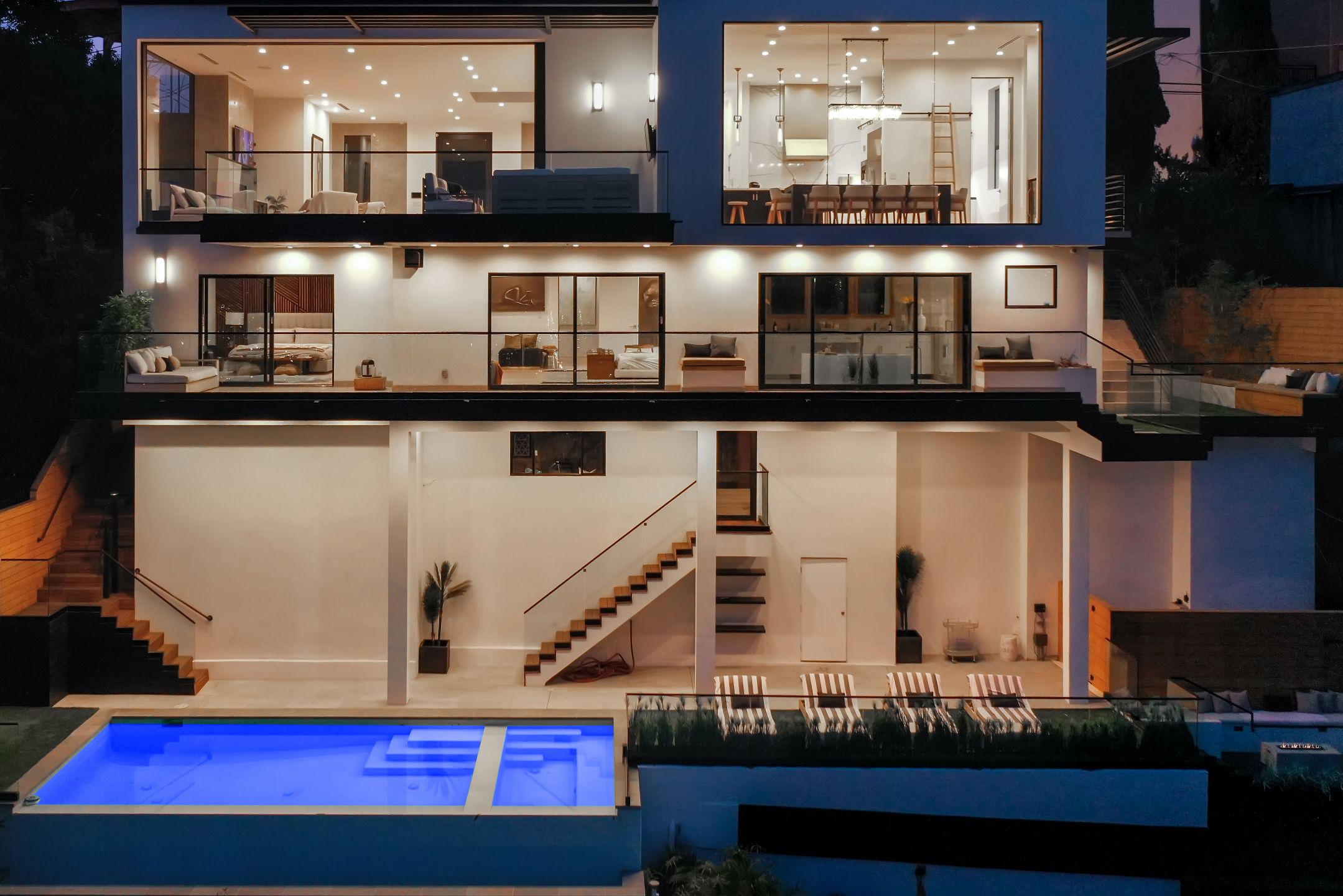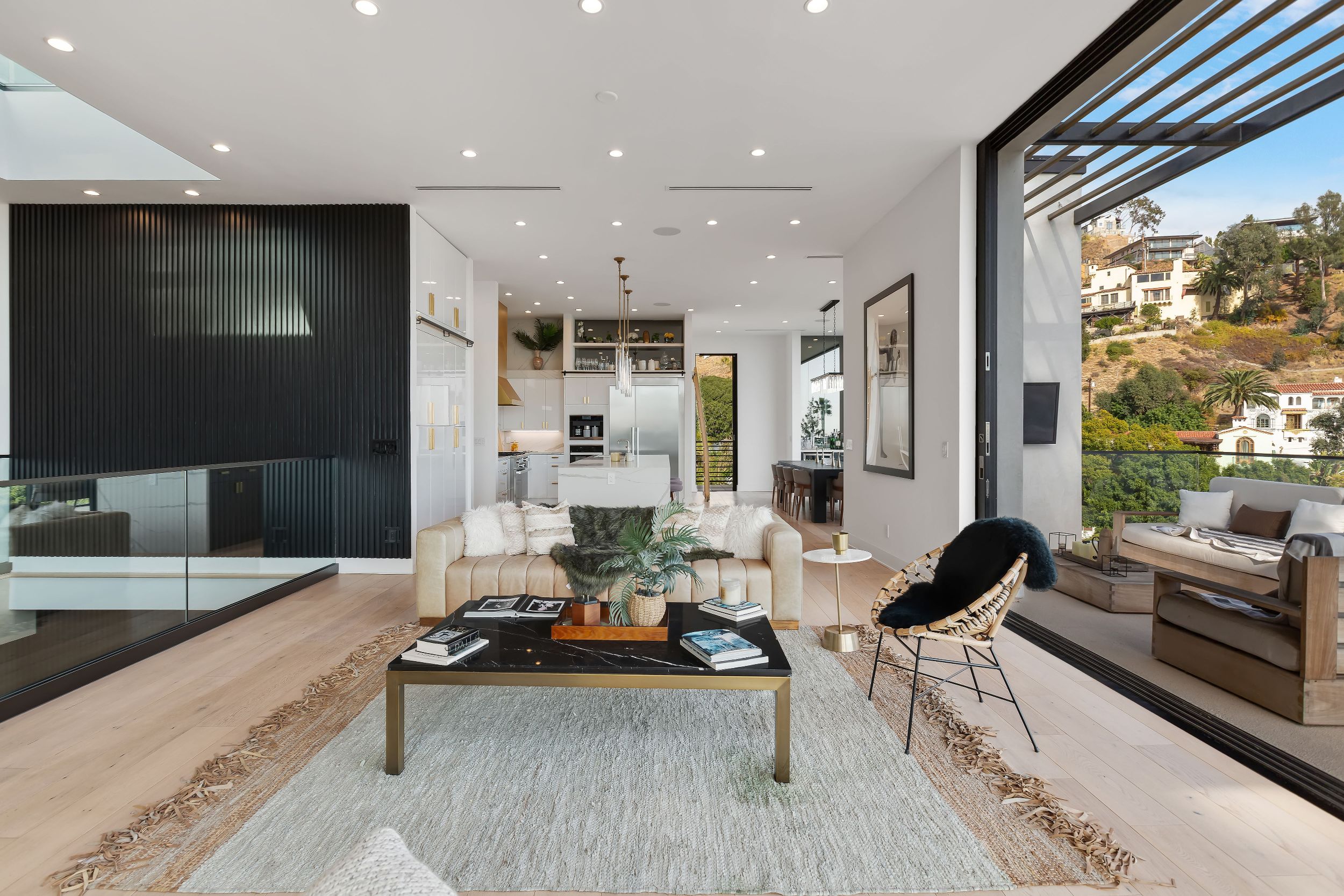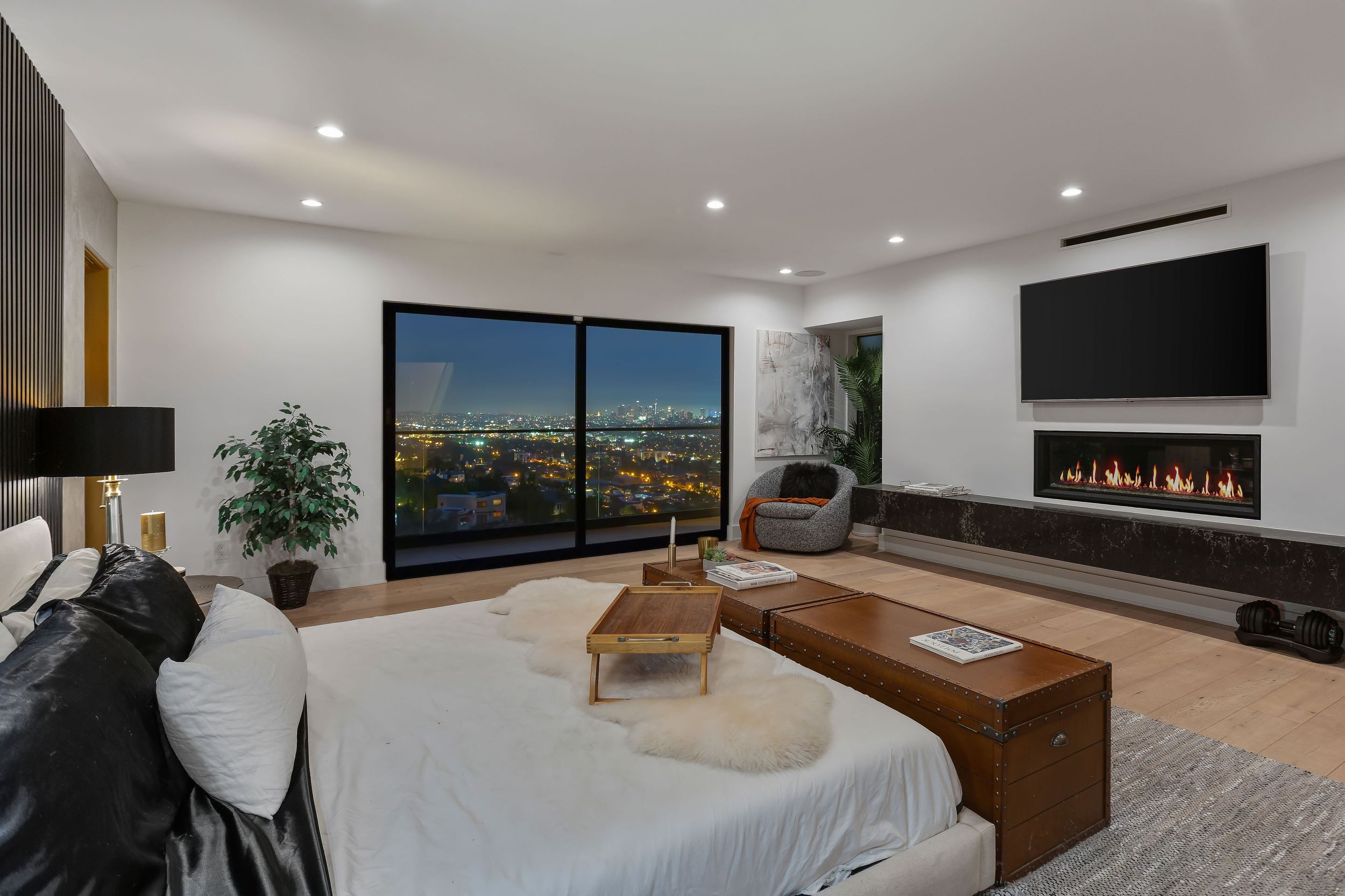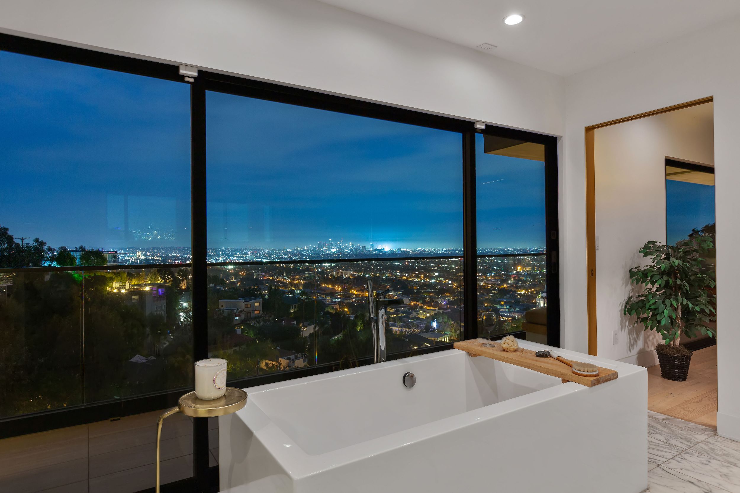 Set in the Hollywood Hills showcasing unmatched explosive jetliner views, 8428 Carlton Way is the pinnacle of luxury living. Featuring first class amenities and walls of glass that vanish throughout, the compound boasts 4 bedrooms, 6 bathrooms, a theater room, bonus room, temperature-controlled wine cellar and bar. The chefs kitchen outfitted with Calacatta Marble and top of the line appliances flows directly into the dining area set just before a wall of glass framing the Los Angeles skyline. The large master retreat with breathtaking views from every vantage point is comprised of a private balcony, fireplace, walk in closet and spa like bathroom. Hosting a dramatic infinity edge pool, spa, fire pit and lounge space, the lower level serves as both an entertainers paradise and a private oasis. Offering opulence, security and convenience, this home is a true trophy.