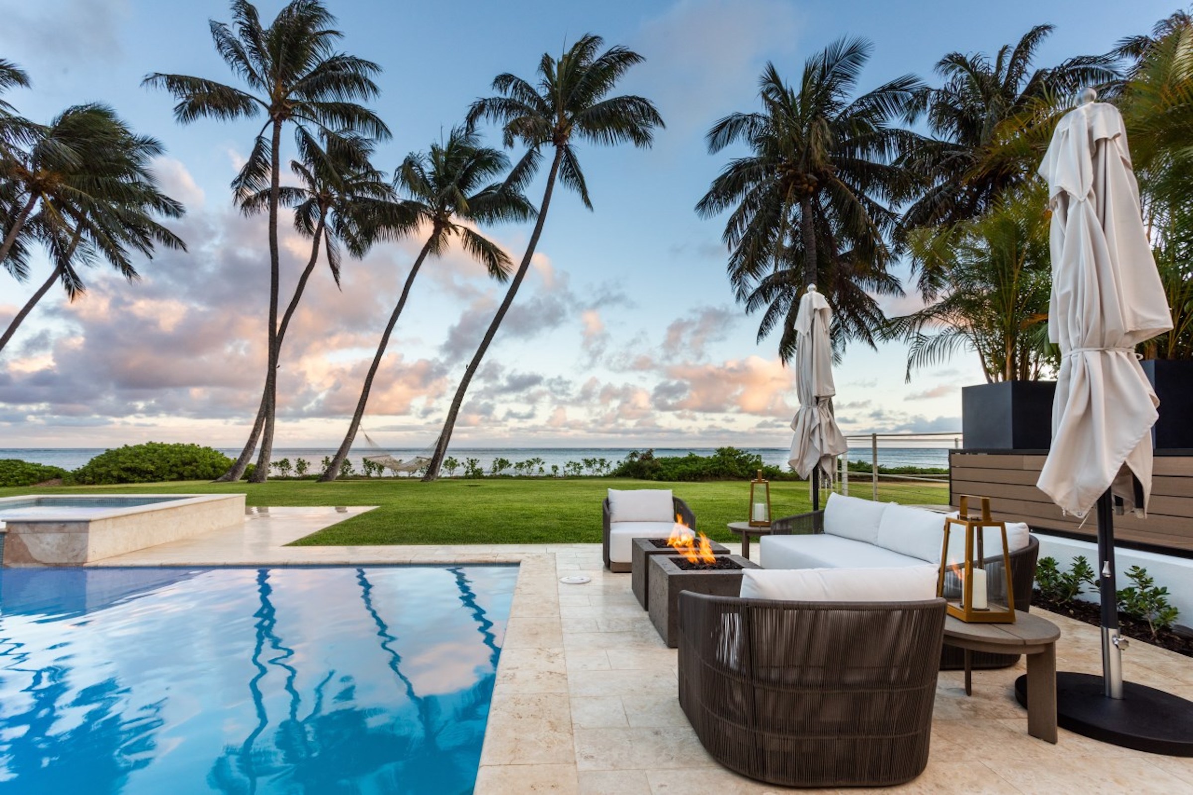 Modern Living By The Sea…Niu Beachfront Contemporary Plantation HM is perfectly situated on a rare beachfront setting, along a coveted sandy shoreline. Completely remodeled in 2020, this modern-day HM offers luxury living w/ the latest state of the art amenities. A striking kitchen w/proff appliances & gorgeous marble island highlights the space. Adjacent dining & multiple living areas overlook outdoor lanais, seaside pool w spa + BBQ kitchen overlooking 80’ of Pacific Ocean vistas by day & mesmerizing sunsets by night. Enjoy a dream Master Suite, HM office, wellness room w/gym/yoga studio + media rm. Energy efficient w/solar panels & Tesla Powerwalls. For those looking for a magical shoreline & the perfect setting to enjoy every imaginable watersport from your back yard, welcome HM!