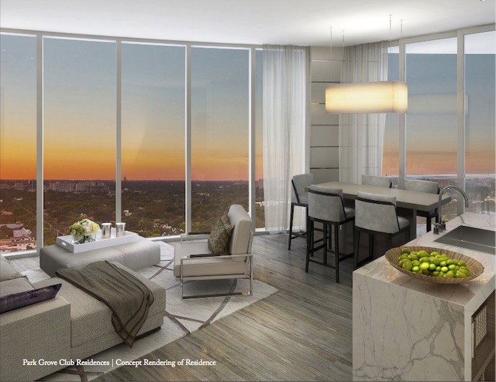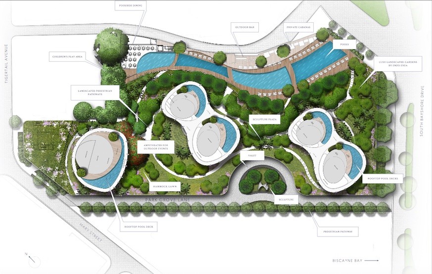 One Park Grove Residences is an exclusive Bayfront property designed by OMA•Rem Koolhaas, where residents enjoy luxury living with a relaxed sensibility. Ideally positioned on Biscayne Bay in Coconut Grove, the development will provide residents with first class amenities in a serene design-conscious environment. Featuring over 50,000 square feet of carefully conceived amenity spaces—from the practical to the luxurious—and world-class services to match, One Park Grove brings high-style living to an entirely new level. Amenities: Signature restaurant, bar and catering by Chef Michael Schwartz Resident concierge app 28-seat private screening room Wine tasting rooms with private wine storage Private dining & event space Full-service bar Poolside cabanas, towel service and dining Outdoor bar 500 ft. of Bayfront pools and pool decks with jacuzzis Park Grove lounge & bistro Indoor and outdoor children's play areas Business centers and meeting rooms Whole body fitness centers Mind body wellness lounge Indoor yoga studio and outdoor yoga area Womens' and Mens' locker room Signature spa with treatment rooms Couples treatment room Bio-sauna with aroma infusion and herbal steam Library Personal training room / yoga & pilates studio World class art collection Five acres of private gardens by Enzo Enea 24-hour concierge / security Butler service Espresso bars