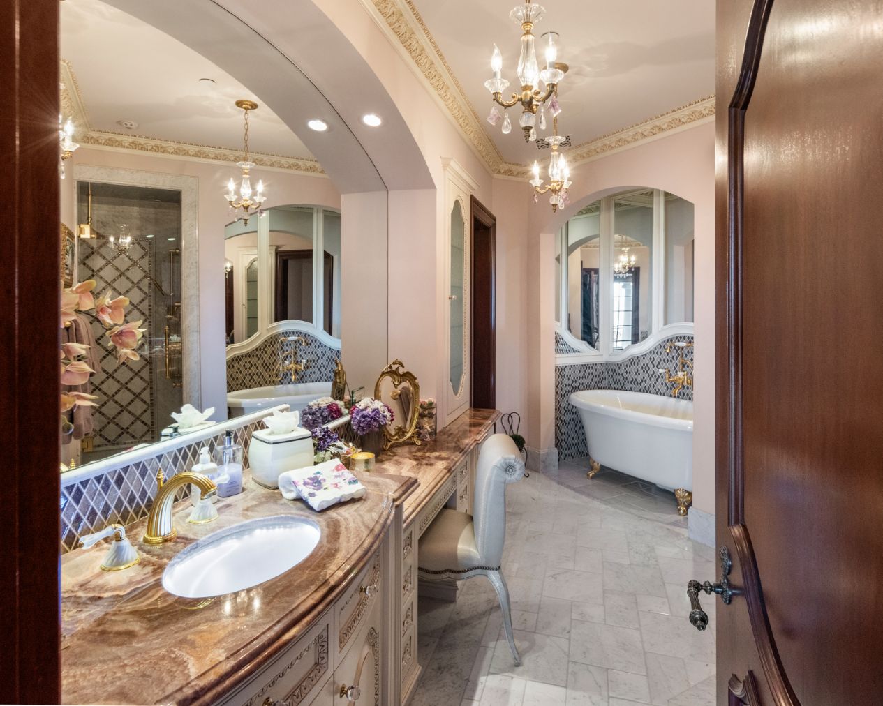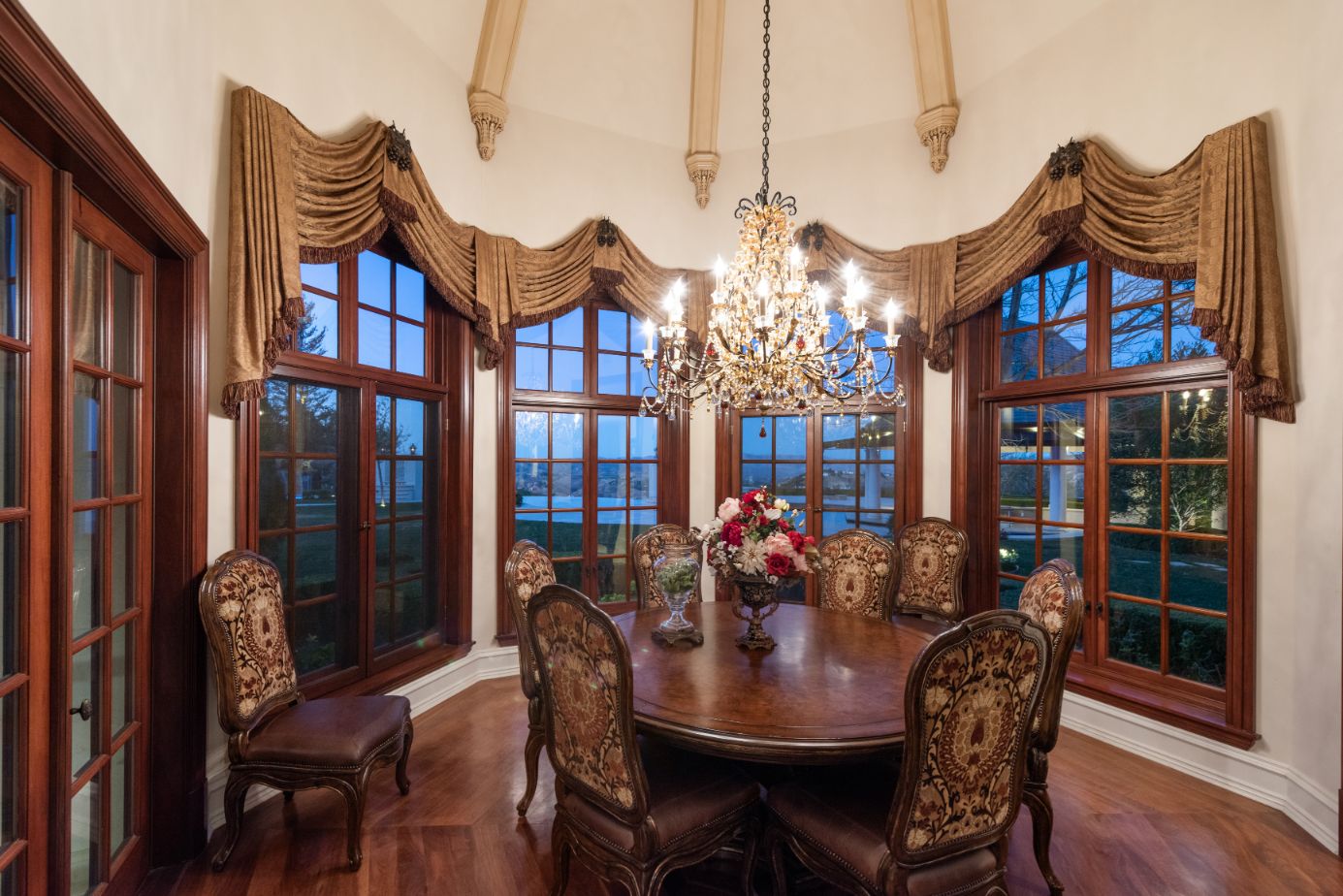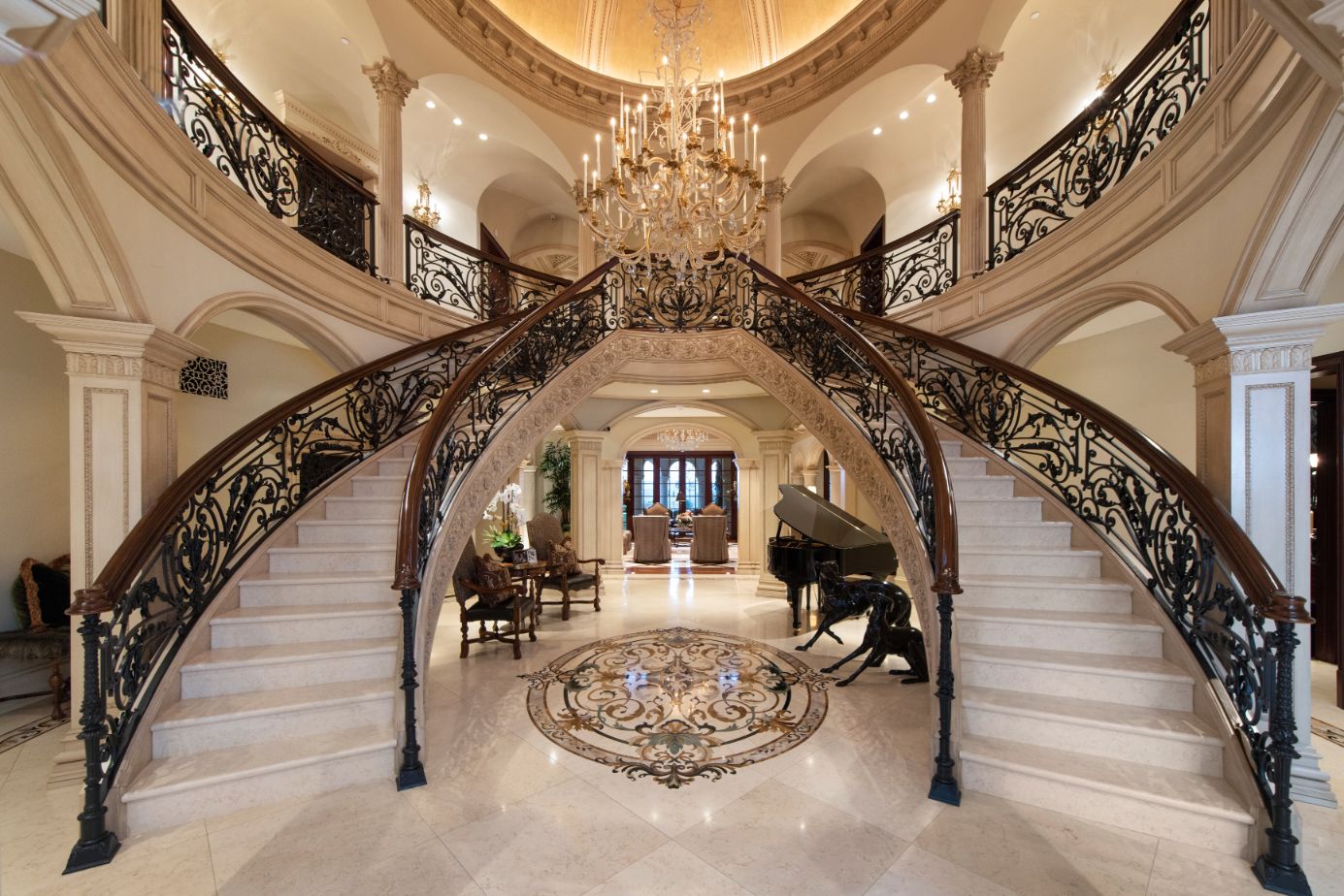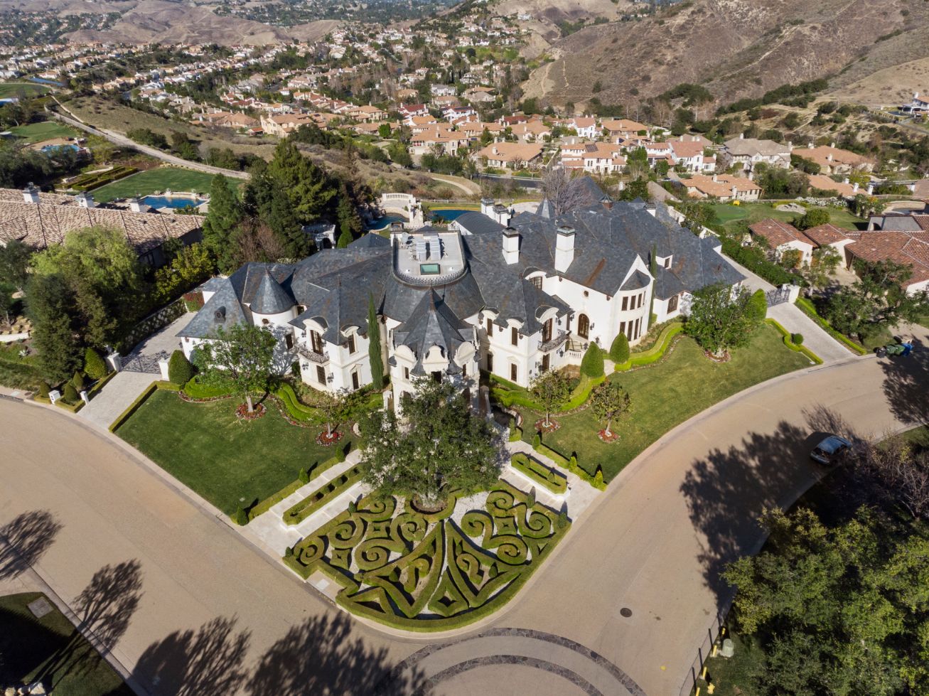 string(1556) "Introducing a world-class French Chateau showcasing the epitome of luxury living boasting ~17,000 square feet of architectural flourishes. Enter through the massive front doors into the dramatic 2-story foyer with a dome ceiling, breathtaking chandelier, stone floors, and a floating double staircase. Offering an unmatched living experience, the Chateau features 7 bedrooms, 10 bathrooms, several beautiful living rooms, formal and informal dining rooms a temperature-controlled wine room, theatre, wet bar, library, office, gym, game room, massage room, loft, and an elevator. A Groin Vault Ceiling and stone floors encapsulate the chef's kitchen outfitted with top-of-the-line stainless steel appliances and a large stone island. Distinguished features include exquisite hand-built French Chandeliers, soaring ceilings, hand-carved fireplaces, custom woodwork, limestone floors, solid mahogany doors and surround sound. The Master Suite is complete with a fireplace, sitting room, two massive walk-in closets, a steam shower, sauna, and two balconies showcasing views of the immaculate grounds and beyond. Breathtaking gardens with fruit trees and rose bushes surround the guest house, massive 110' Pebble Tec infinity-edge pool and spa with several water features, two bridges, fountain, patio areas with space heaters, fire pit, wood-burning fireplace, and a BBQ pavilion. Fully secured and operated by Crestron and Lutron Smart Systems, the home elevates the art of living and entertaining. Set behind gates, the property has garage space for 6 cars."