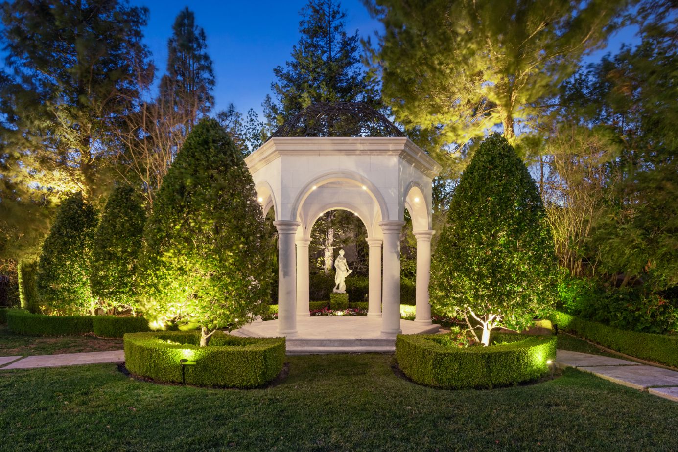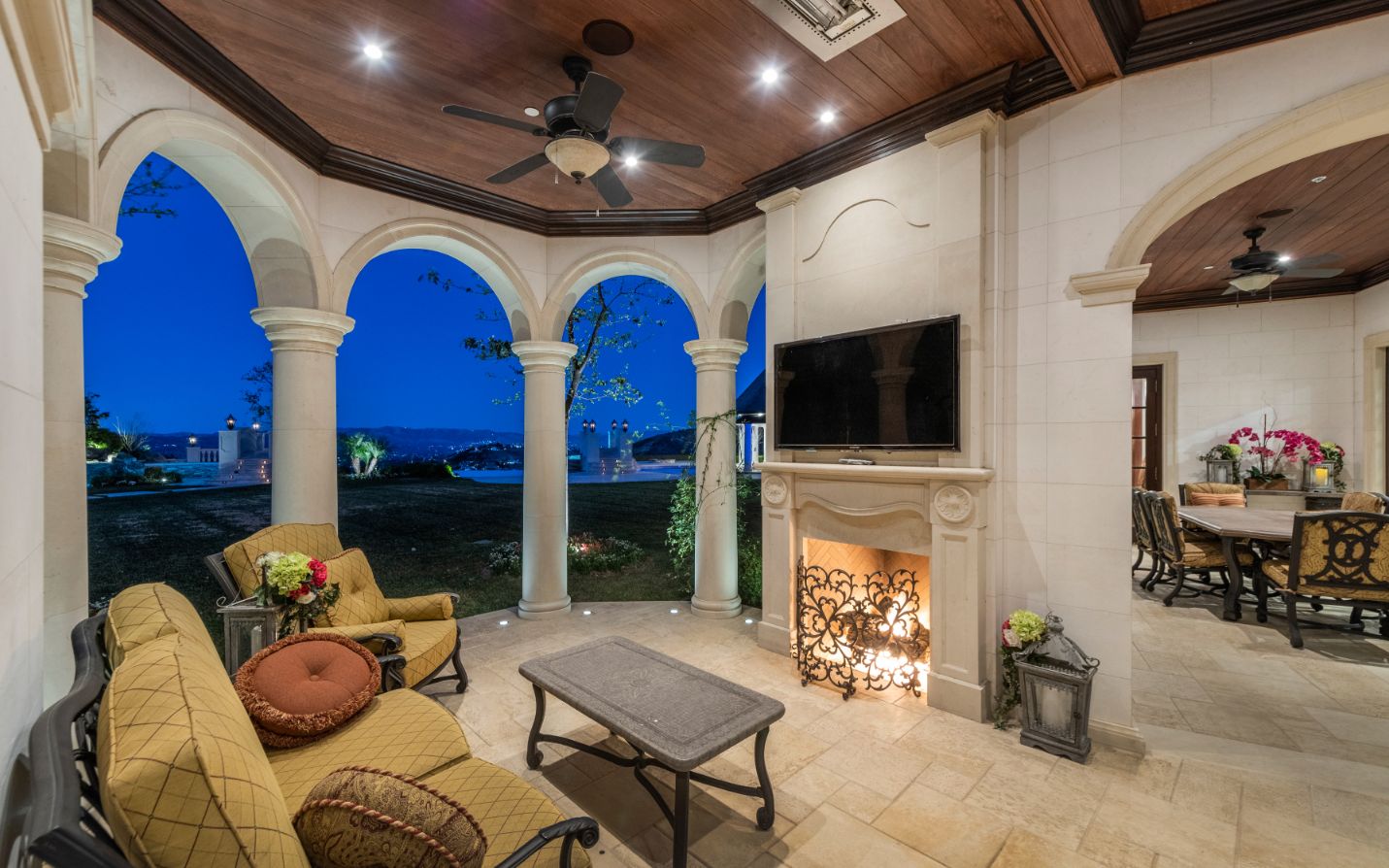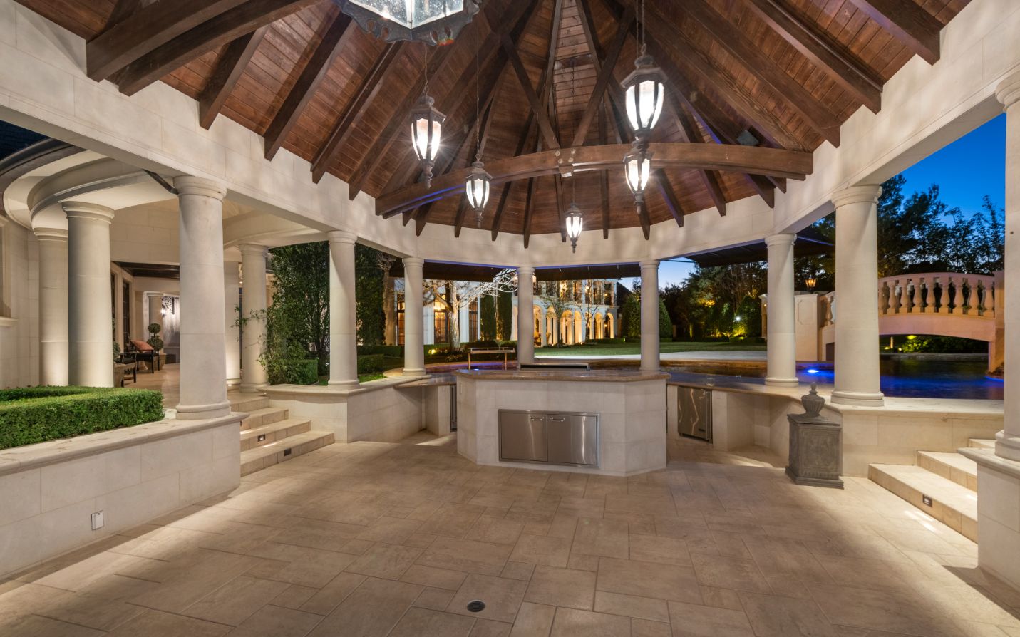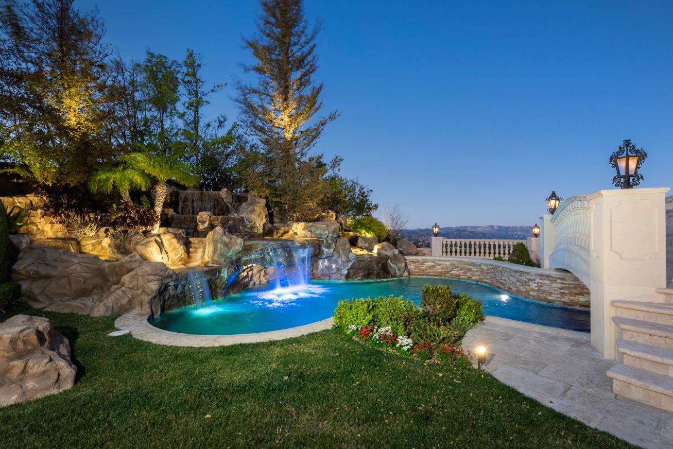 Introducing a world-class French Chateau showcasing the epitome of luxury living boasting ~17,000 square feet of architectural flourishes. Enter through the massive front doors into the dramatic 2-story foyer with a dome ceiling, breathtaking chandelier, stone floors, and a floating double staircase. Offering an unmatched living experience, the Chateau features 7 bedrooms, 10 bathrooms, several beautiful living rooms, formal and informal dining rooms a temperature-controlled wine room, theatre, wet bar, library, office, gym, game room, massage room, loft, and an elevator. A Groin Vault Ceiling and stone floors encapsulate the chef's kitchen outfitted with top-of-the-line stainless steel appliances and a large stone island. Distinguished features include exquisite hand-built French Chandeliers, soaring ceilings, hand-carved fireplaces, custom woodwork, limestone floors, solid mahogany doors and surround sound. The Master Suite is complete with a fireplace, sitting room, two massive walk-in closets, a steam shower, sauna, and two balconies showcasing views of the immaculate grounds and beyond. Breathtaking gardens with fruit trees and rose bushes surround the guest house, massive 110' Pebble Tec infinity-edge pool and spa with several water features, two bridges, fountain, patio areas with space heaters, fire pit, wood-burning fireplace, and a BBQ pavilion. Fully secured and operated by Crestron and Lutron Smart Systems, the home elevates the art of living and entertaining. Set behind gates, the property has garage space for 6 cars.