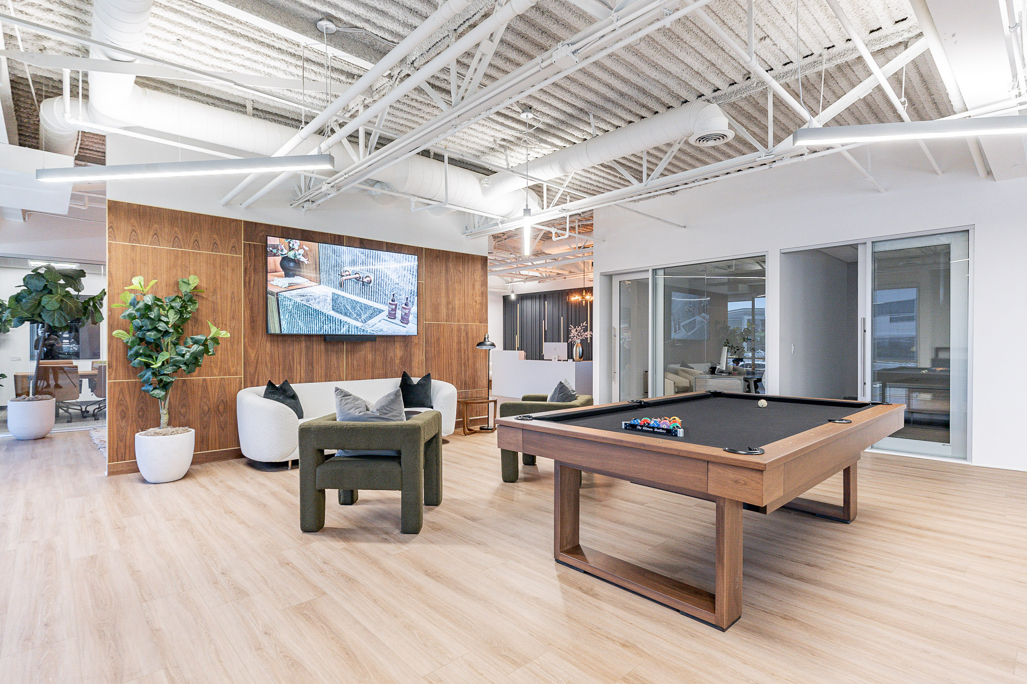 The design intent was to reimagine retro-modern design and stitch two luxury brands into ONE. Douglas Elliman and The Altman Brothers a co-branding collaboration. Commercial high-end installation in a luxury flagship retail application.